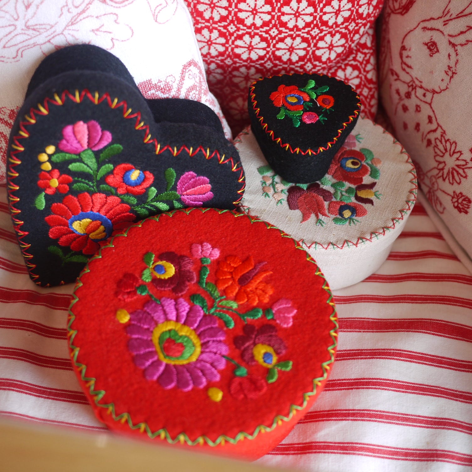 赤い木製ボウル 花ペイント ドイツ