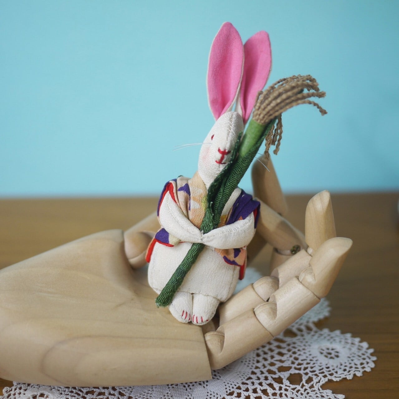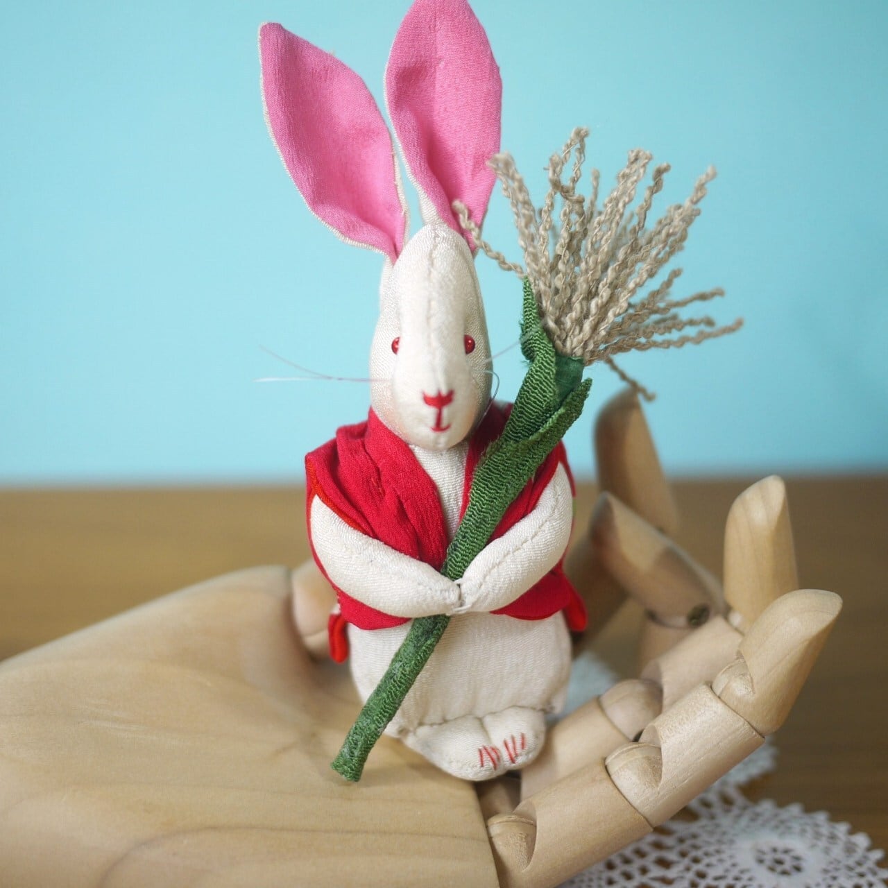 丁寧に手作りされたかわいい白いうさぎ。