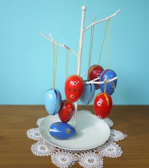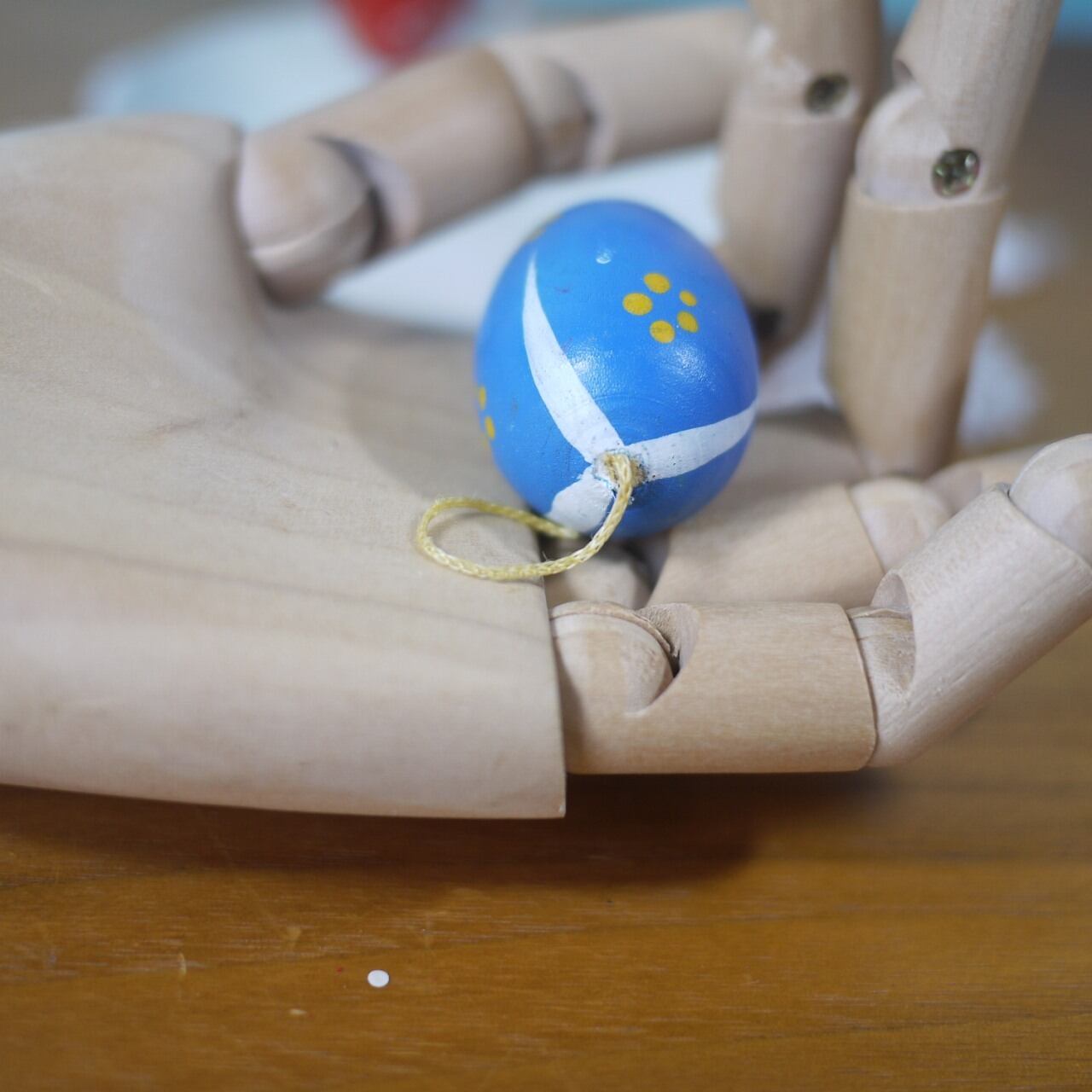 赤い卵1つの吊り紐が切れ、つないでいます。