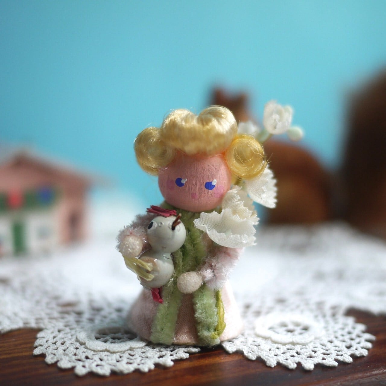 [イースター木製人形 ひよこと女の子 オーストリア]