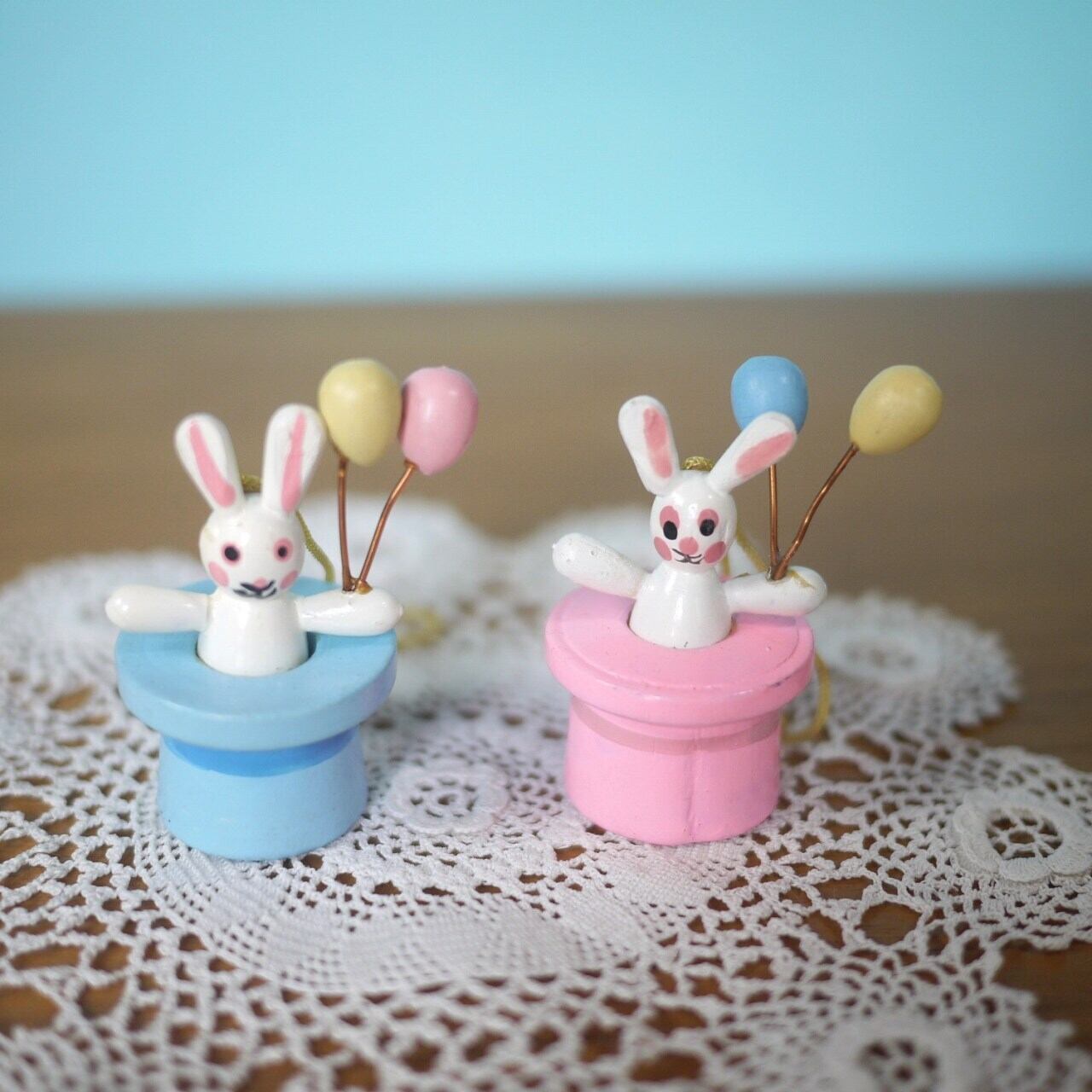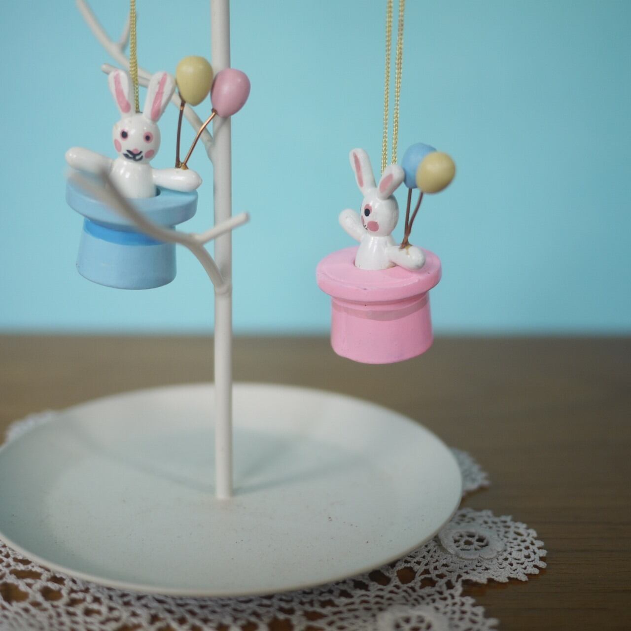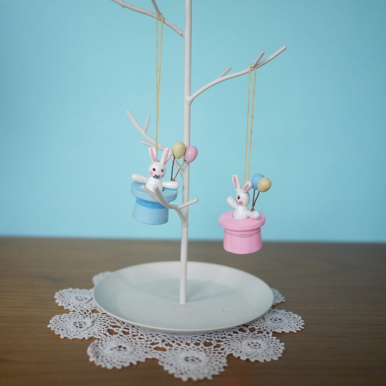 木製イースターオーナメント2P うさぎmitBallon エルツ ドイツ