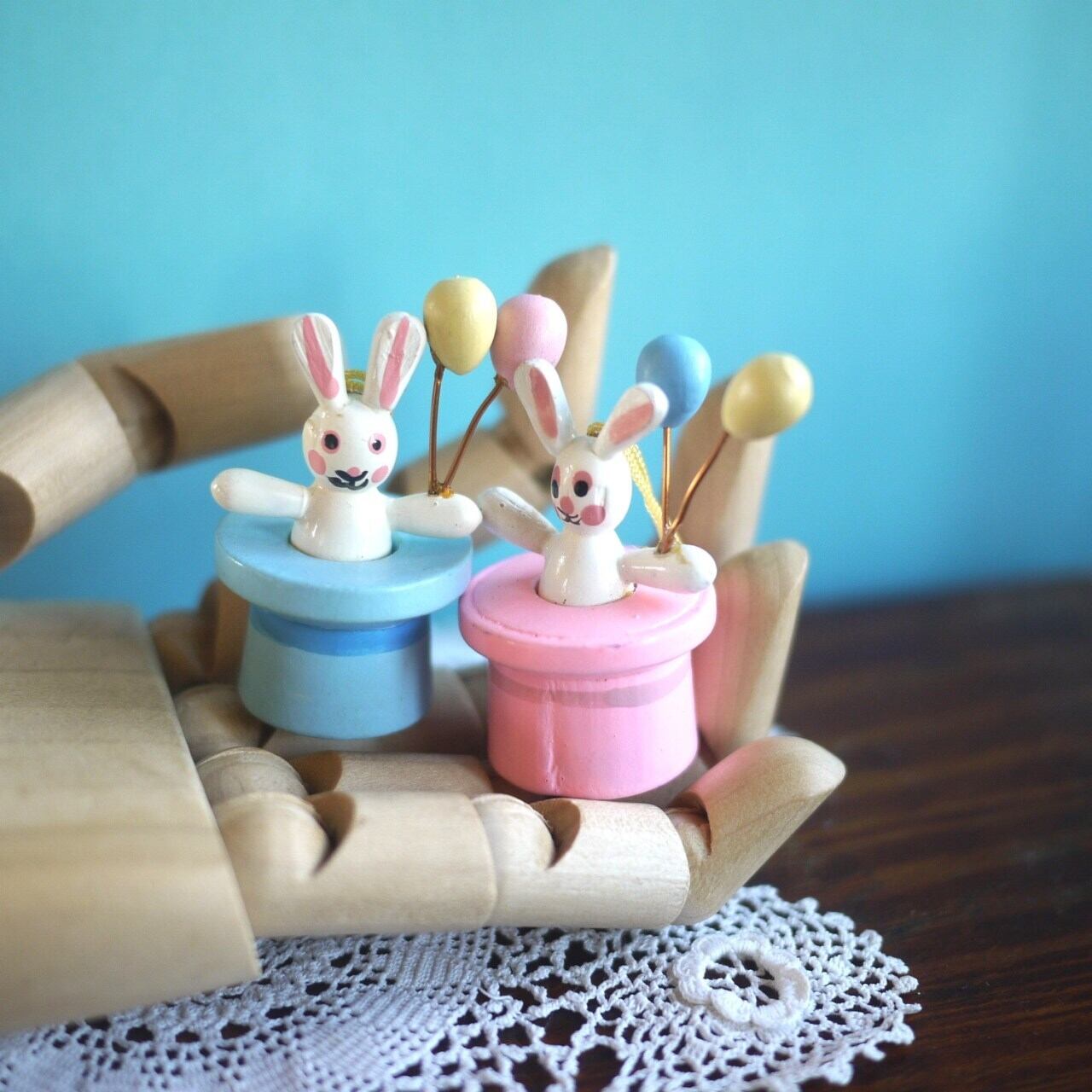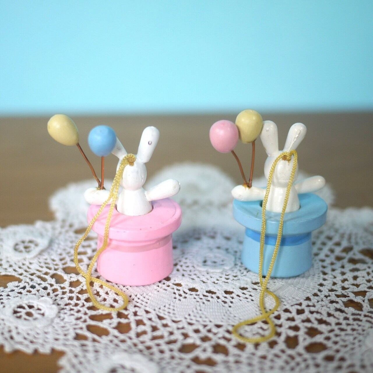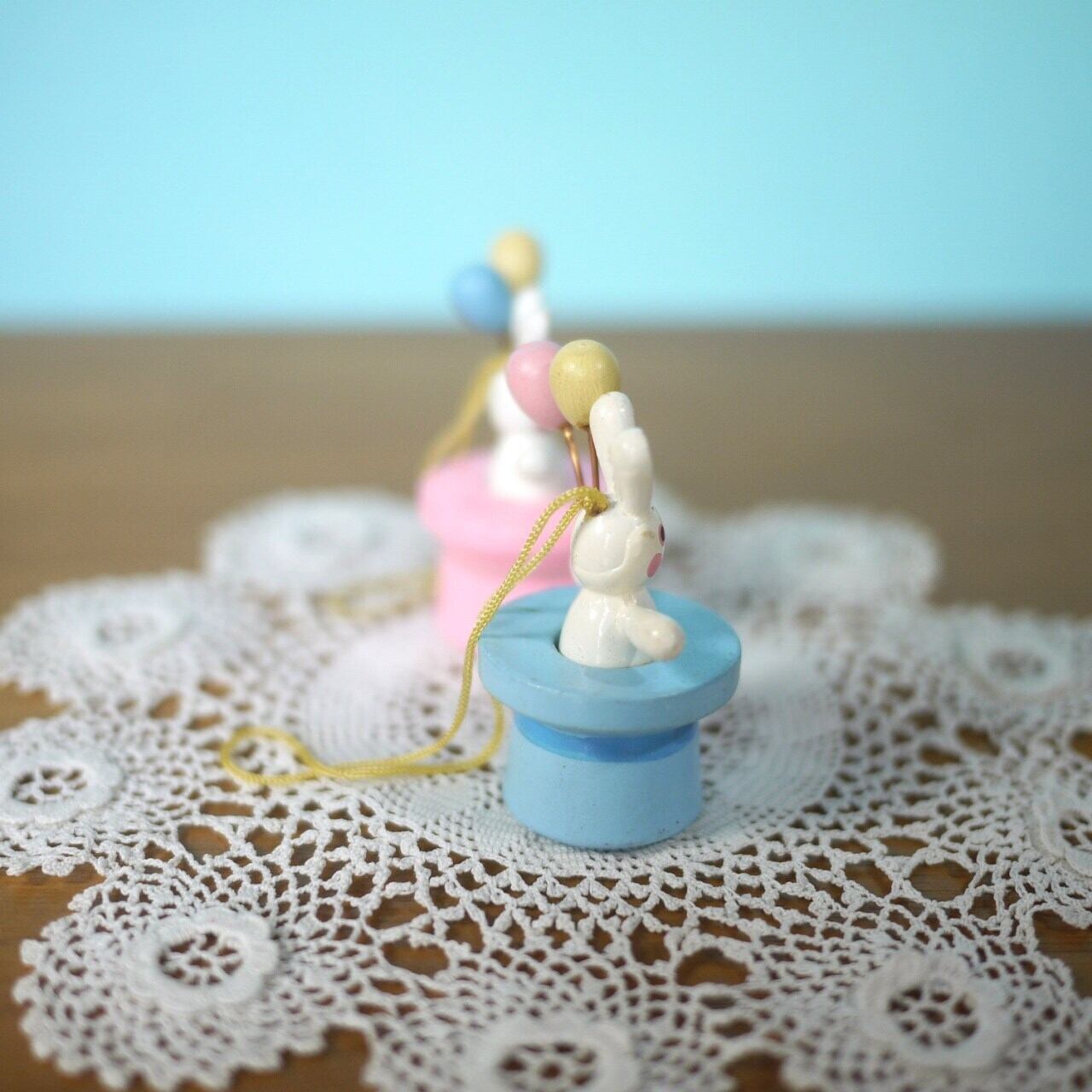 木製イースターオーナメント2P うさぎmitBallon エルツ ドイツ