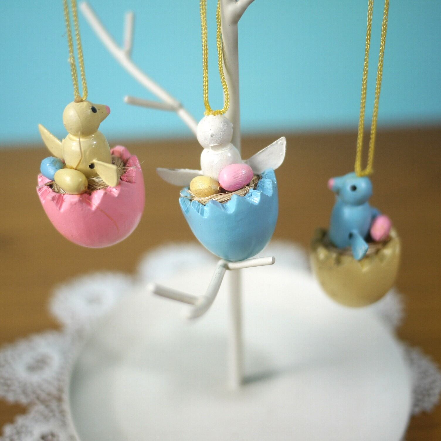 [木製イースターオーナメント3P ひよこmitEi エルツ ドイツ]