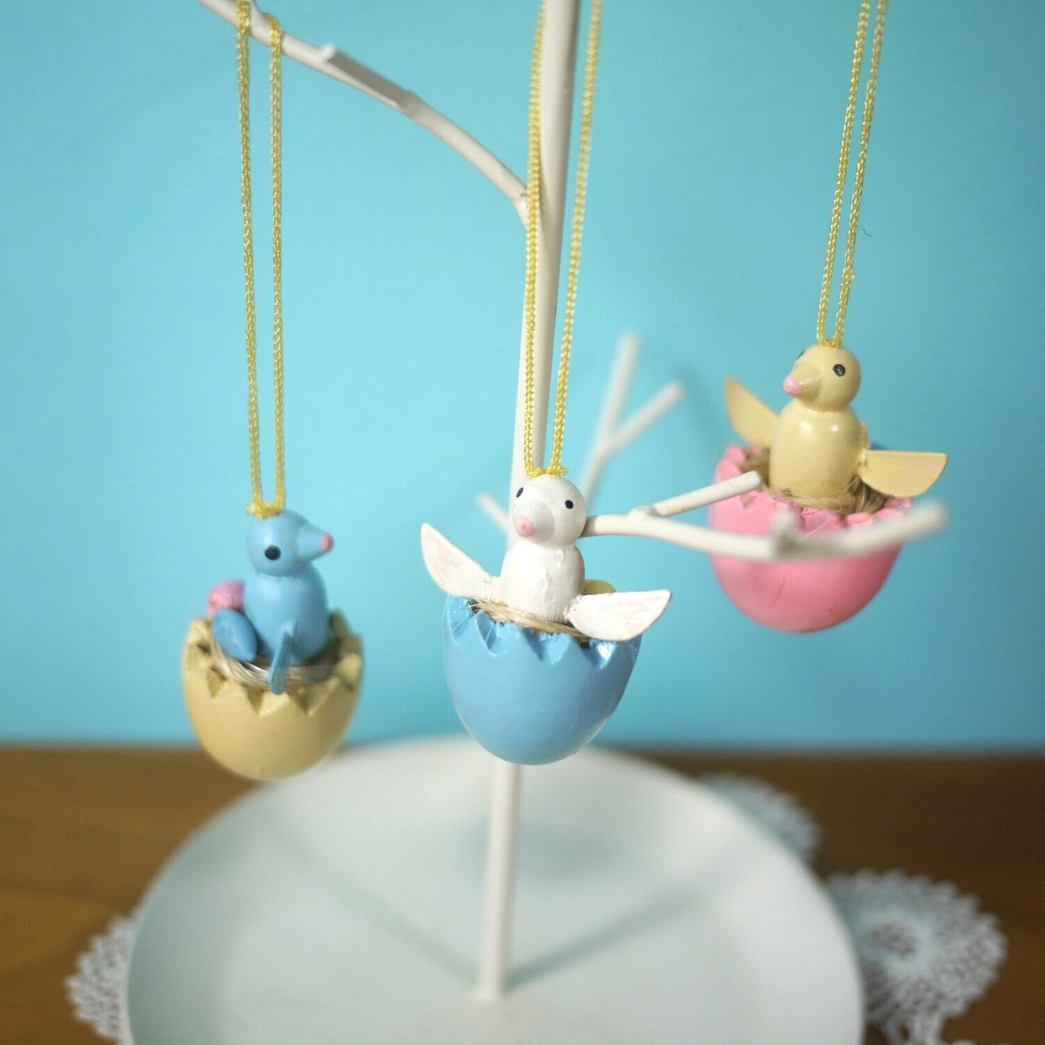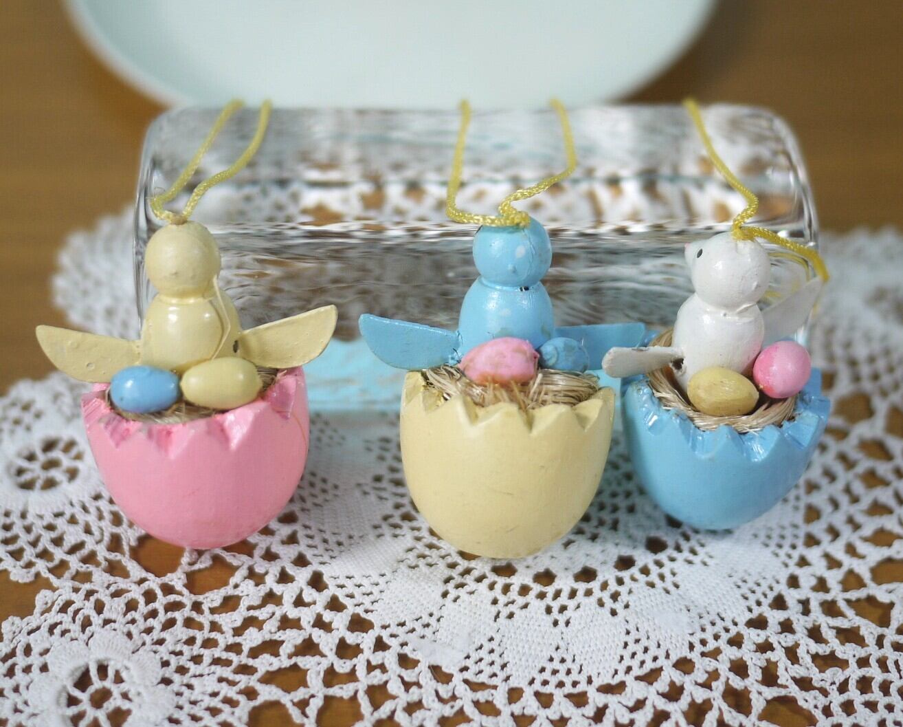 木製イースターオーナメント3P ひよこmitEi エルツ ドイツ