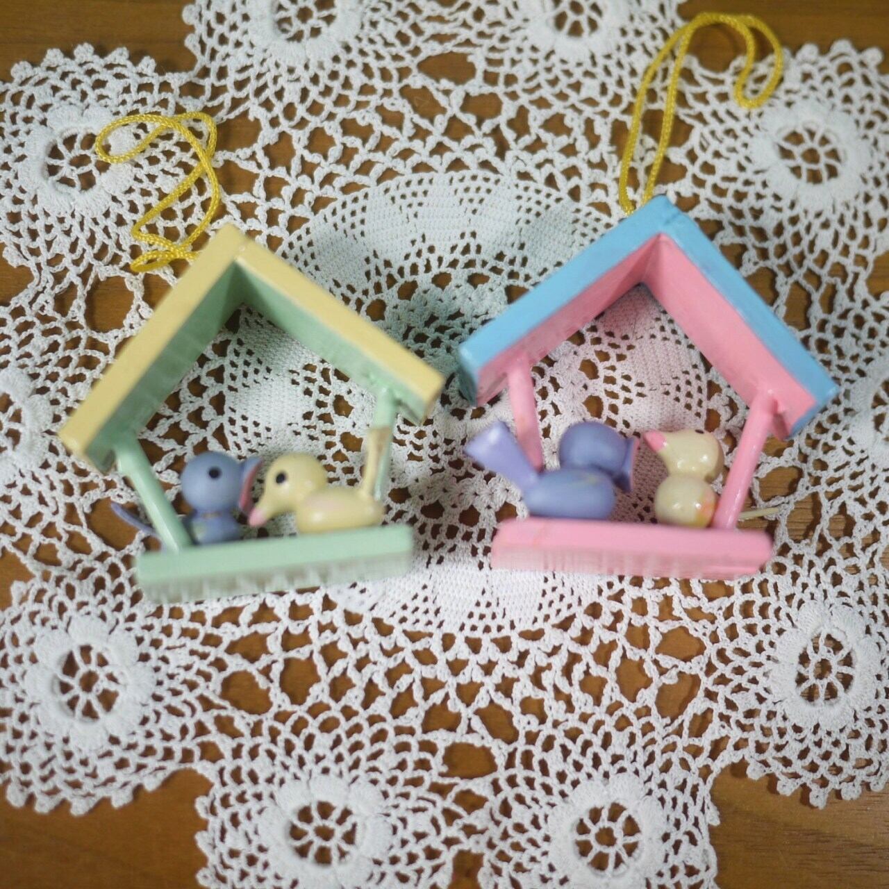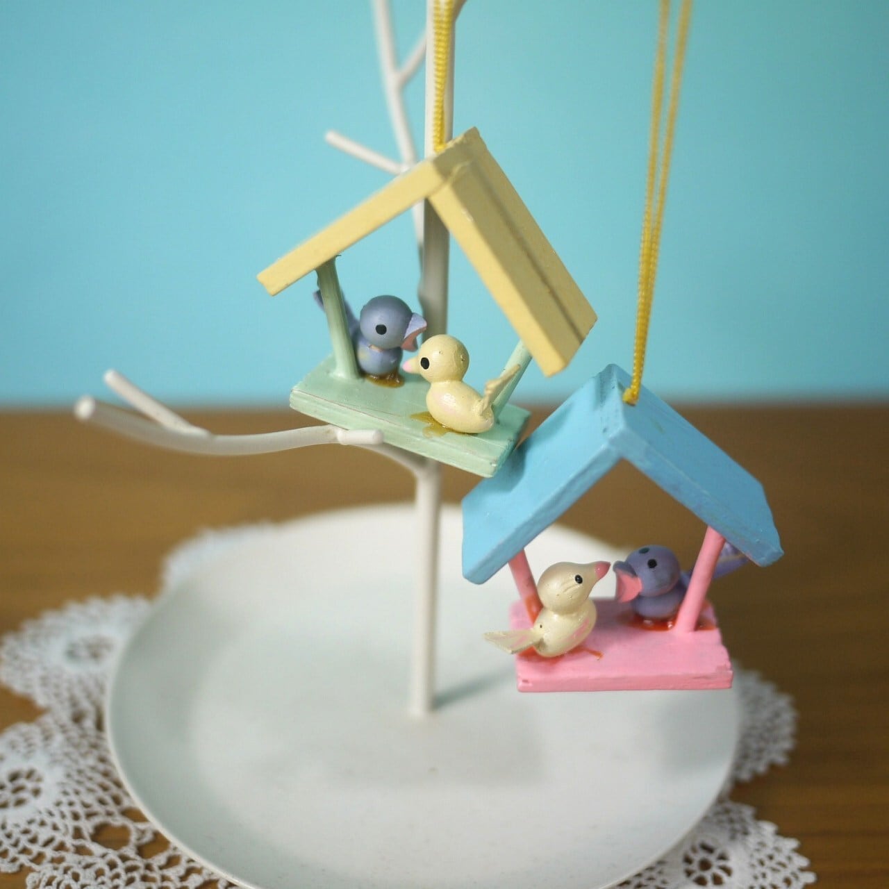 木製イースターオーナメント2P 小鳥のおうち エルツ ドイツ