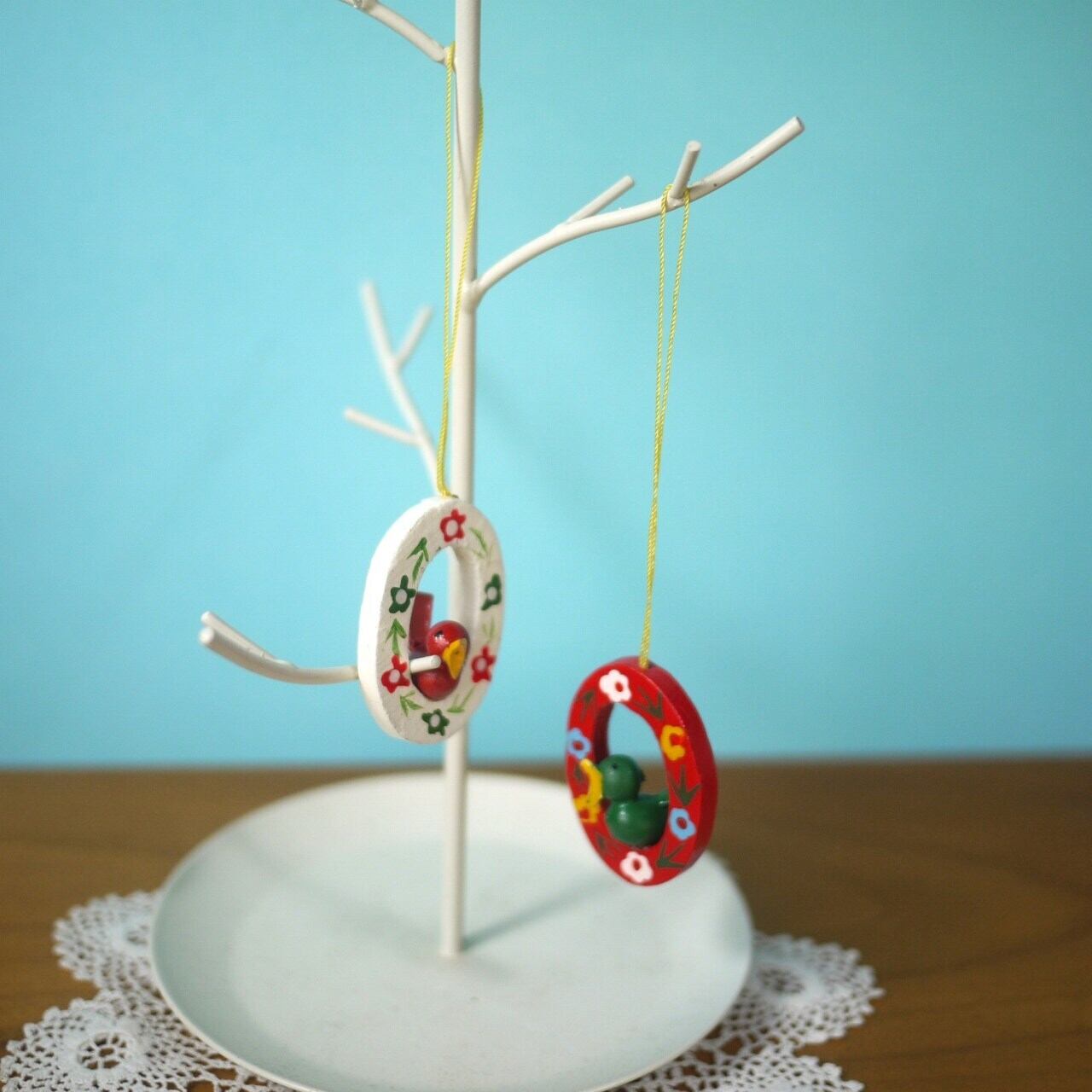 木製イースターオーナメント 花輪と小鳥 エルツ ドイツ