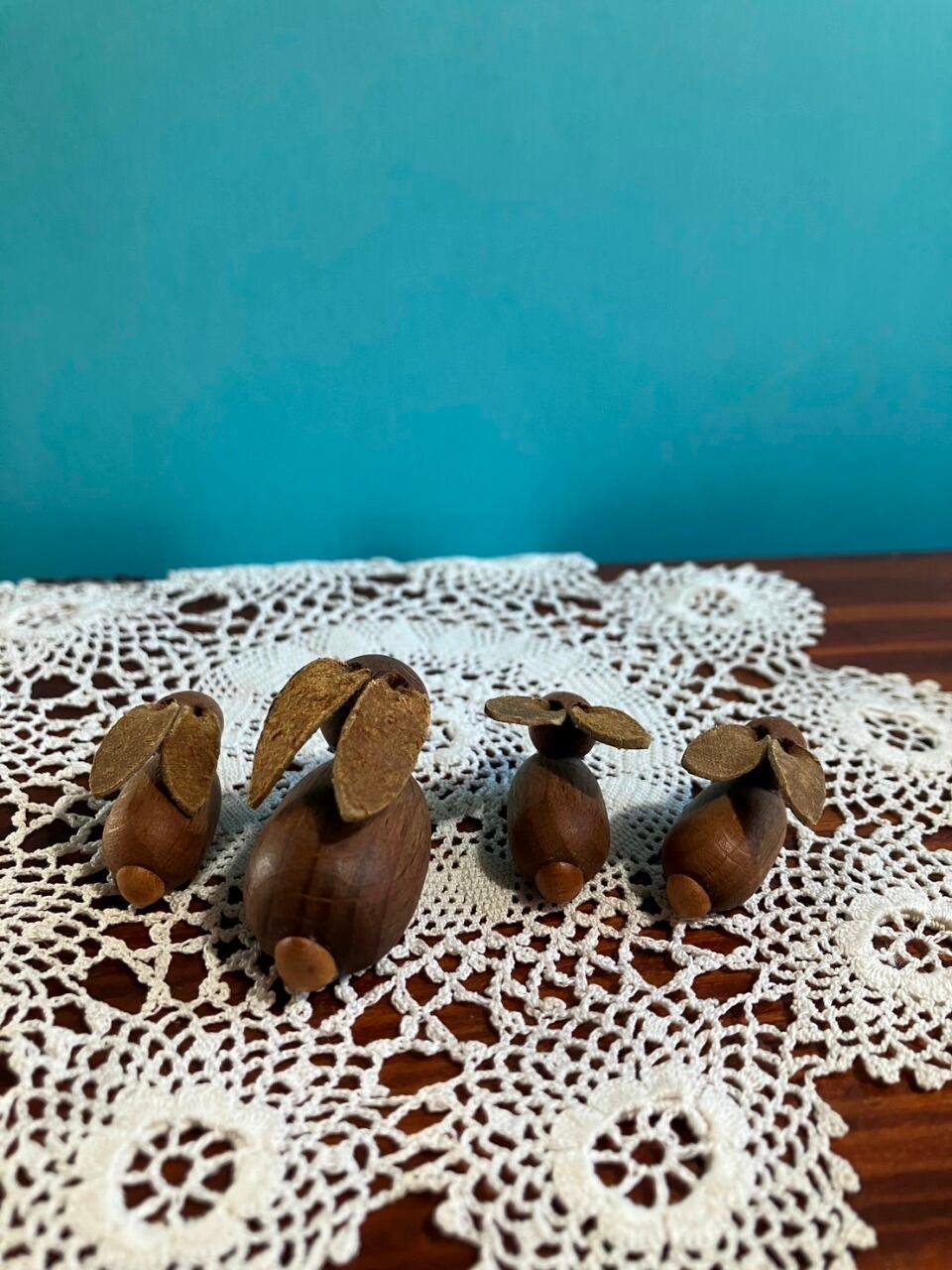 イースター木製オーナメント 小さなウサギ4匹 東ドイツ
