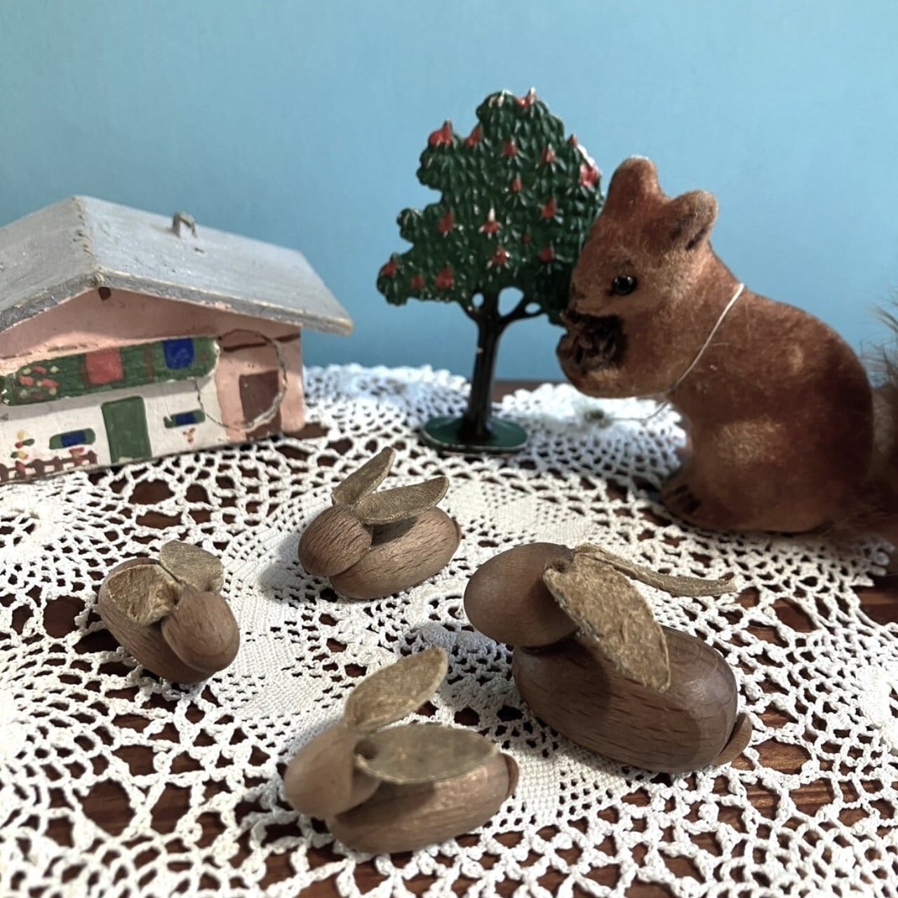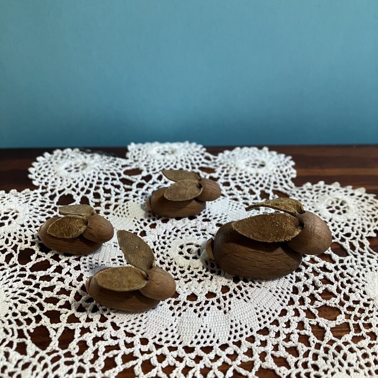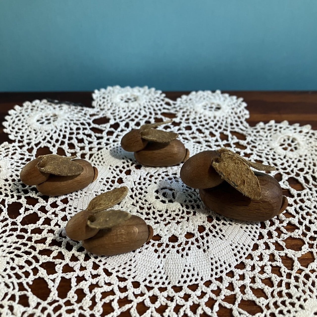 [イースター木製オーナメント 小さなウサギ4匹 東ドイツ]