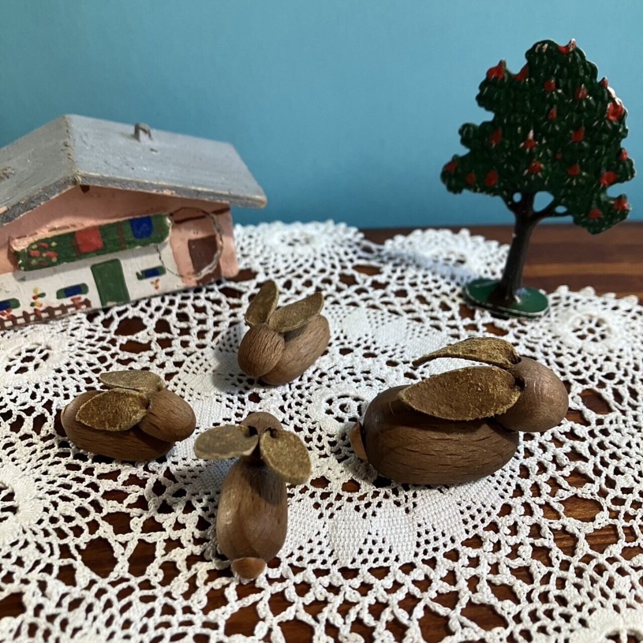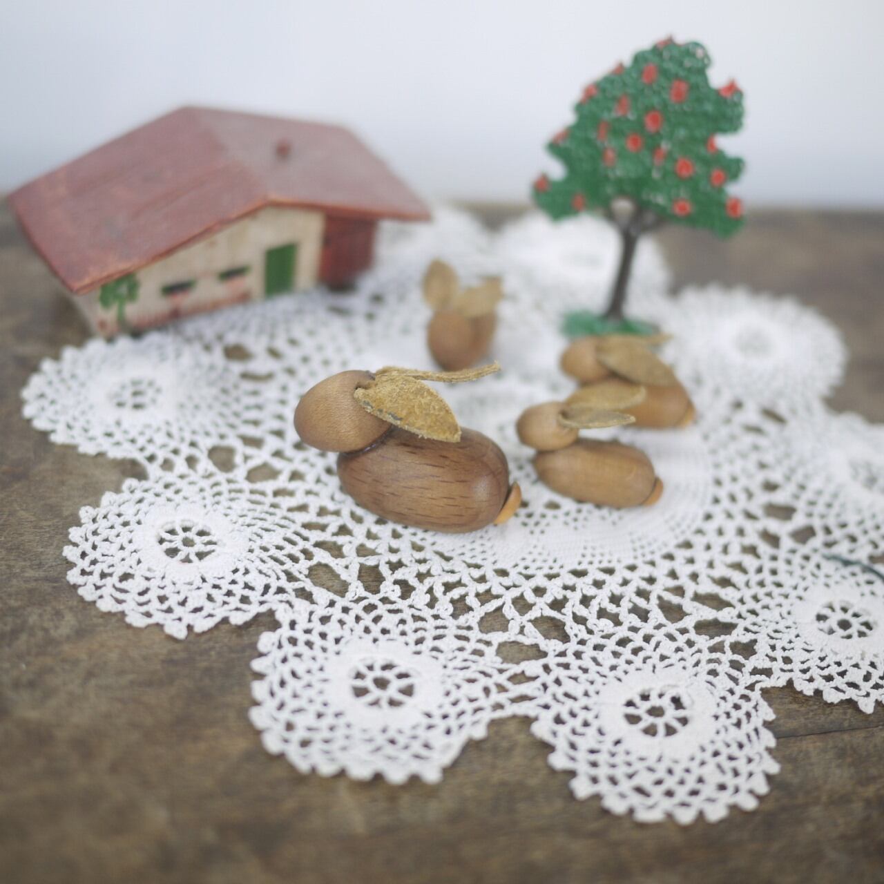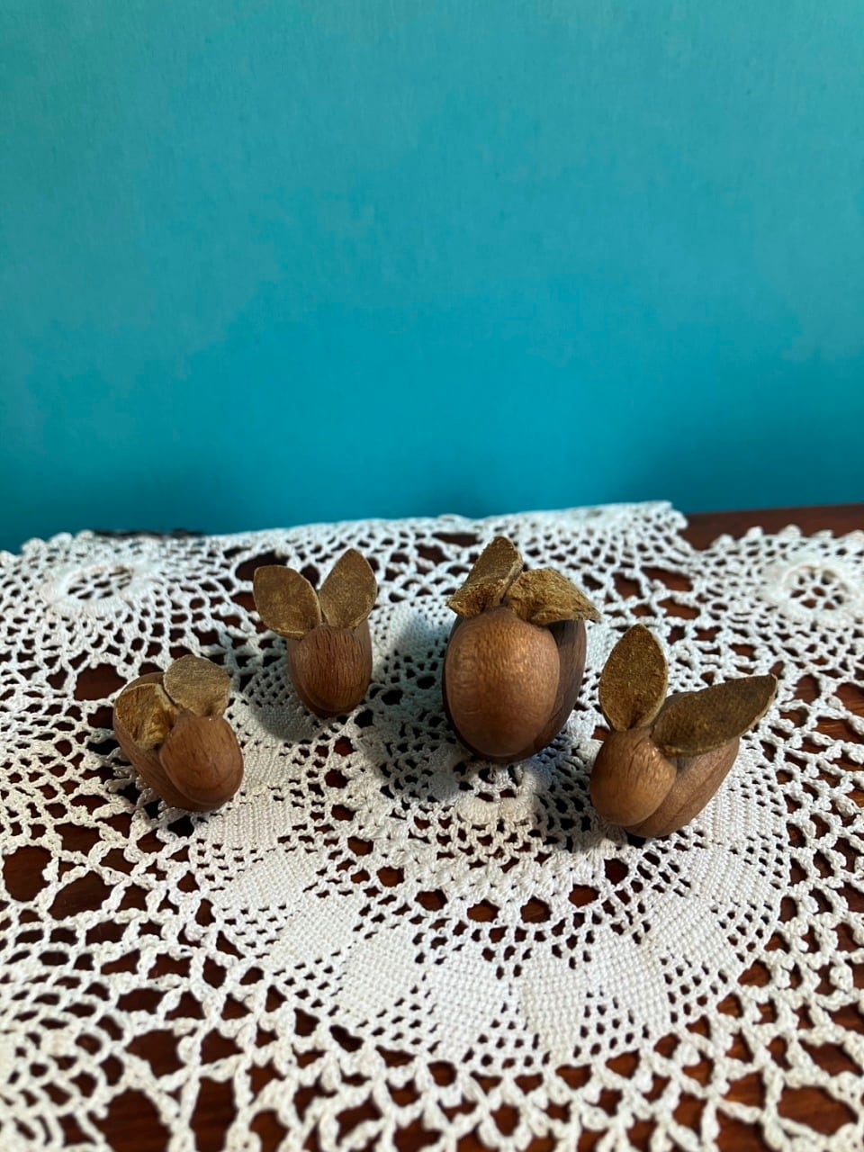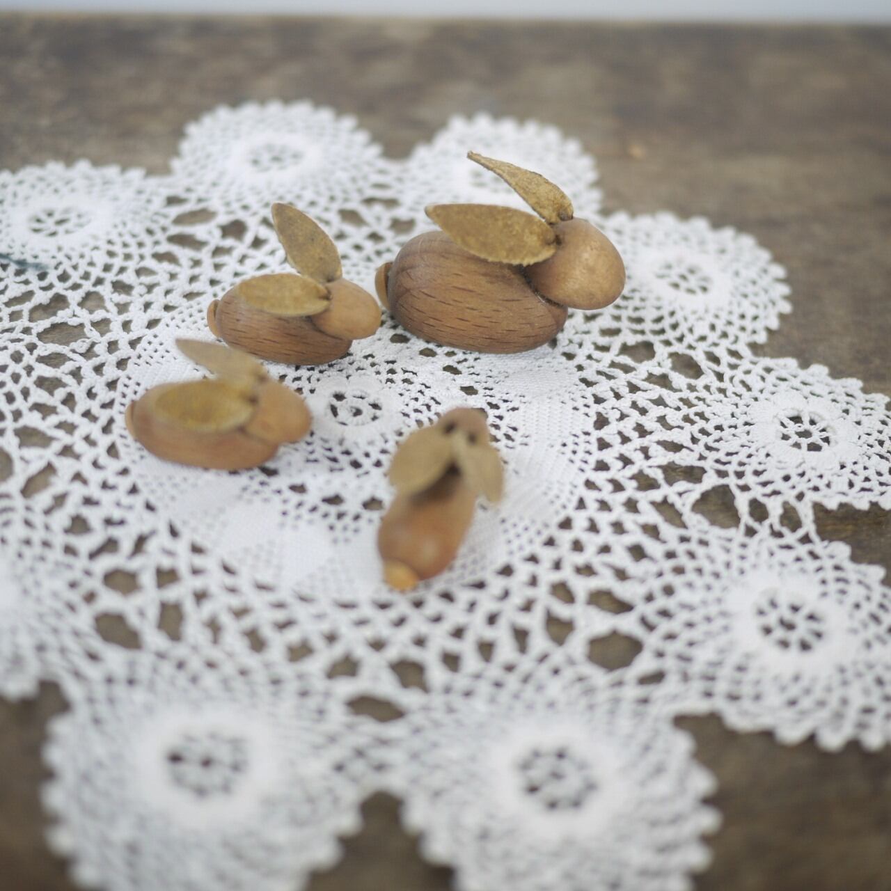 [イースター木製オーナメント 小さなウサギ4匹 東ドイツ]