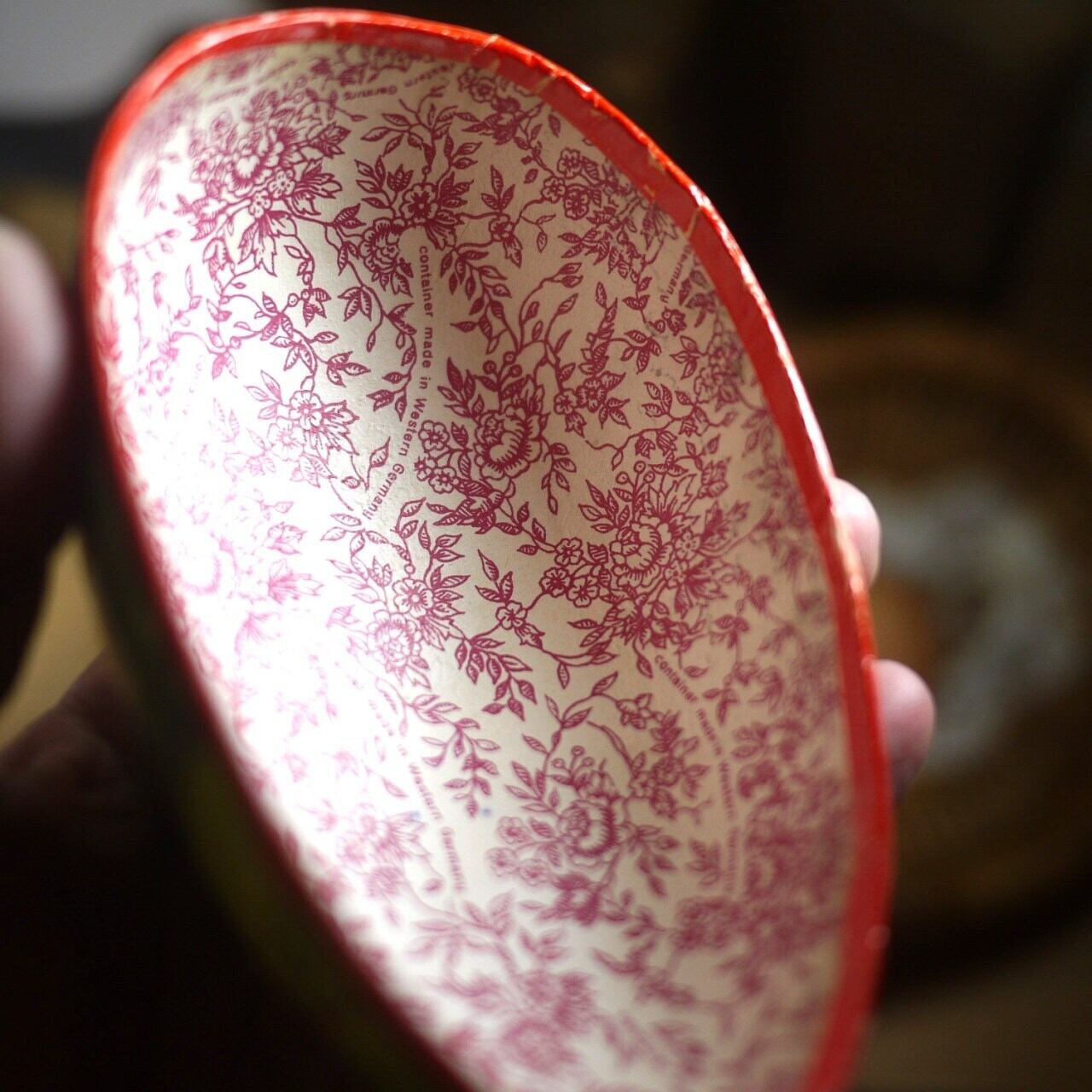 内側には花とcontainer made in Western Germany のプリントです。