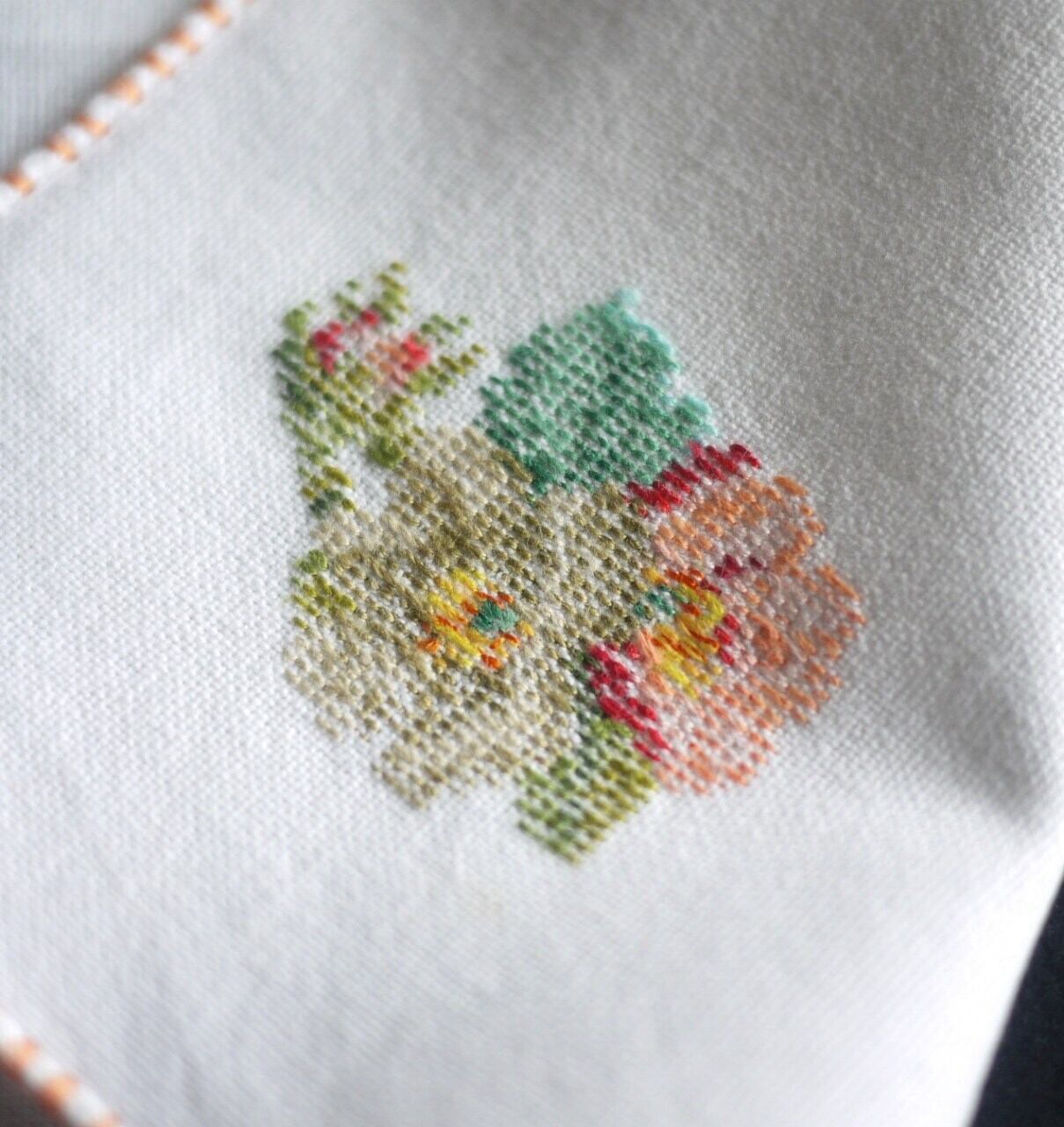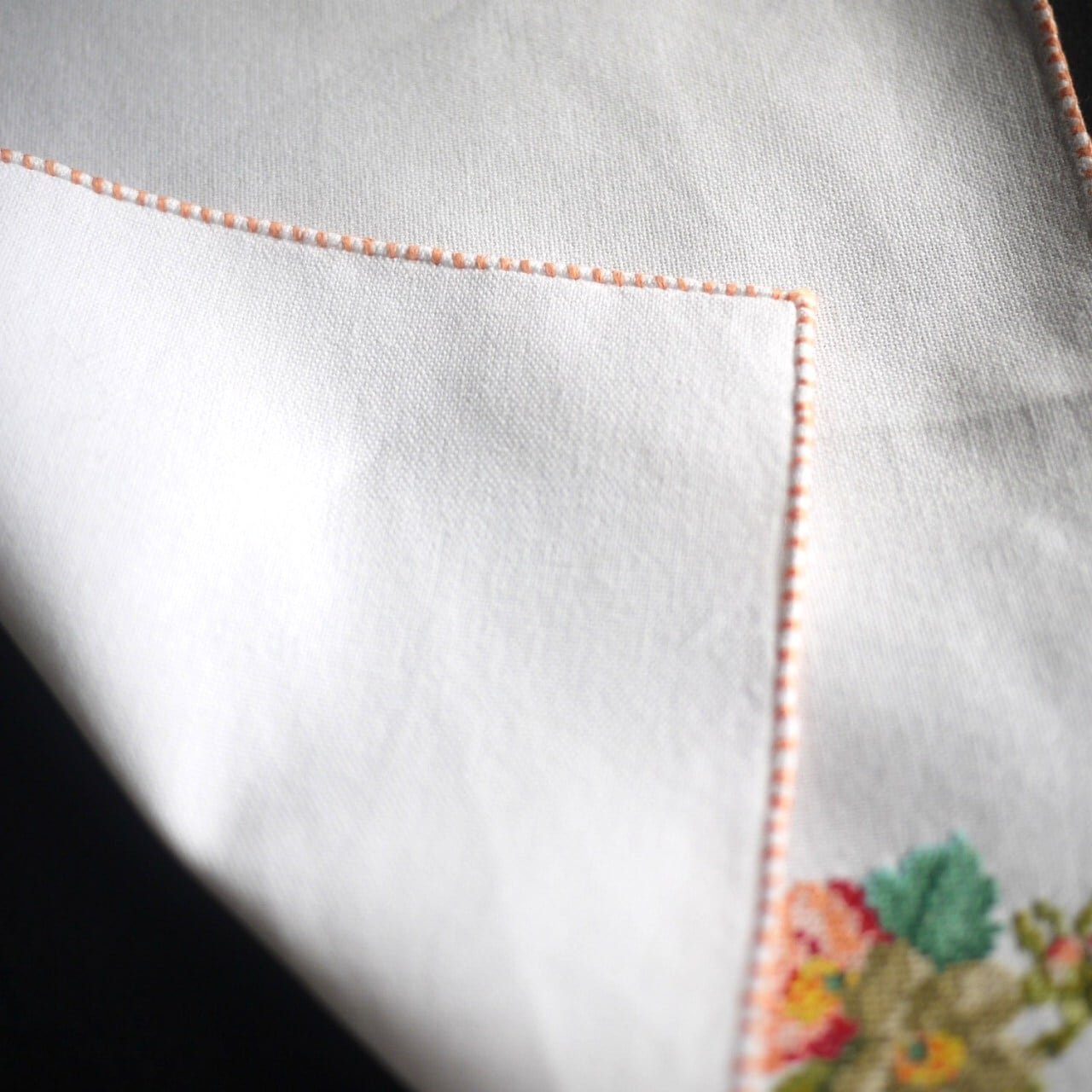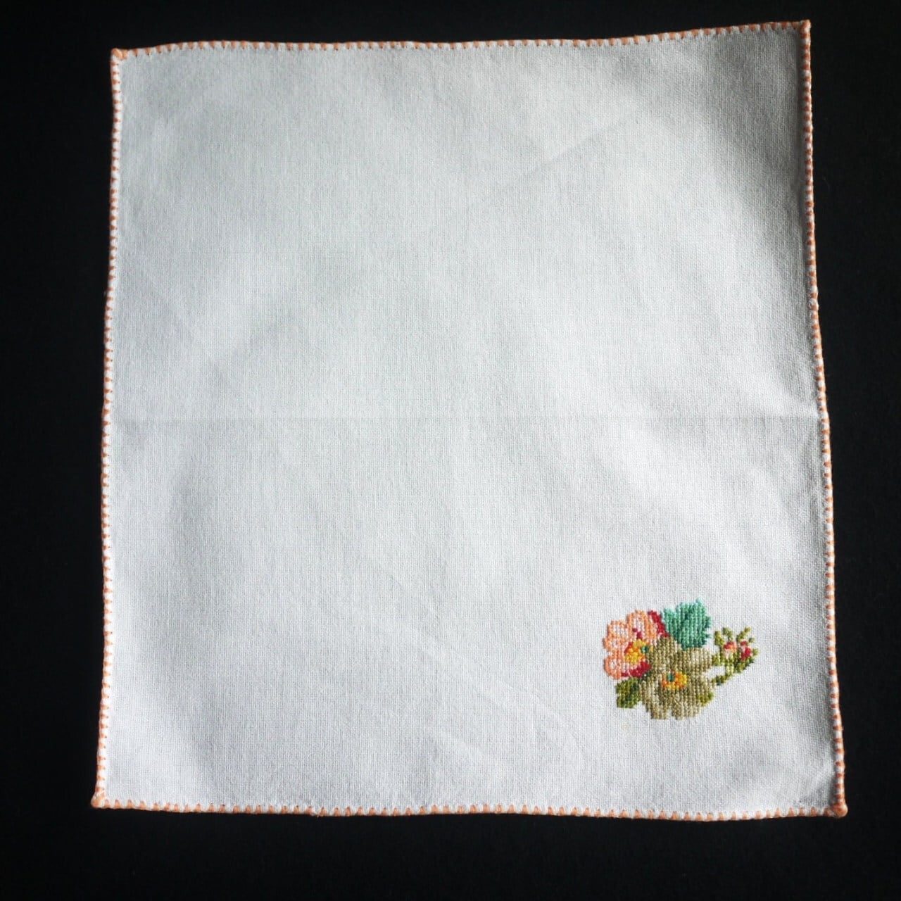 プチポワン刺繍 花の白いハンカチ ドイツ