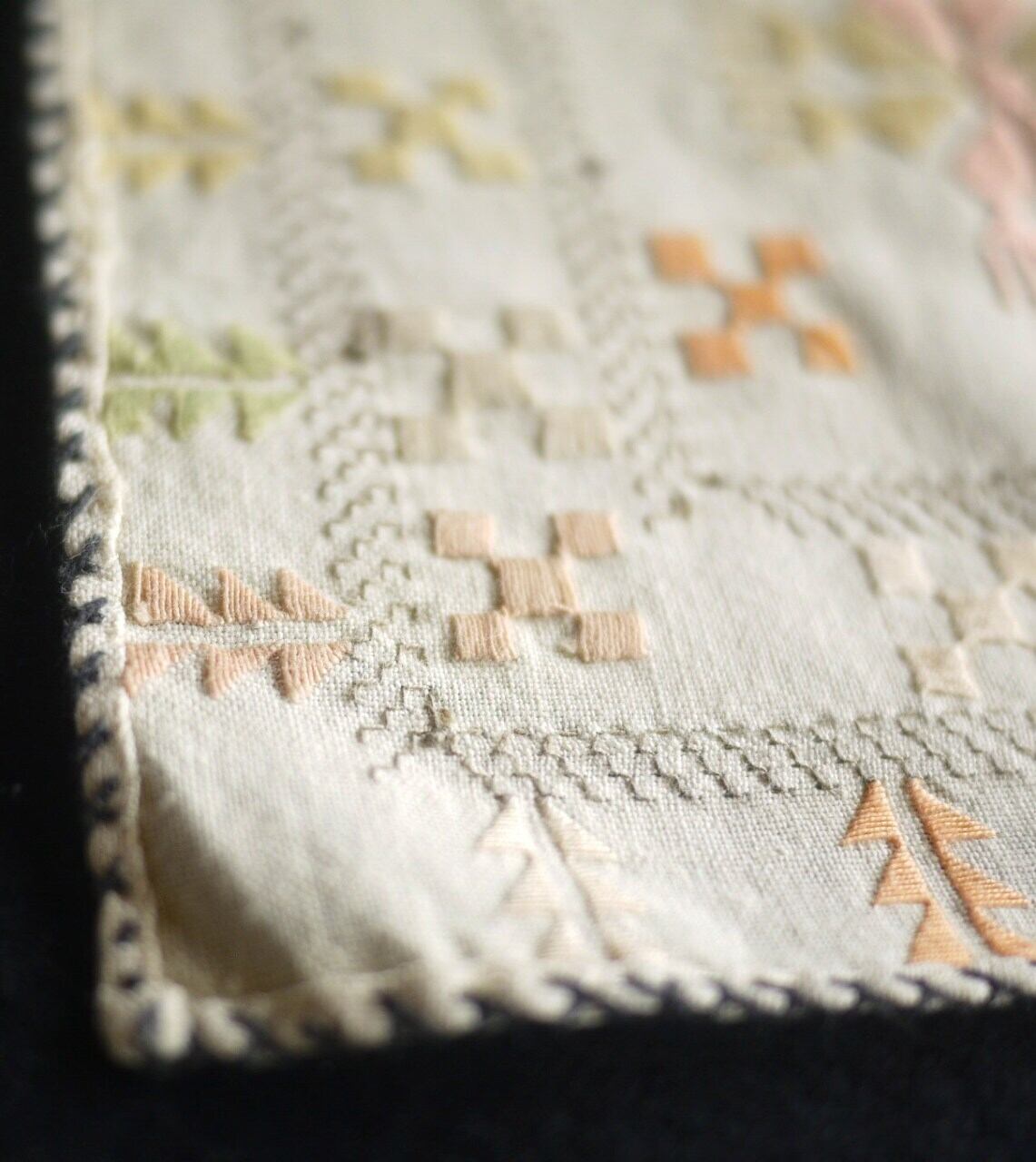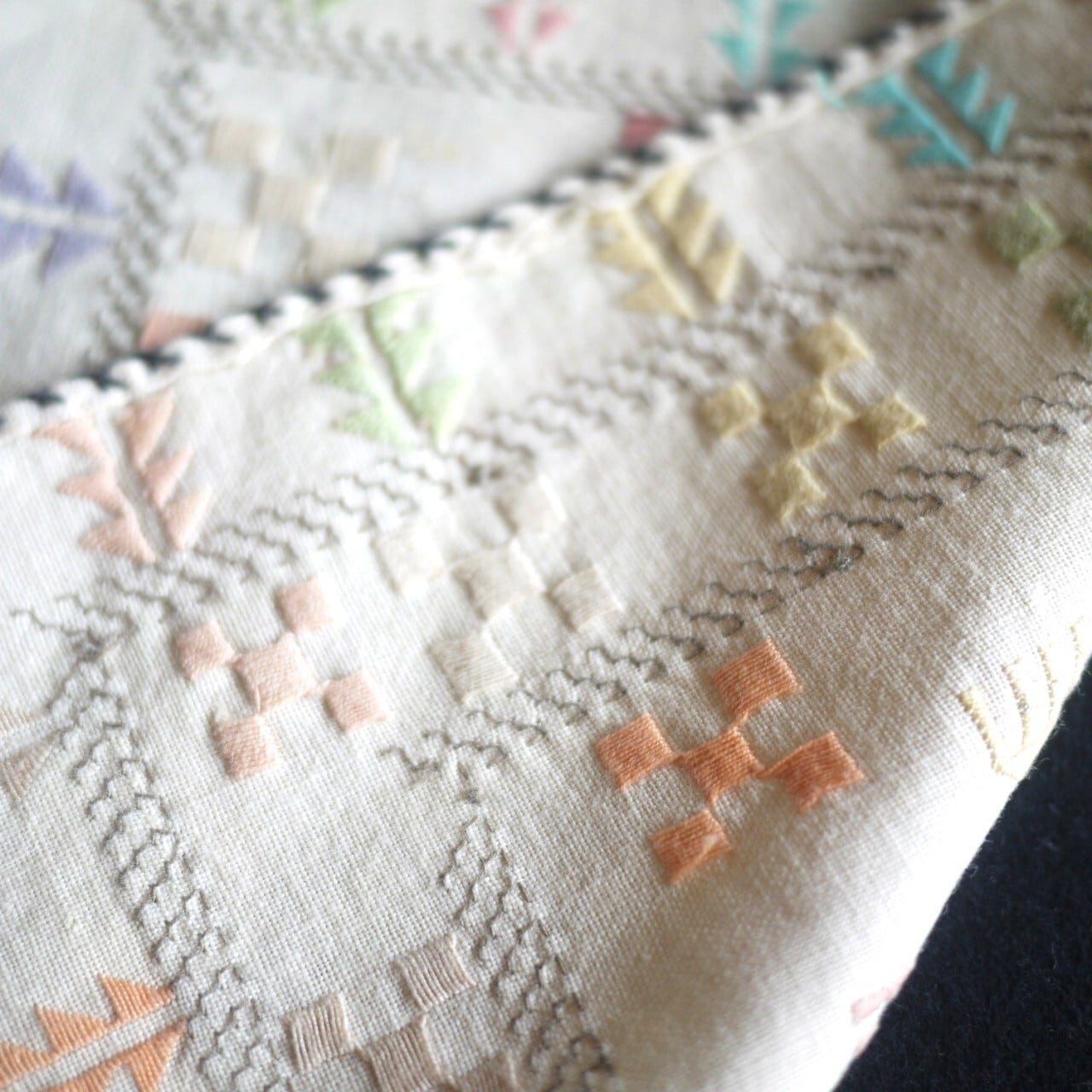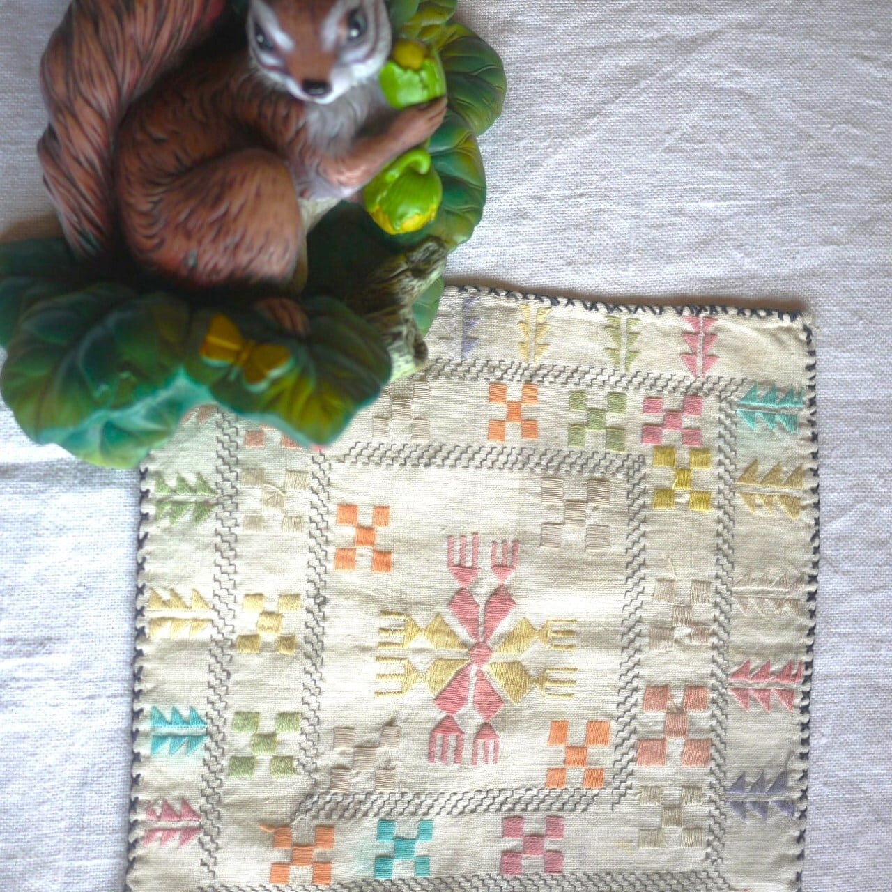 旧ユーゴスラビア 古い刺繍ハンカチ 幾何学模様