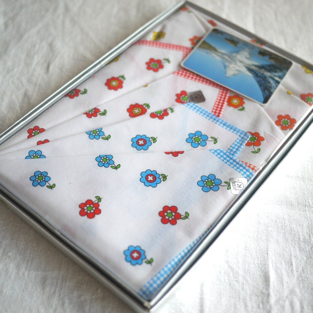 昭和レトロ 花柄プリントハンカチ 箱入3枚