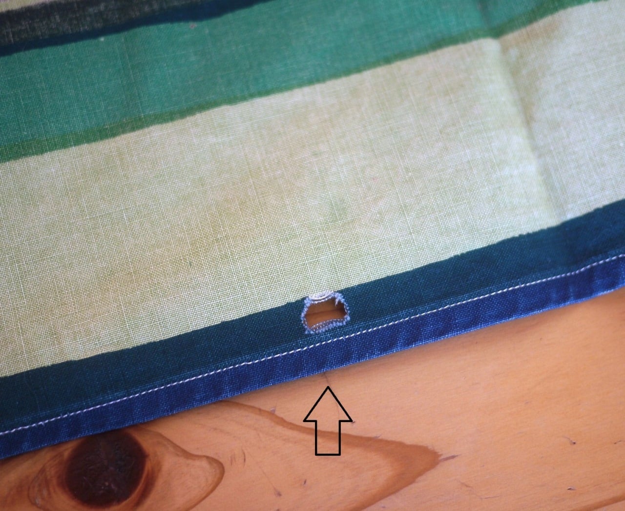 ◆コンディション:全体的経年感、退色、変色、シミ、穴(矢印)など