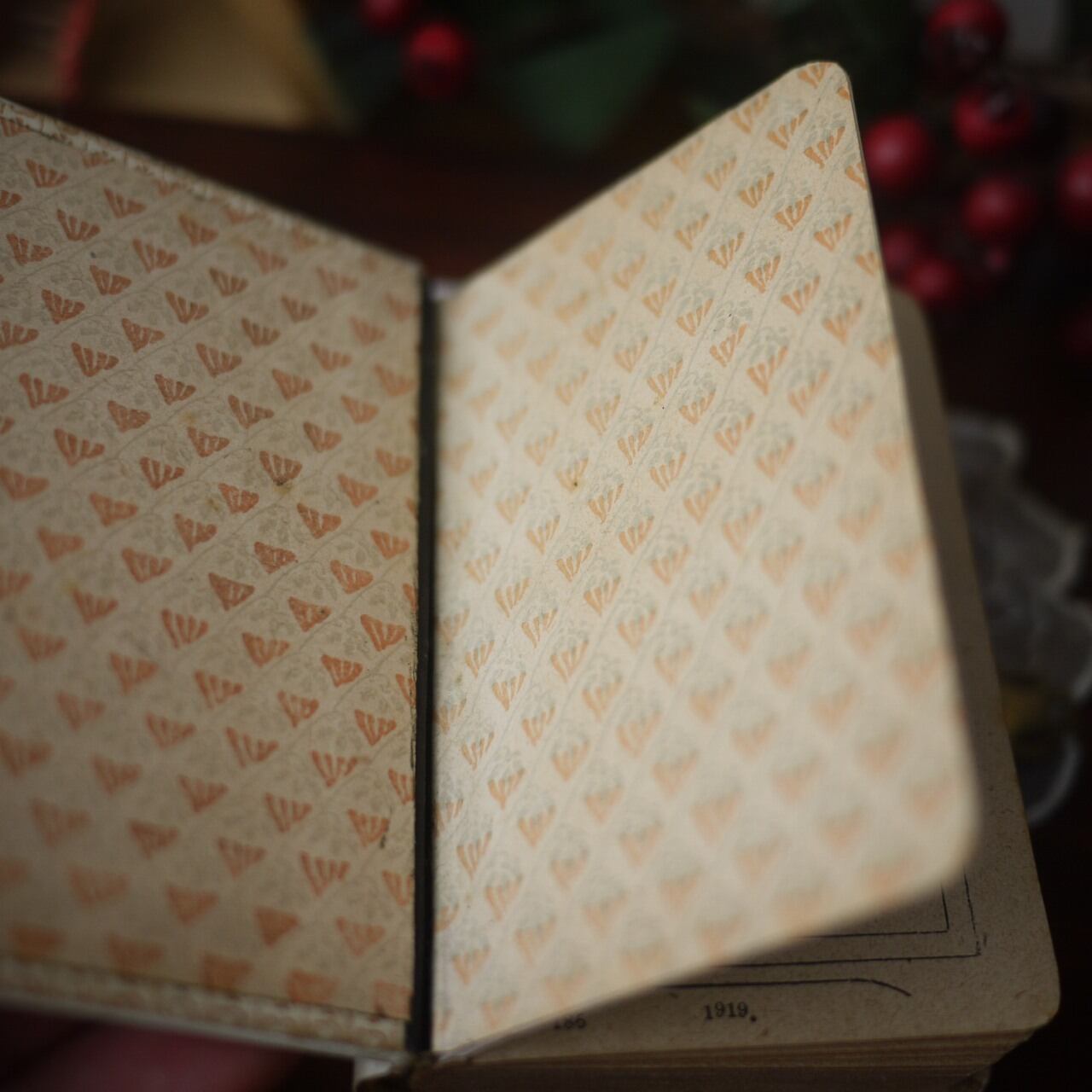 アイボリーカラーのエナメル革表紙、小口は金色。