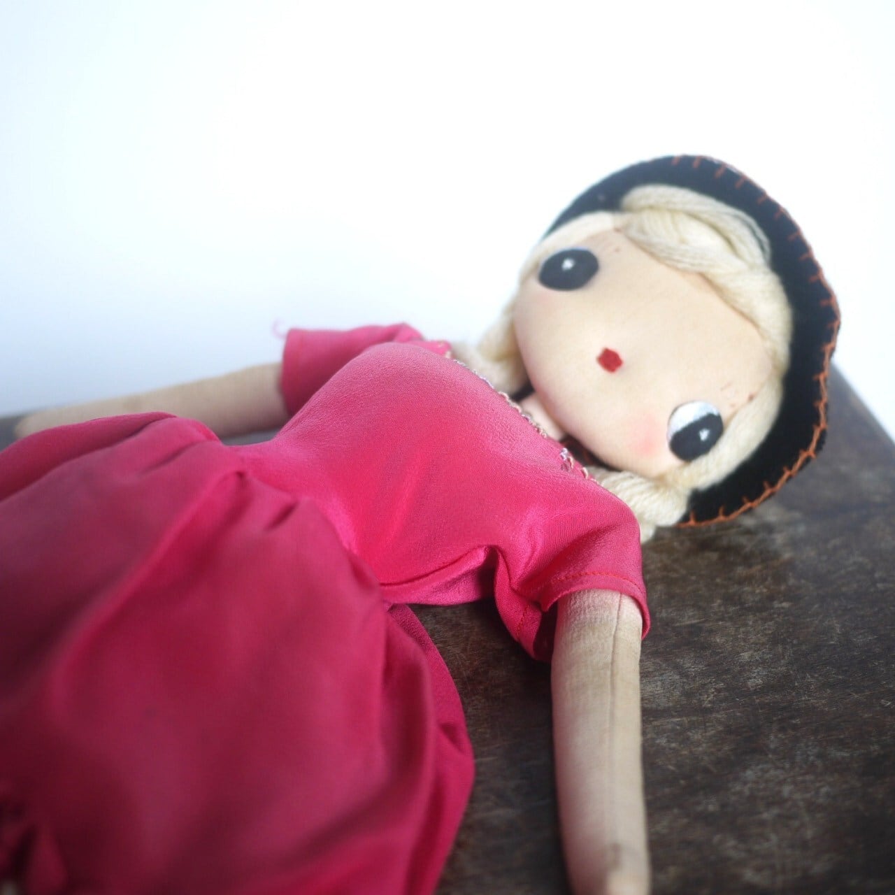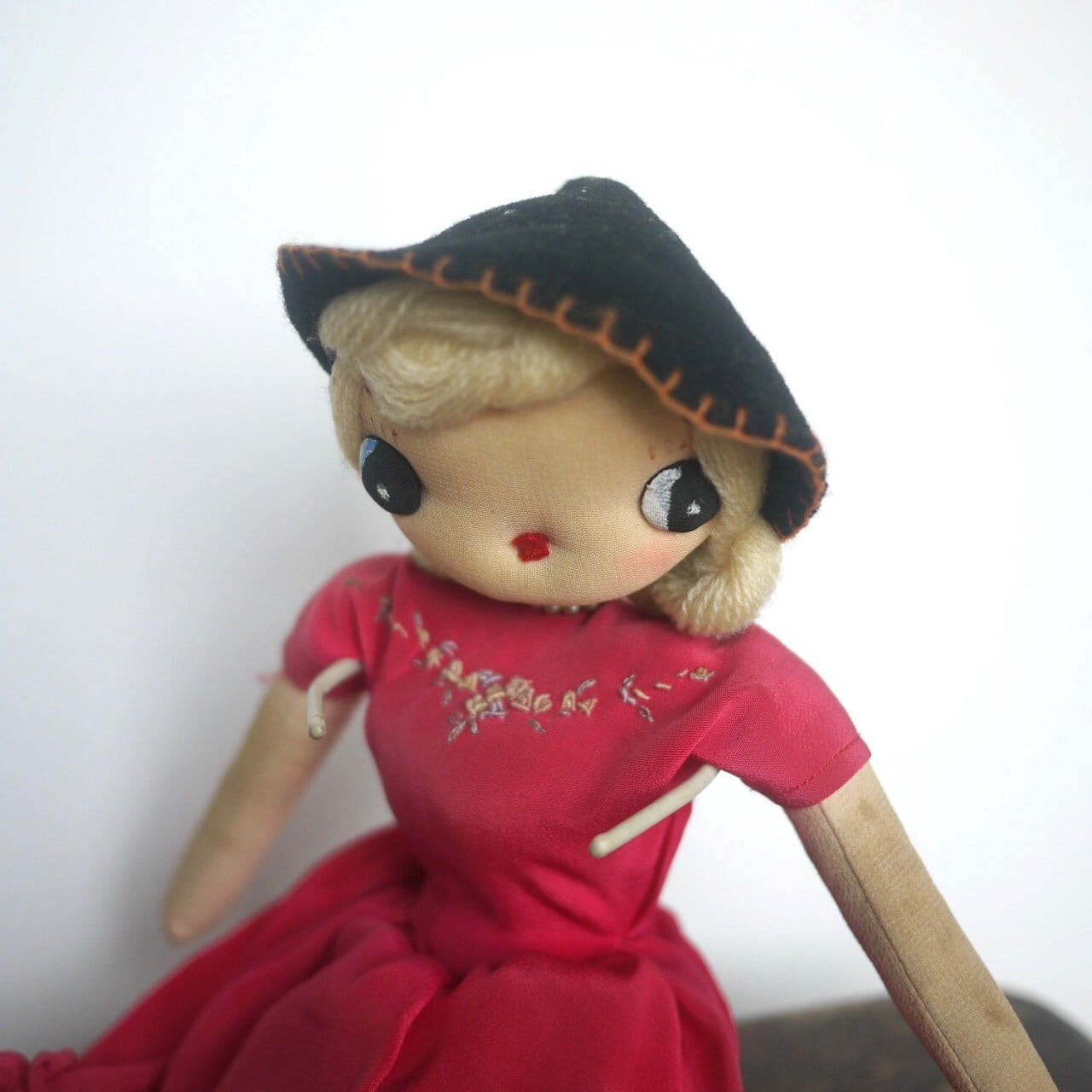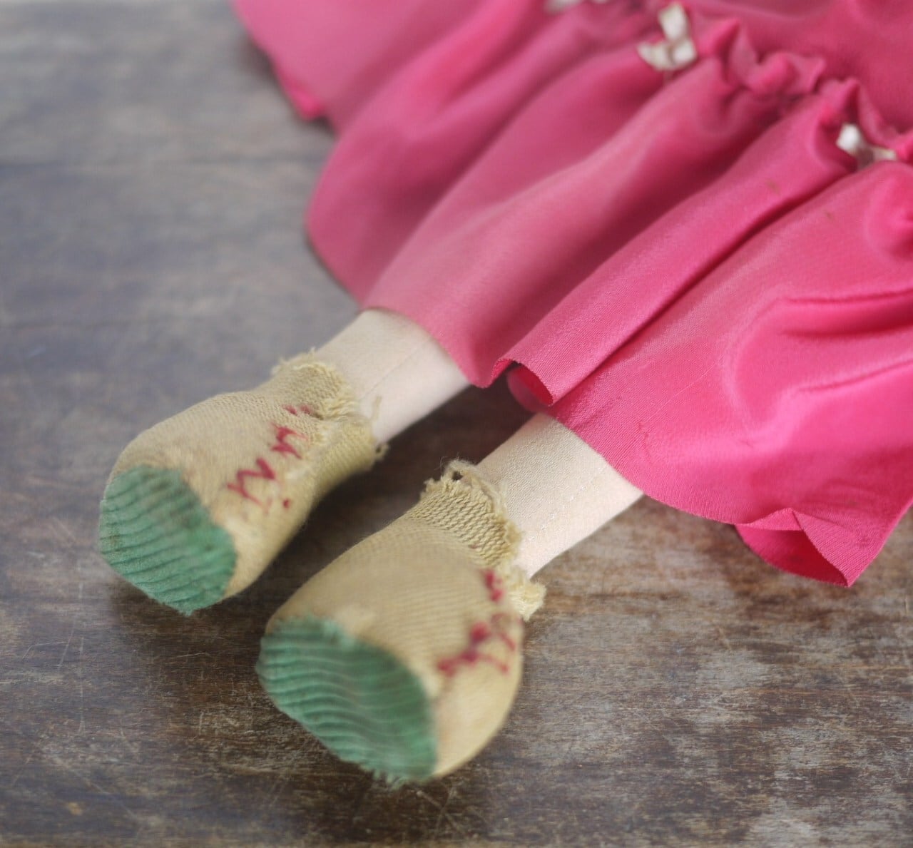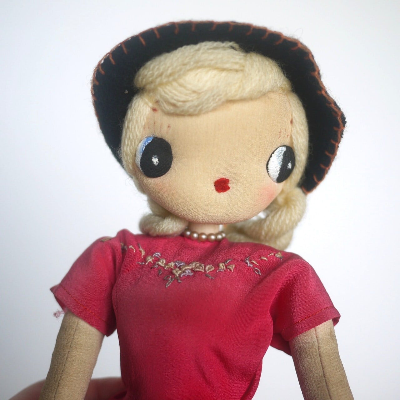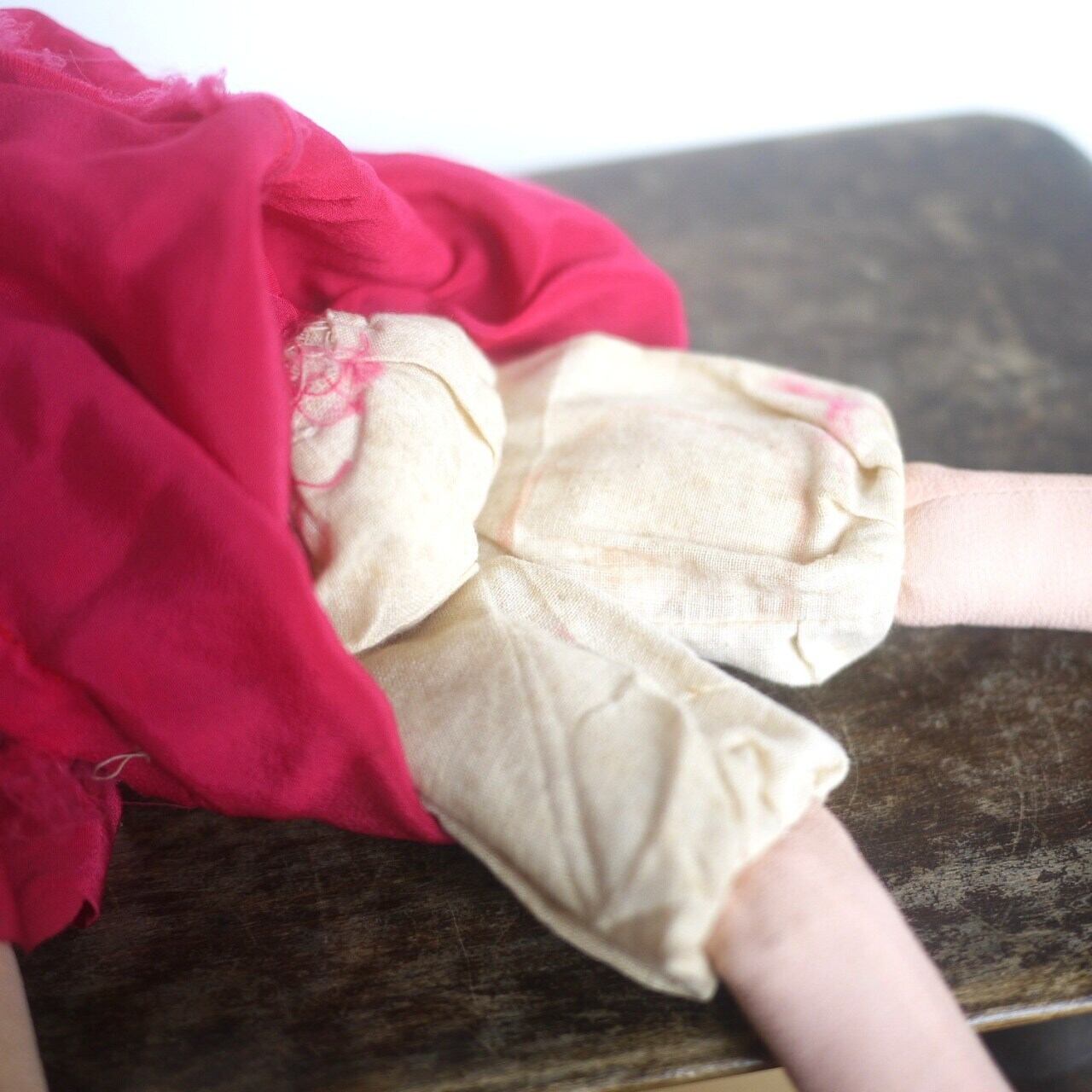 バラ色ドレスの女の子 抱き人形 ヘロヘロ人形 レトロ昭和