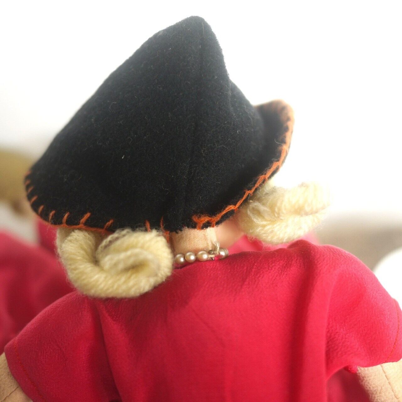 頭部は毛糸の髪とフェルトの帽子をかぶっています。