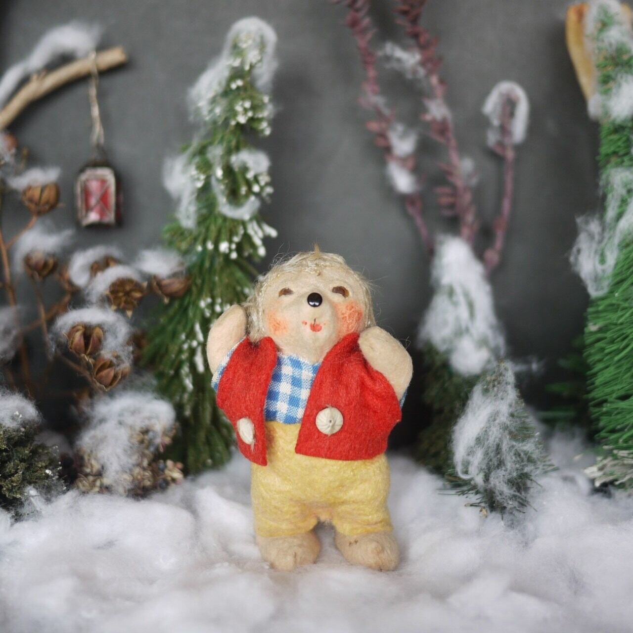 フェルト製のボディ素材に切り込みを入れてに目入っています。