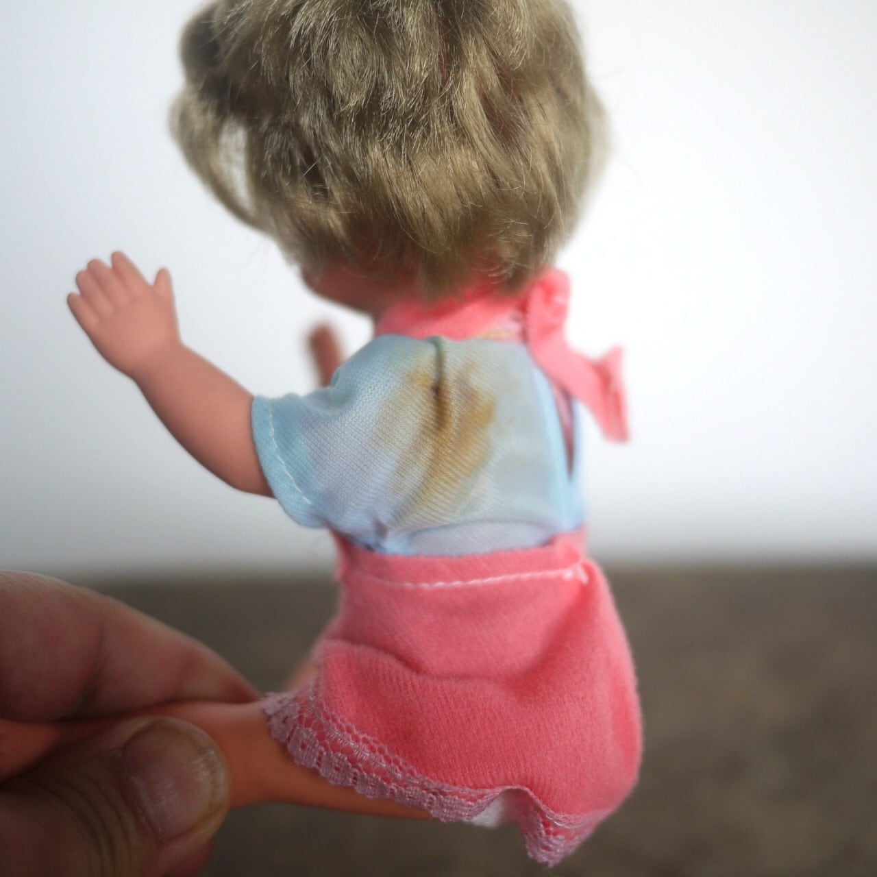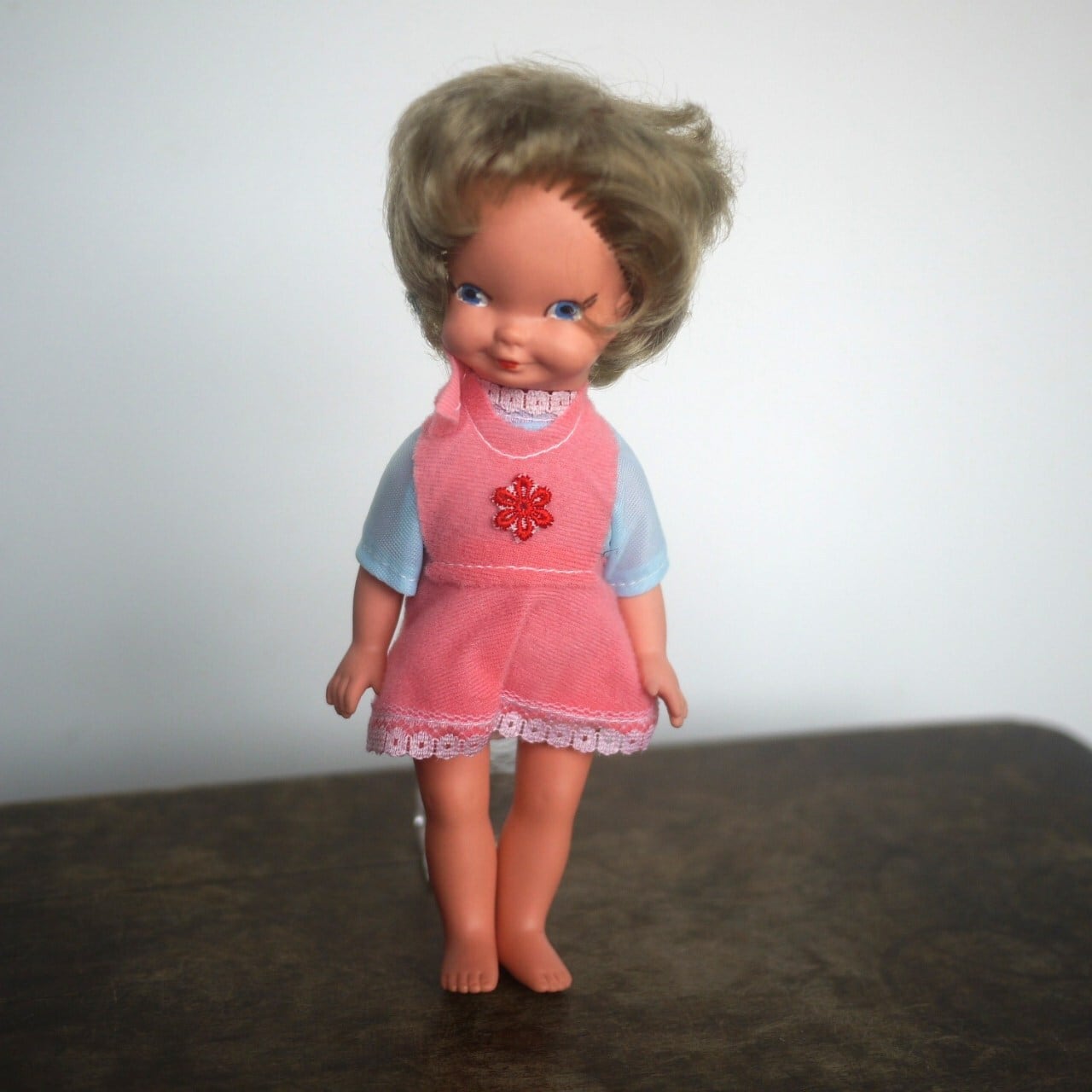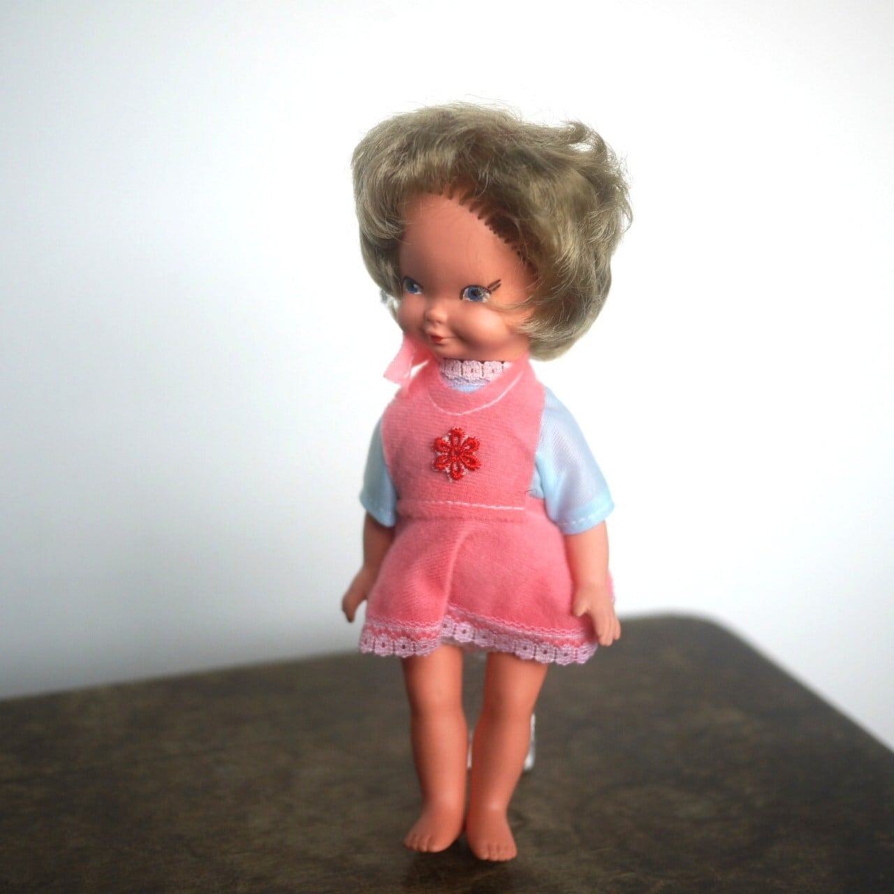 ケミカルレースがレトロでかわいい胸当て付きスカート。