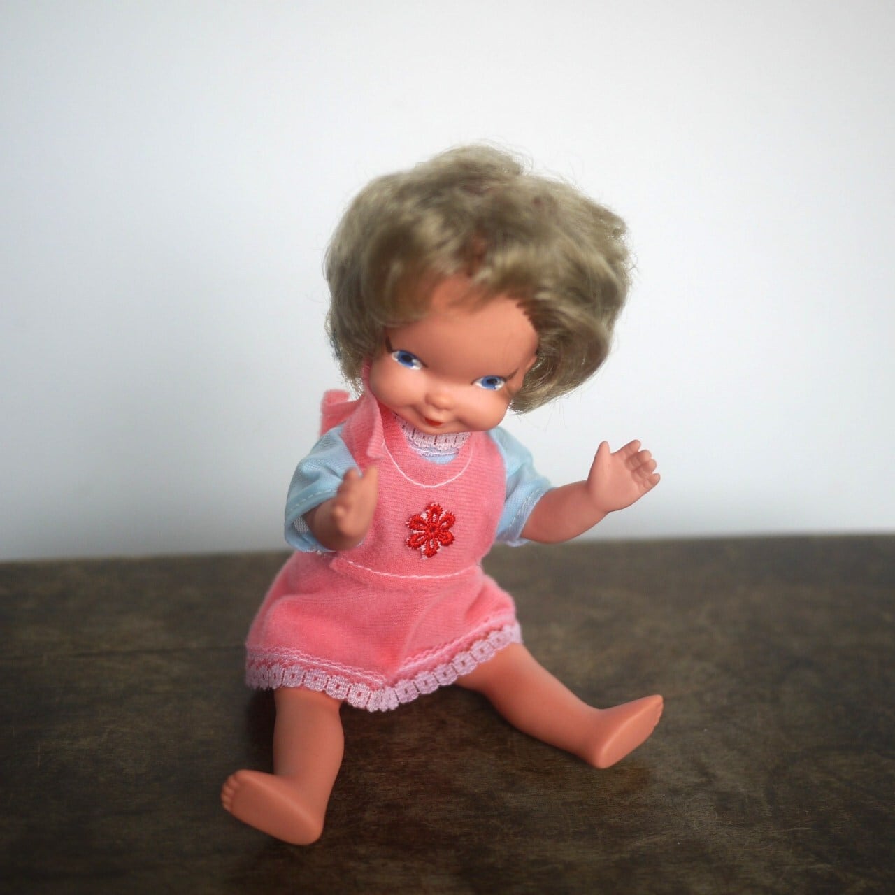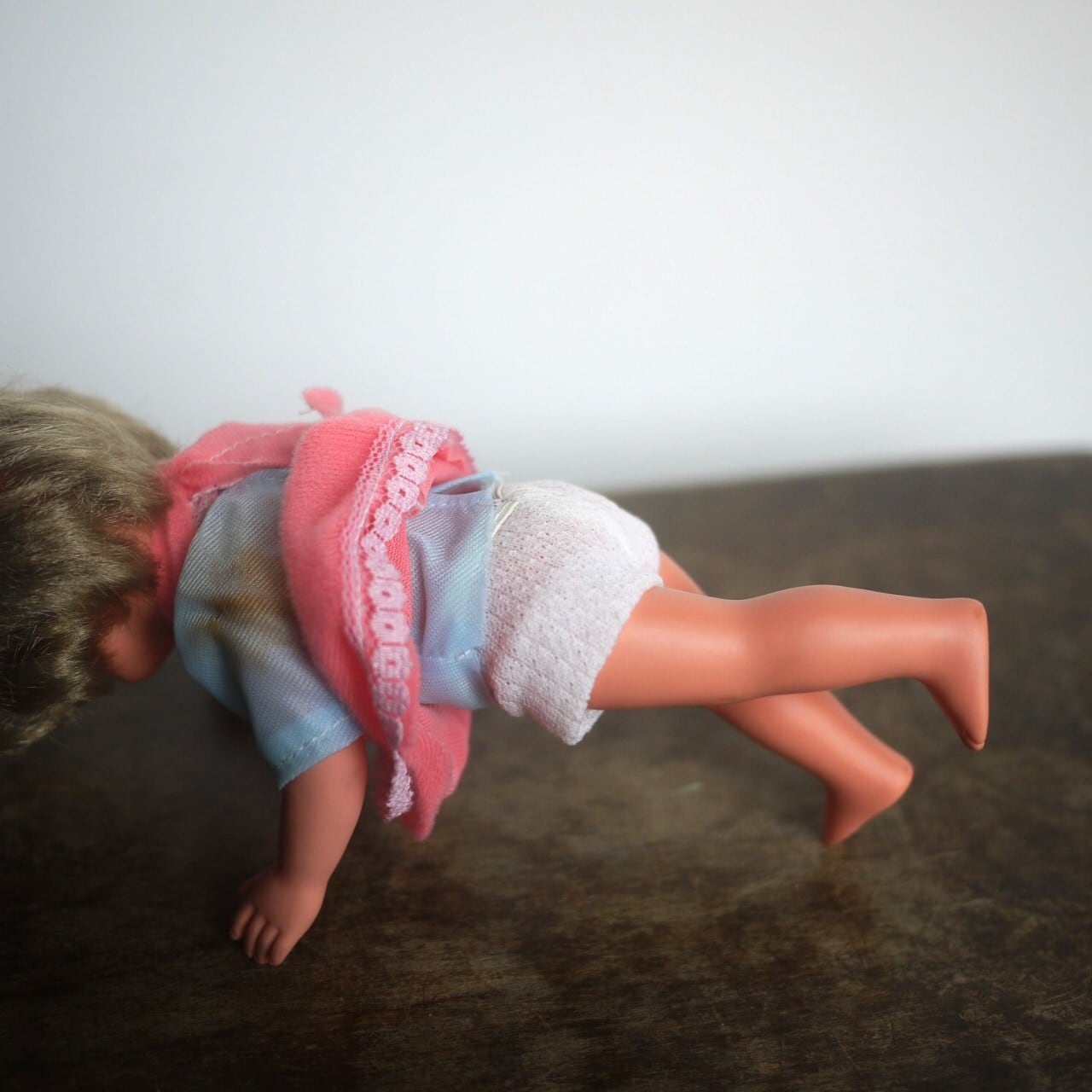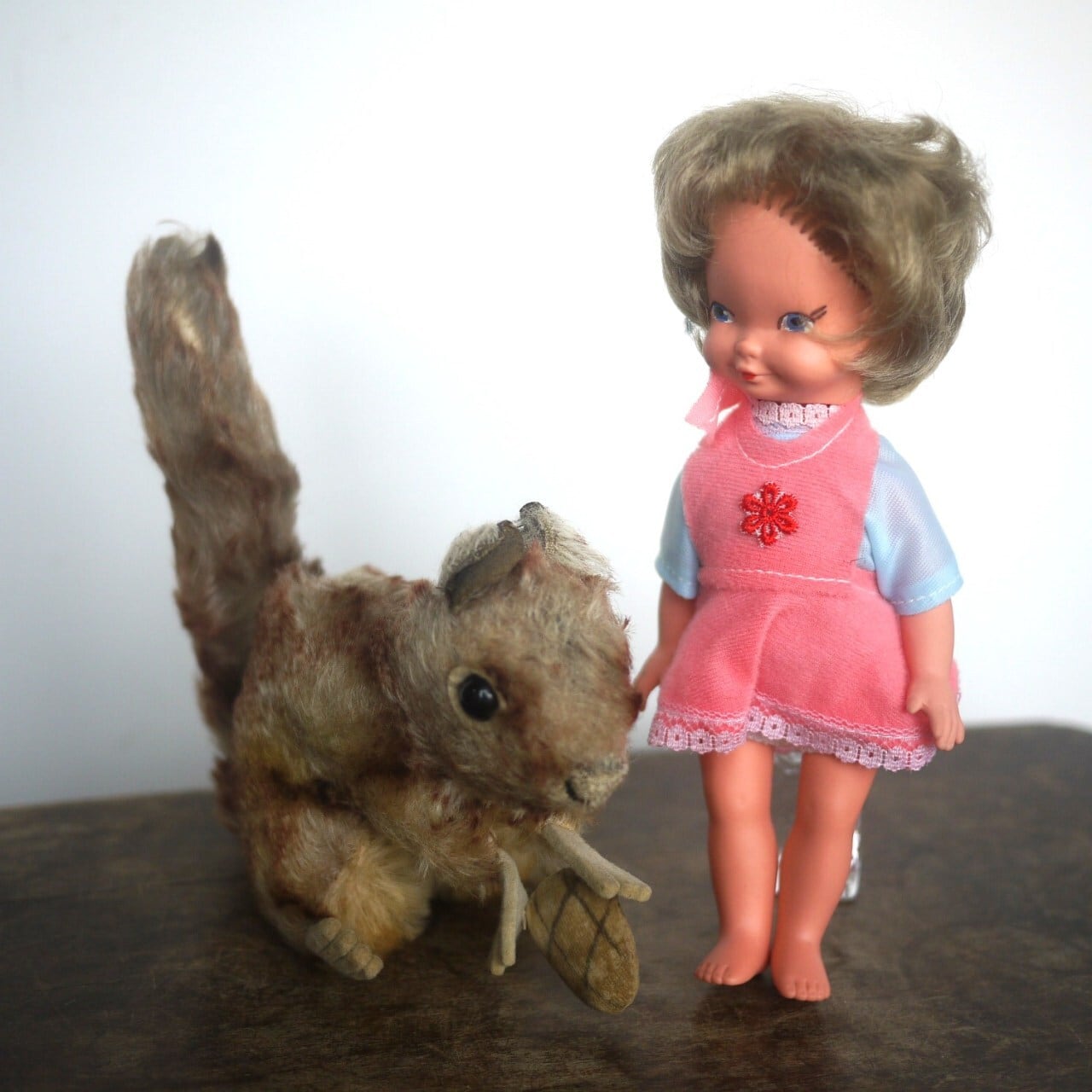 ケミカルレースがレトロでかわいい胸当て付きスカート。