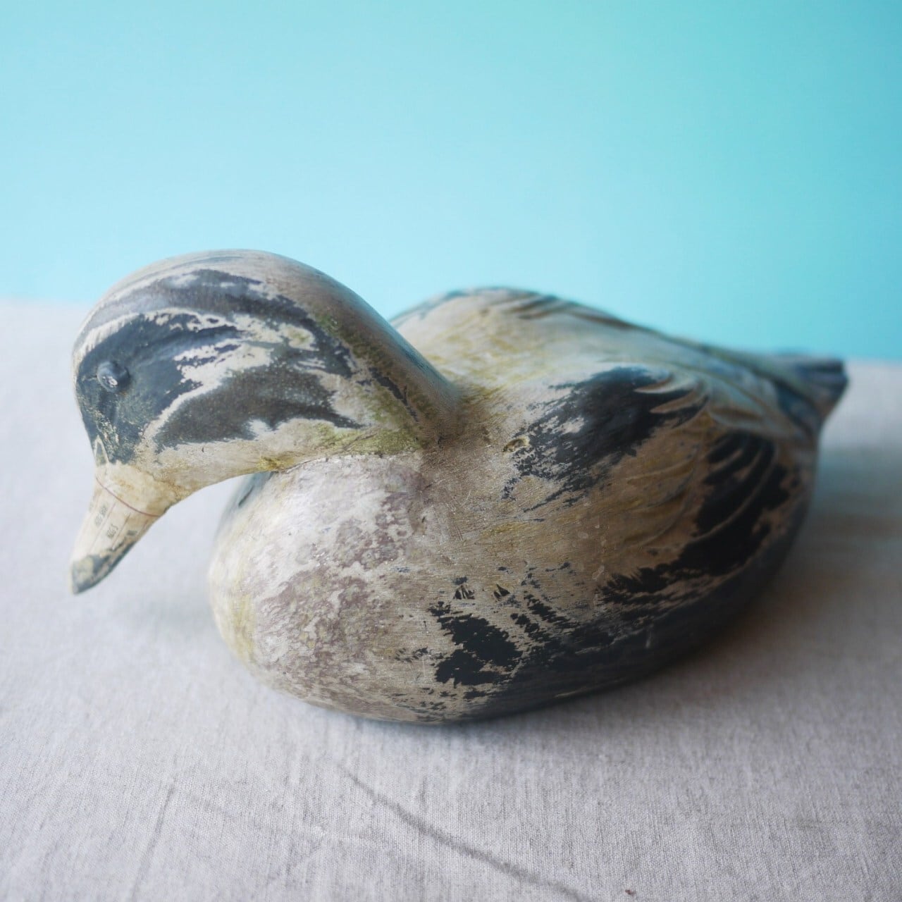 木製のデコイ「真鴨」。
