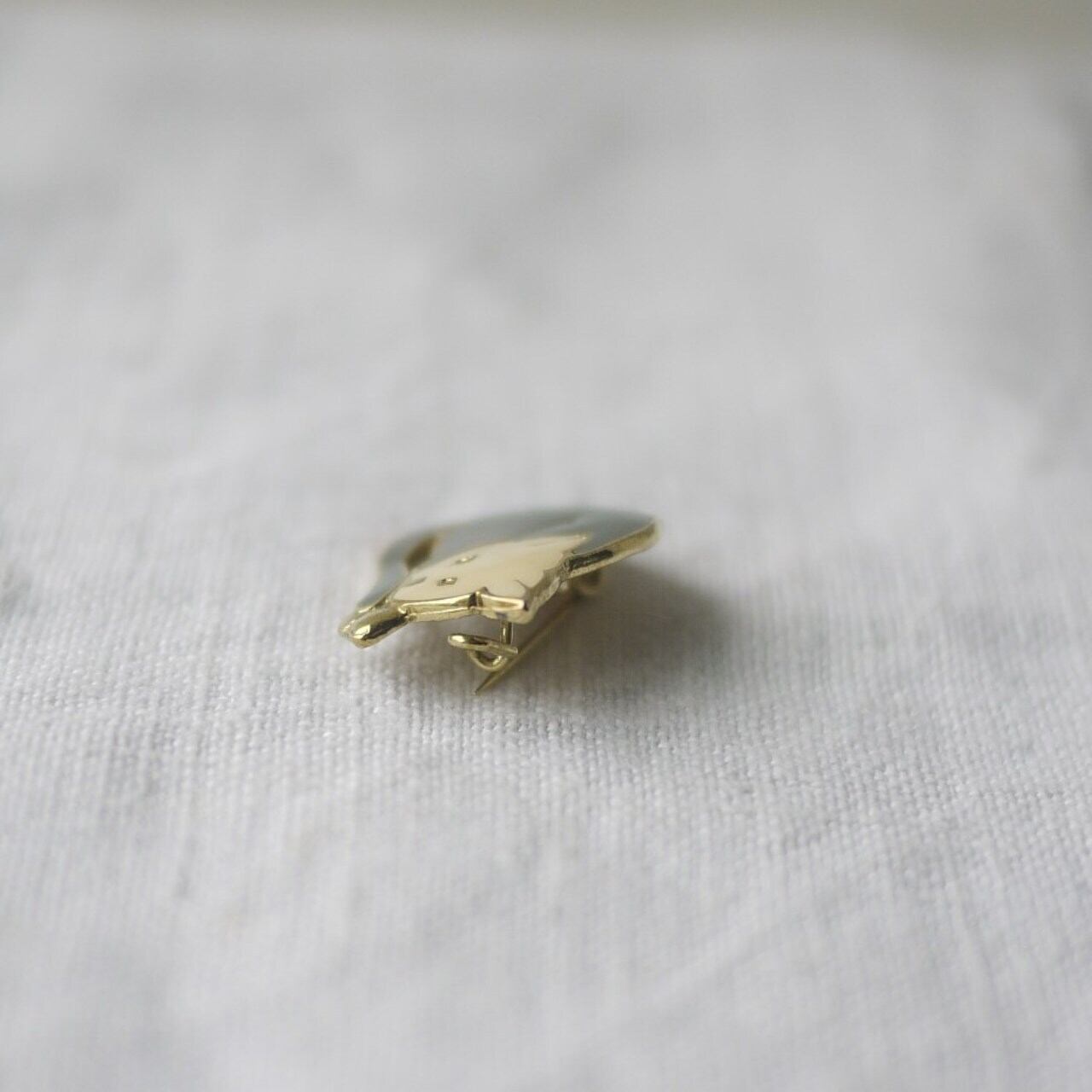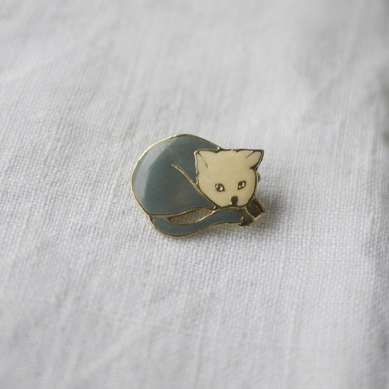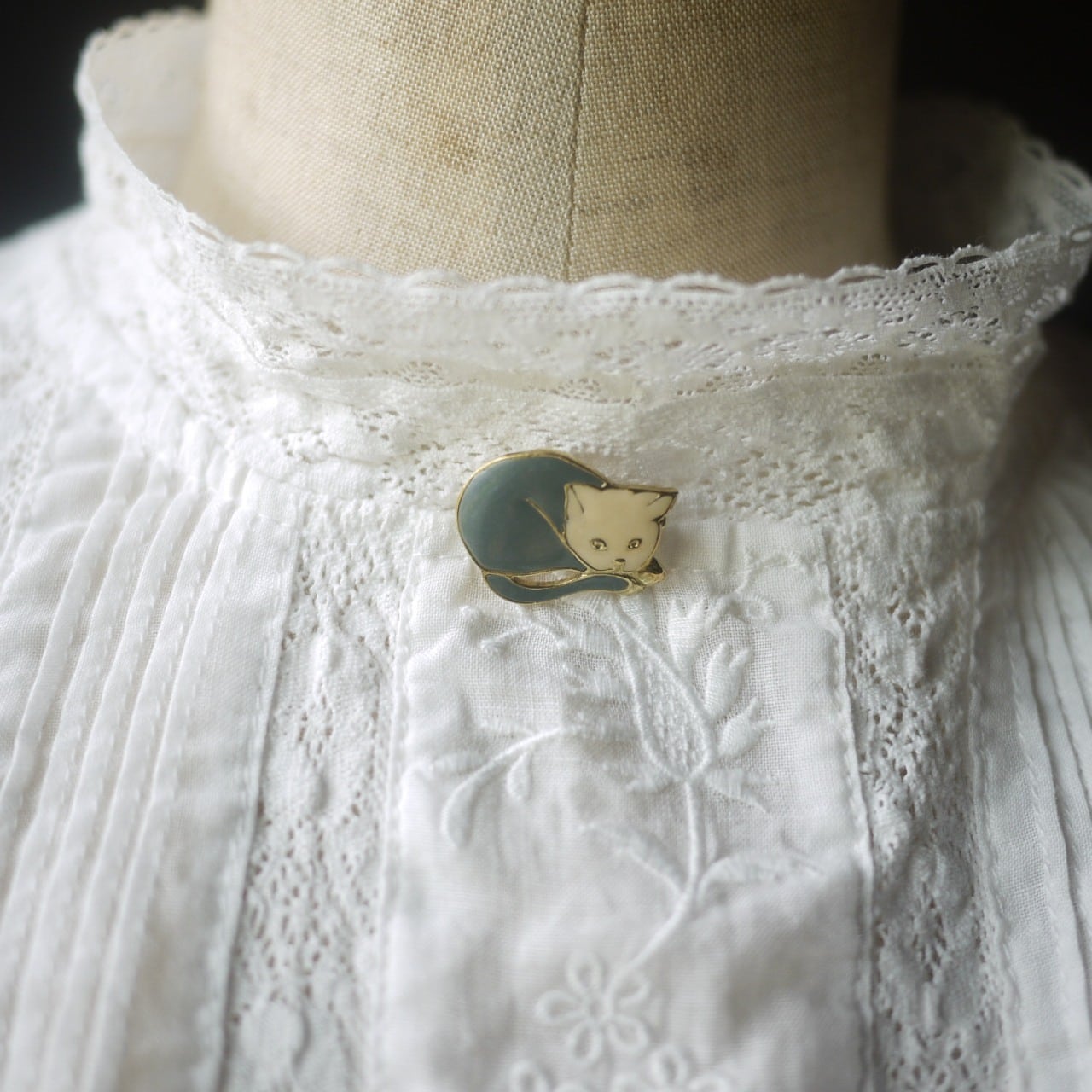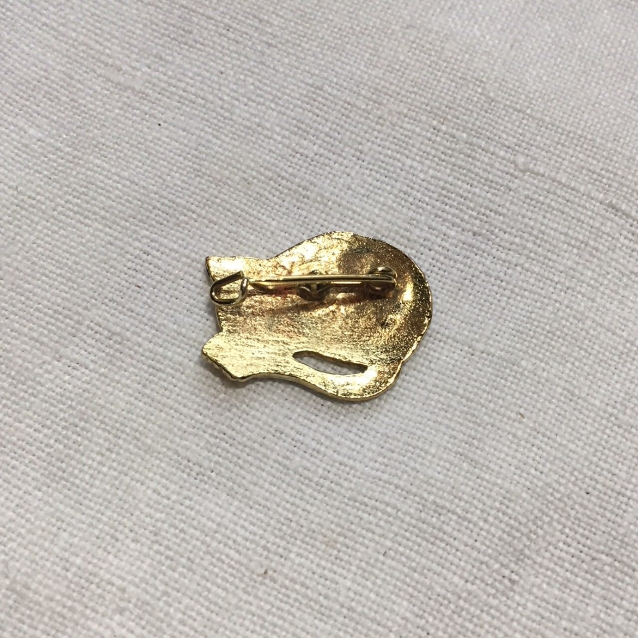 猫の頭部あたりの背面、ピンの端が丸環になっています。