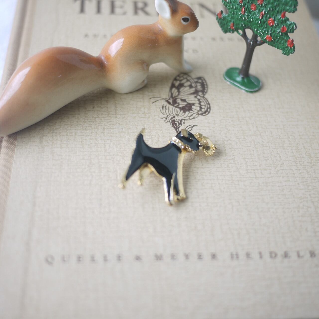 2匹の犬 エナメルブローチ フランス