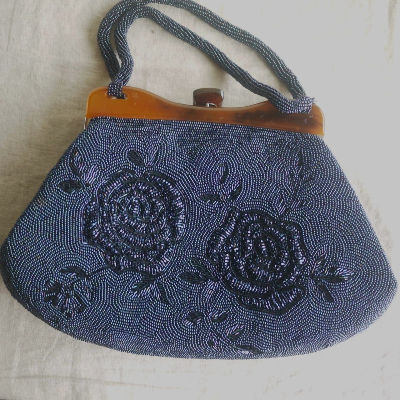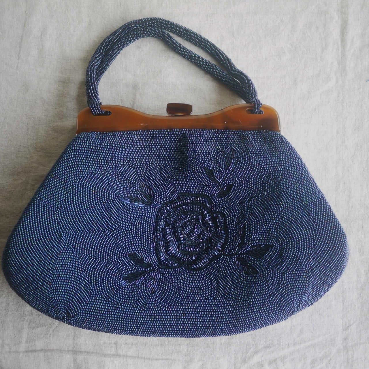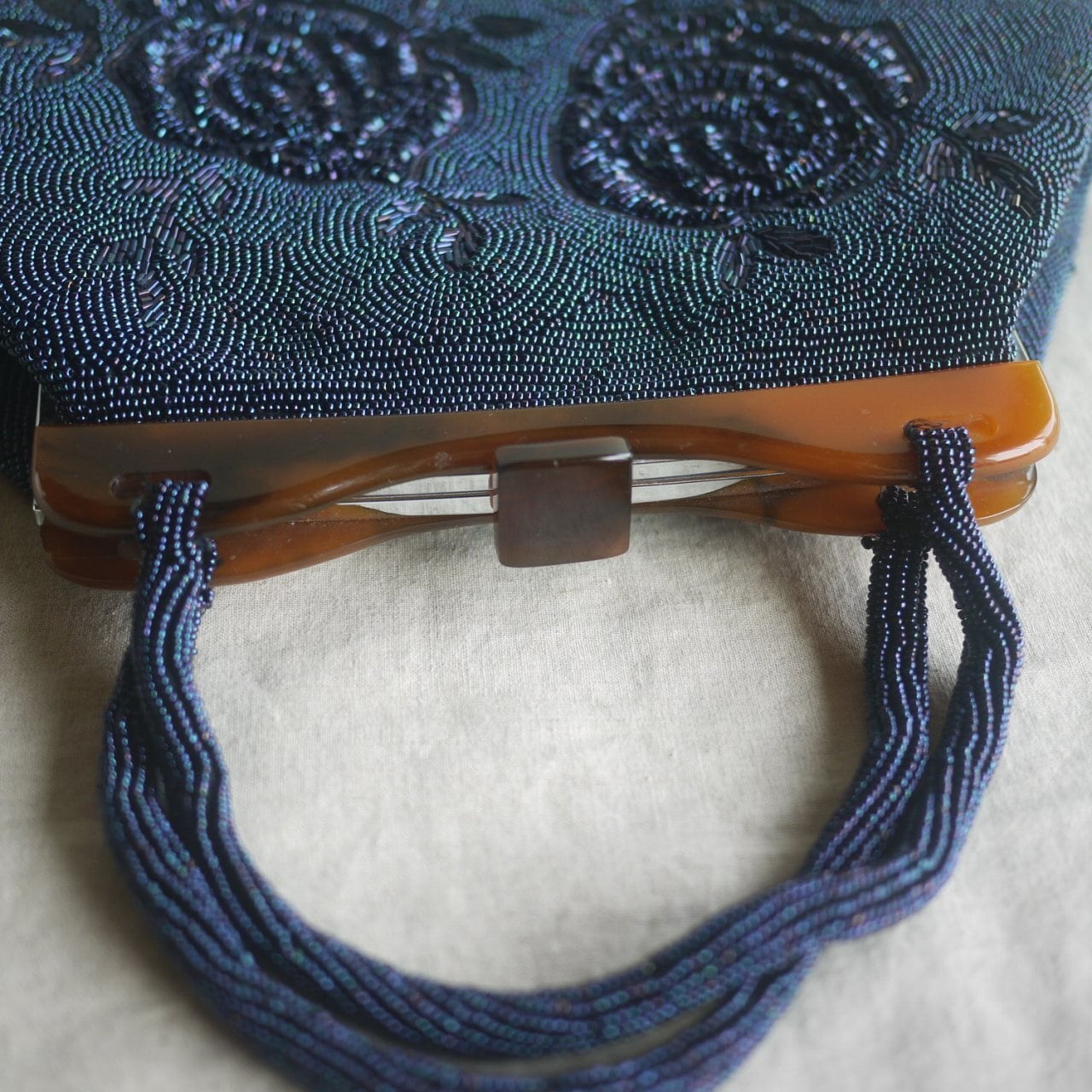 薔薇のハンドバッグ 総ビーズ レトロ 日本