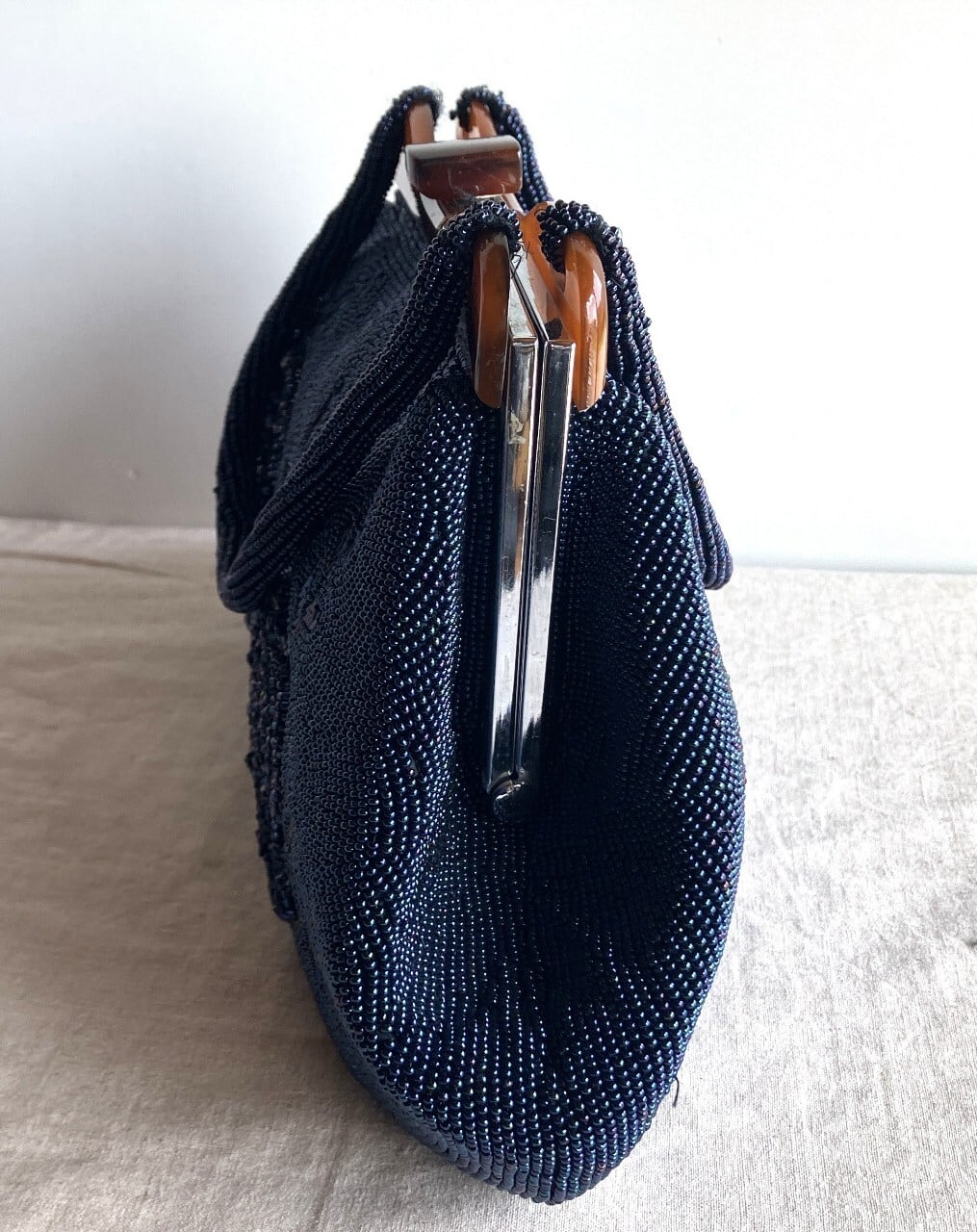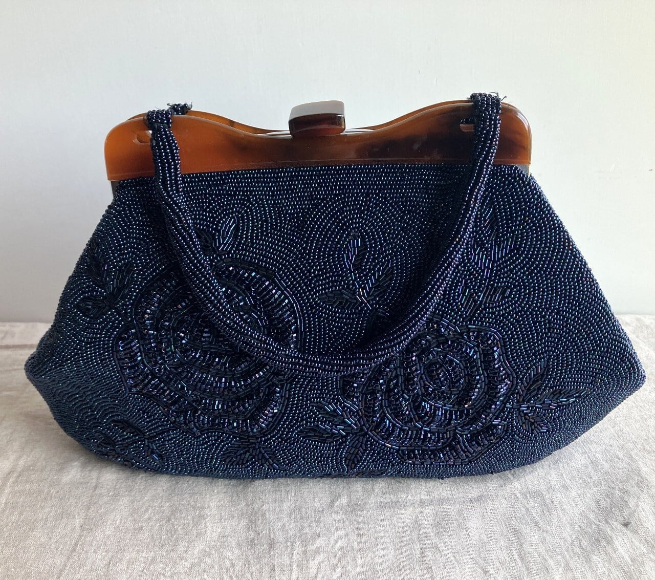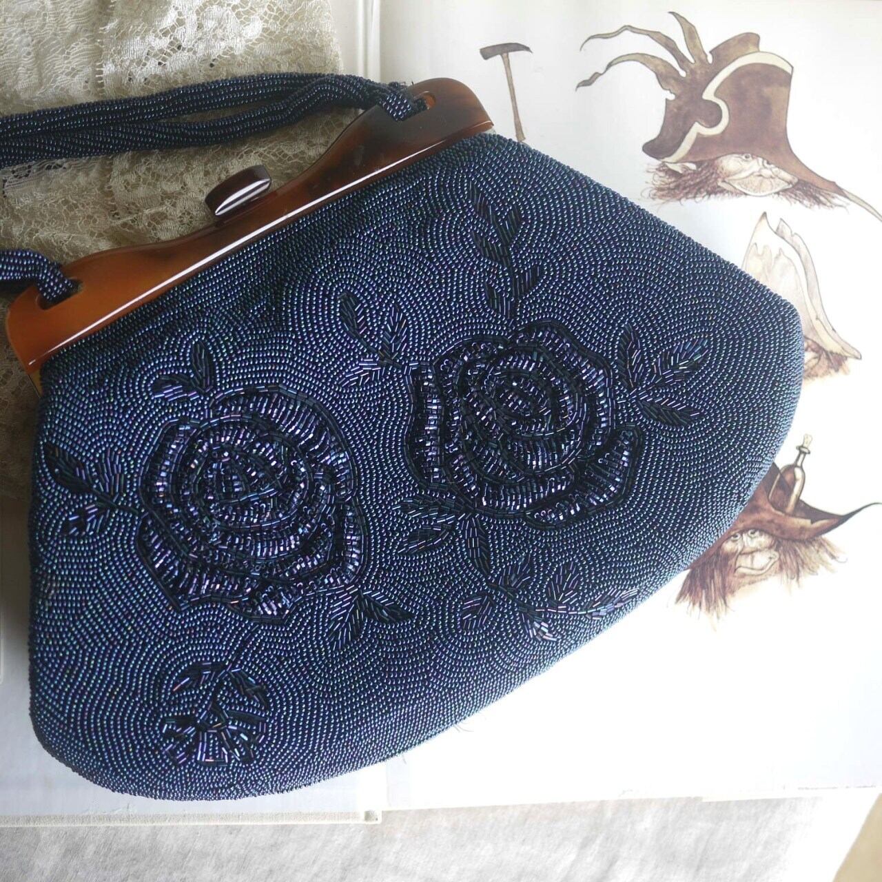 薔薇のハンドバッグ 総ビーズ レトロ 日本