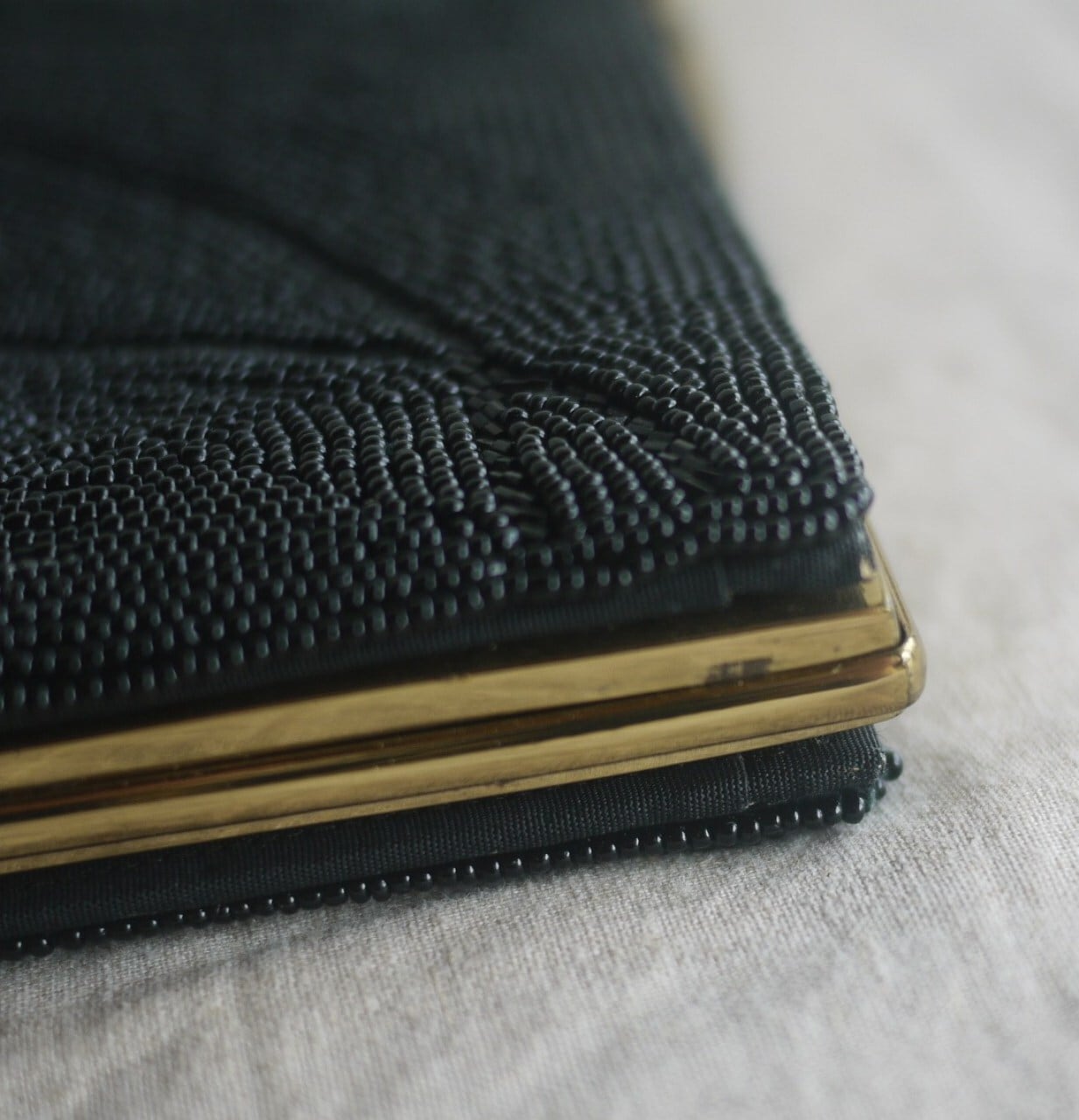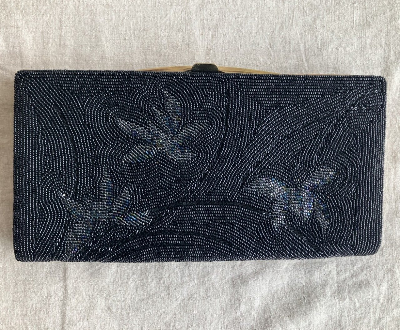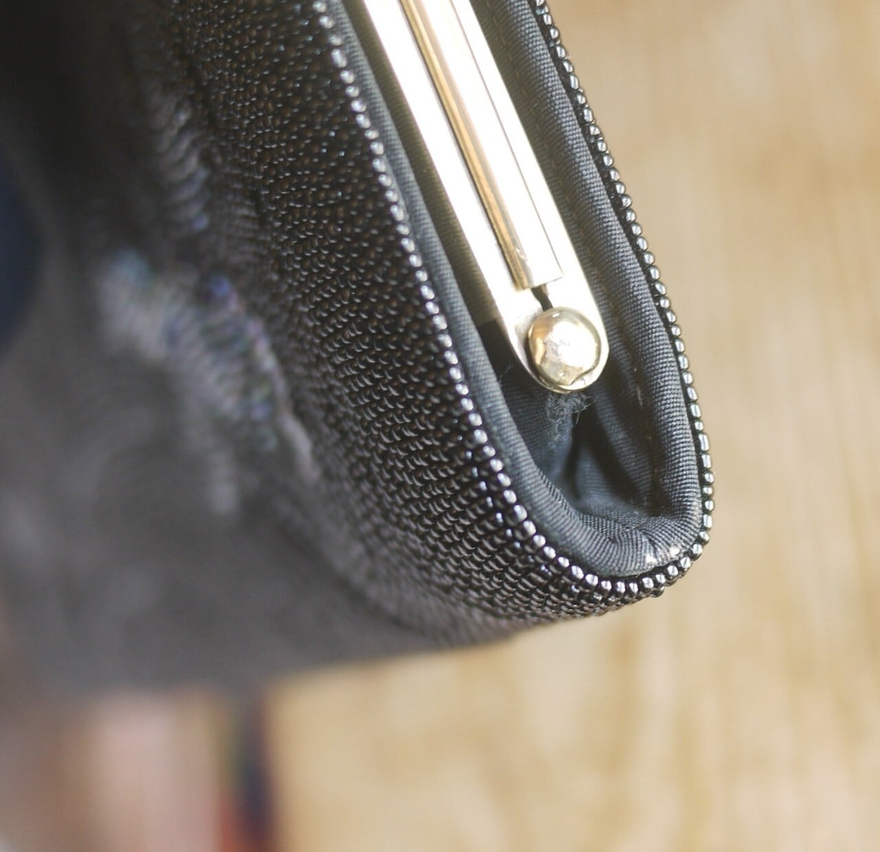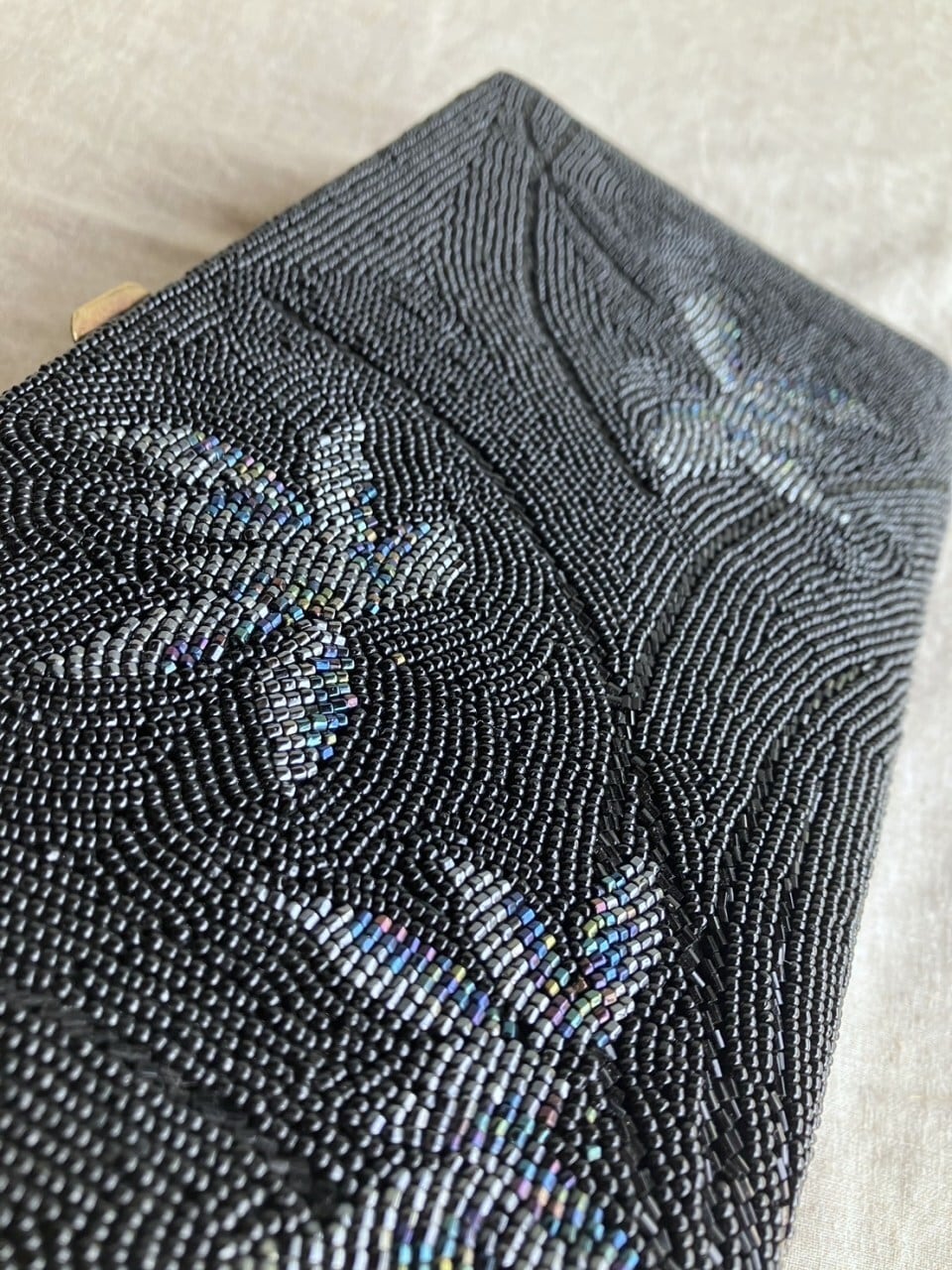 ずっしりと重さがあり、つややかなビーズを丁寧に刺繍。
