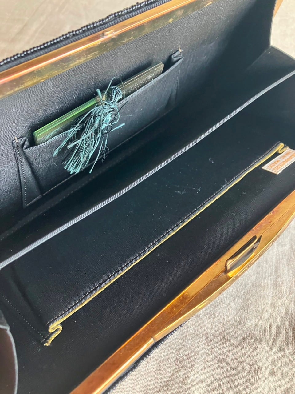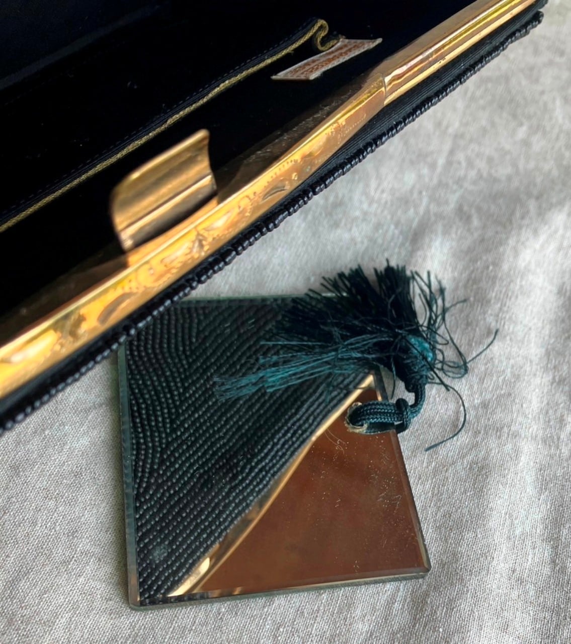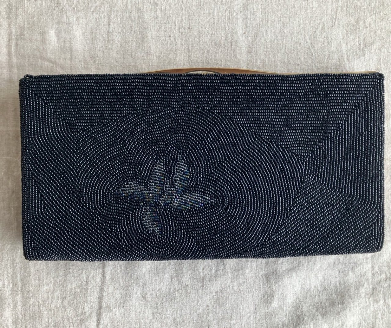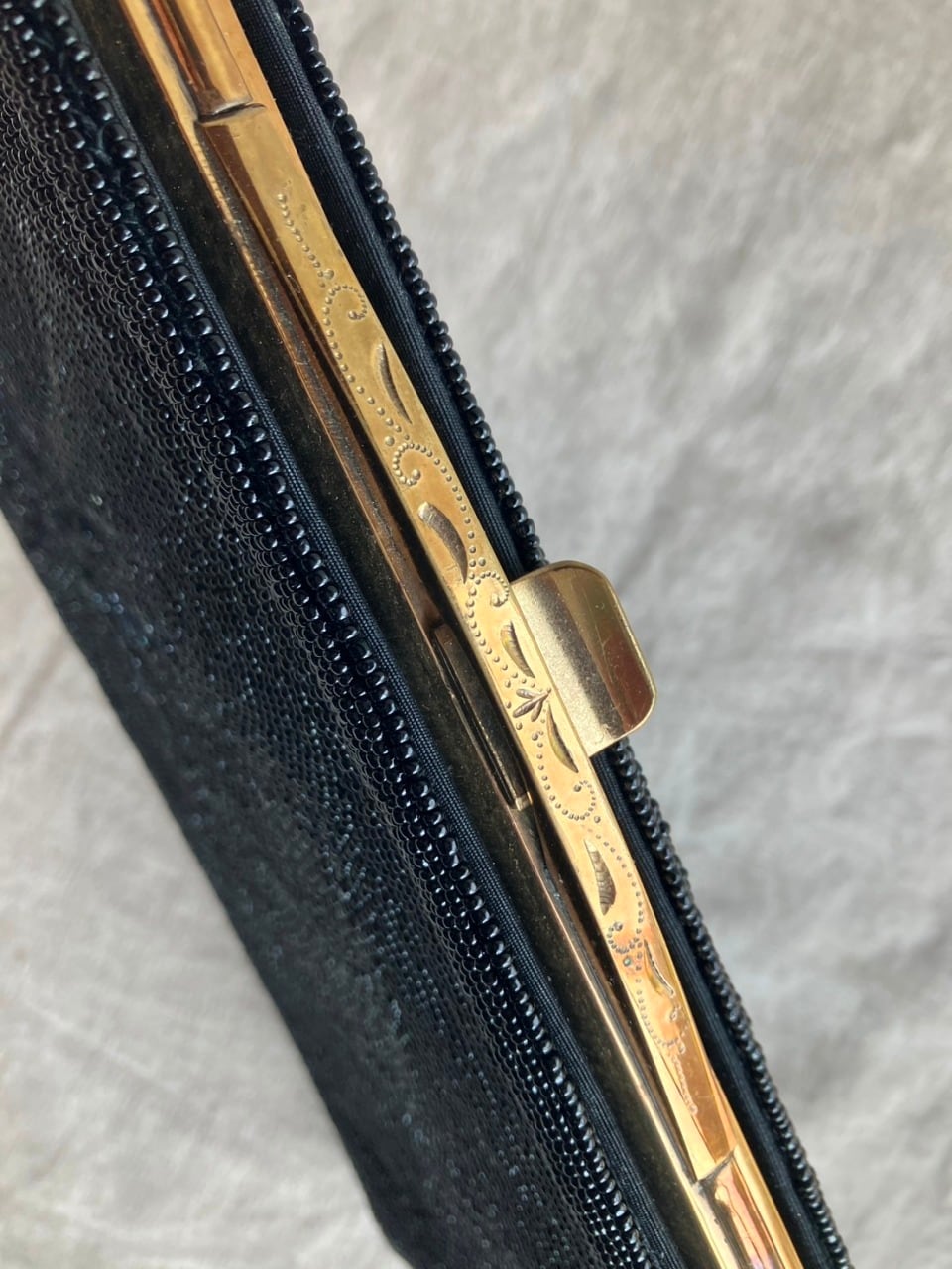 ずっしりと重さがあり、つややかなビーズを丁寧に刺繍。