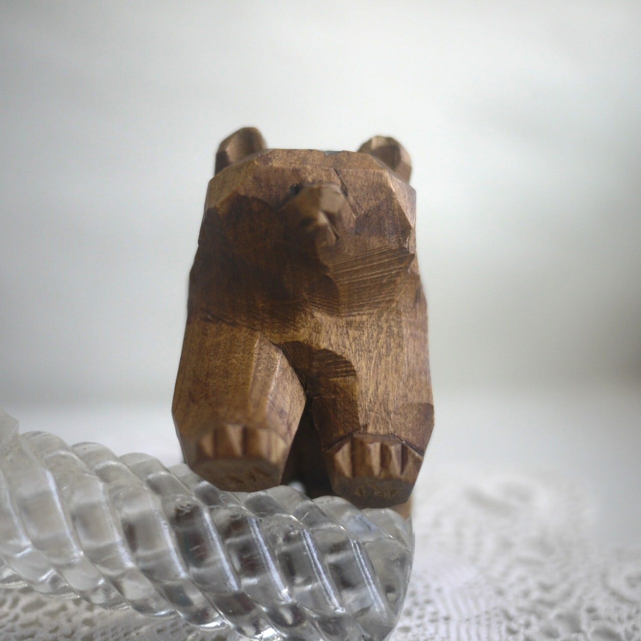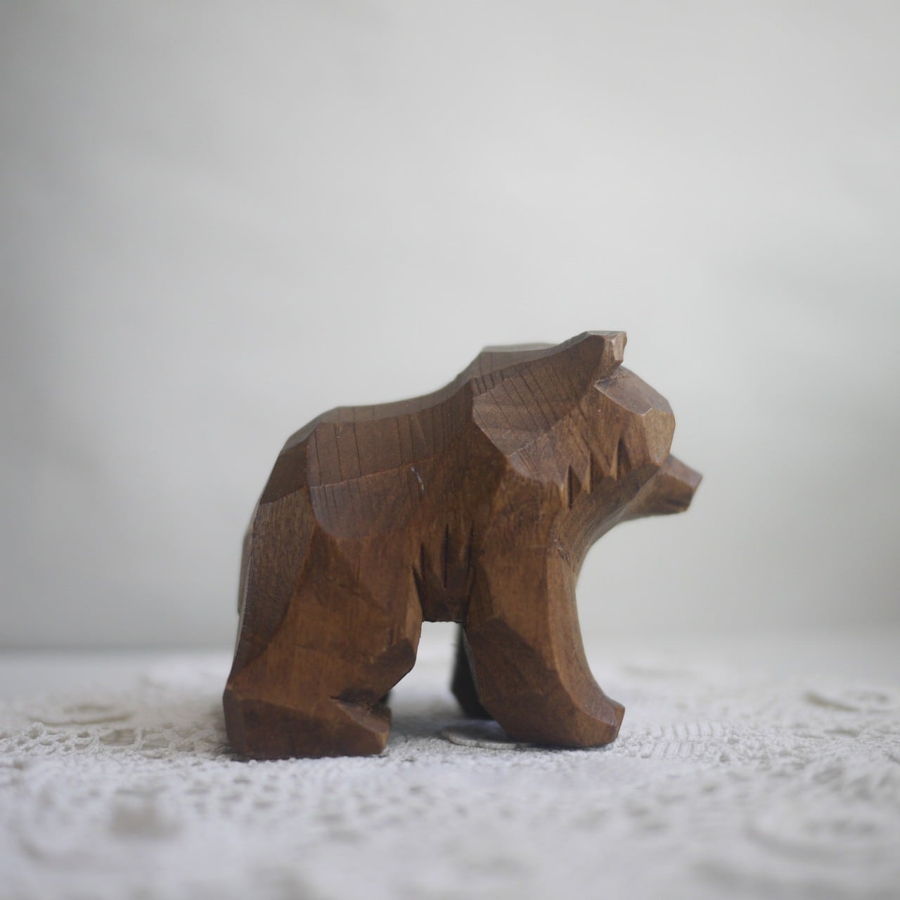子熊フィギュア ウッドカービング リンデンバウム 一刀彫