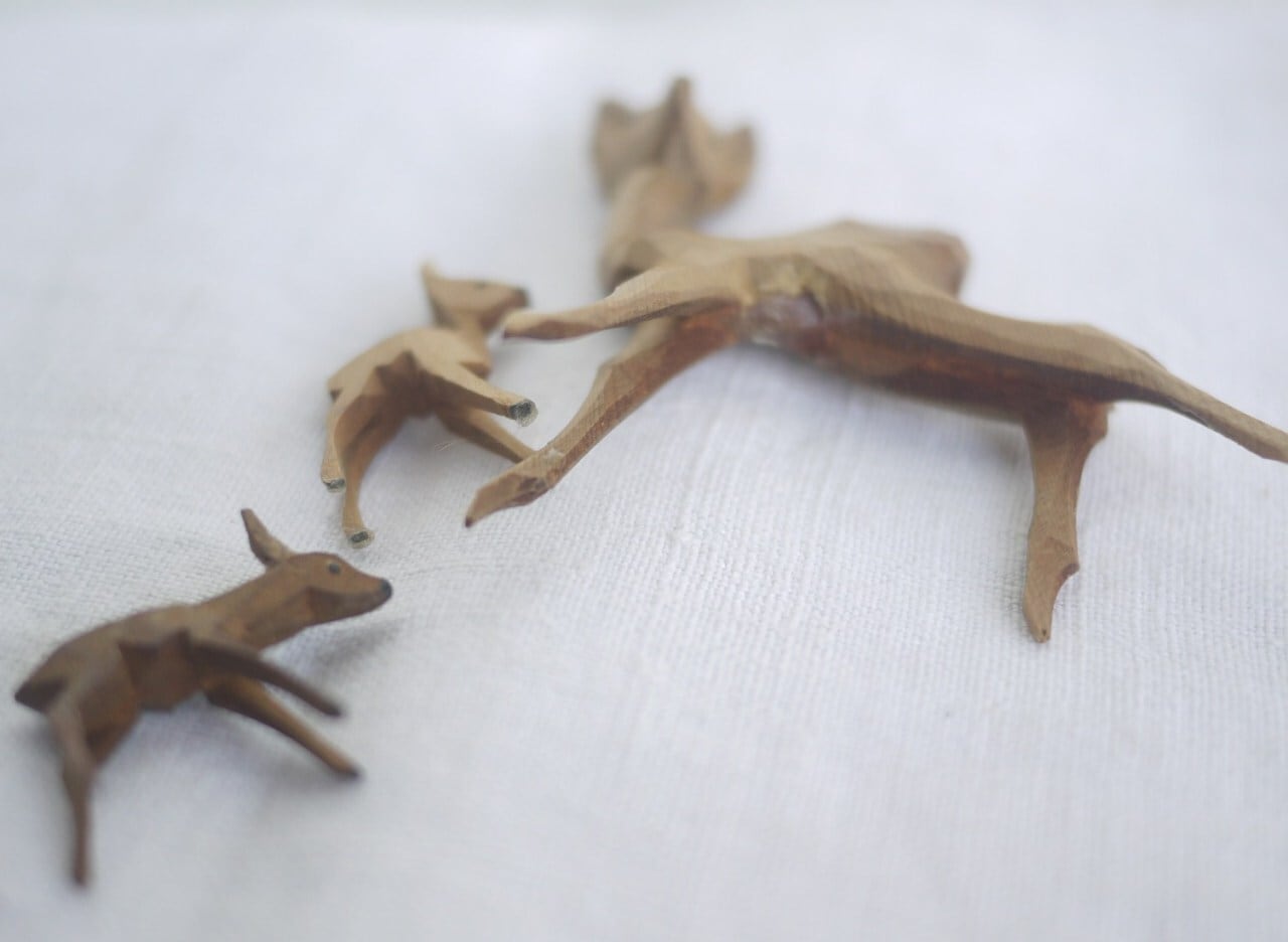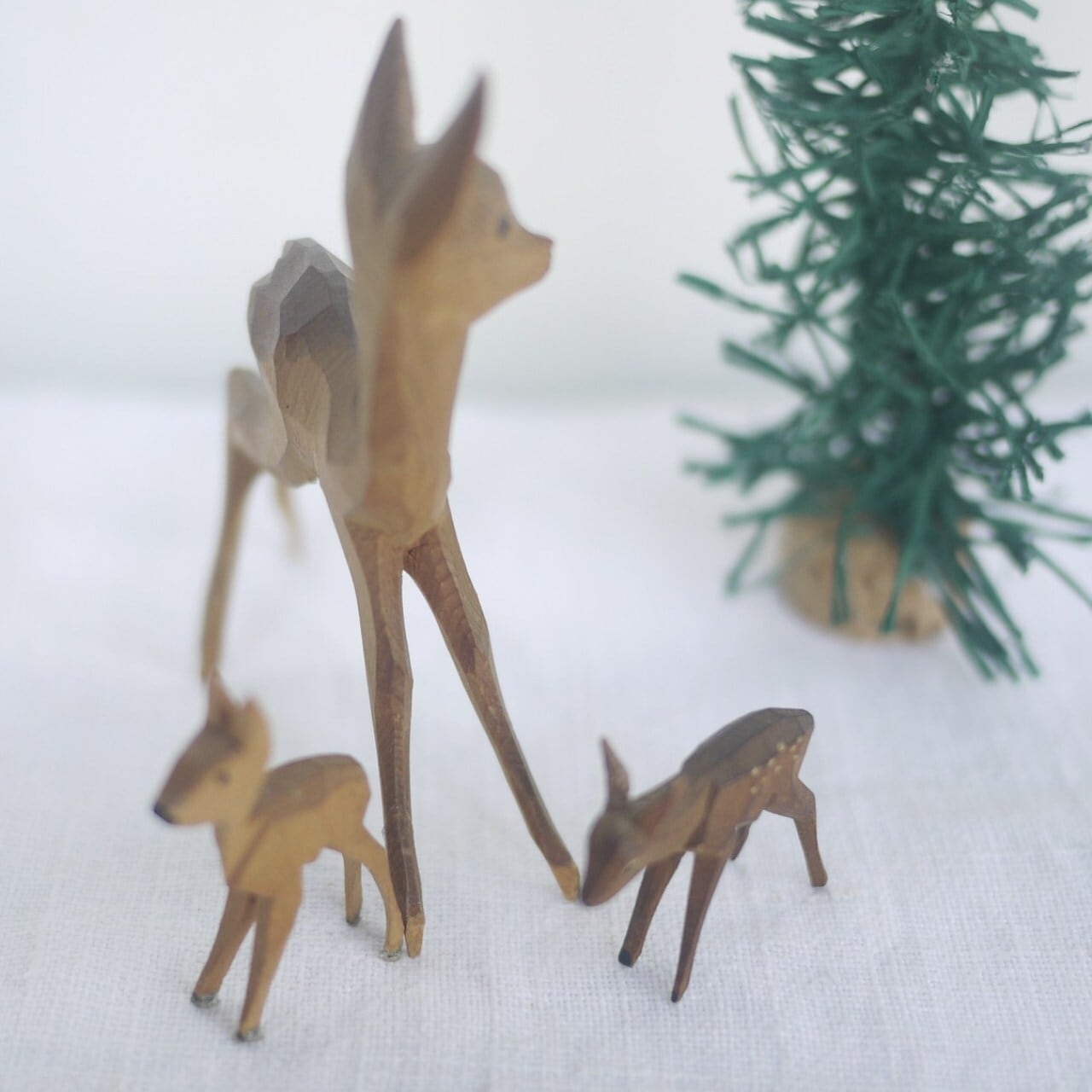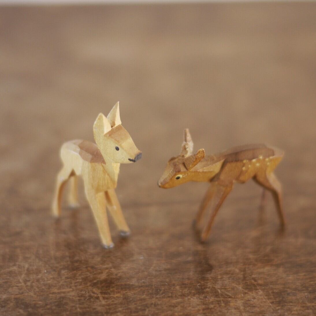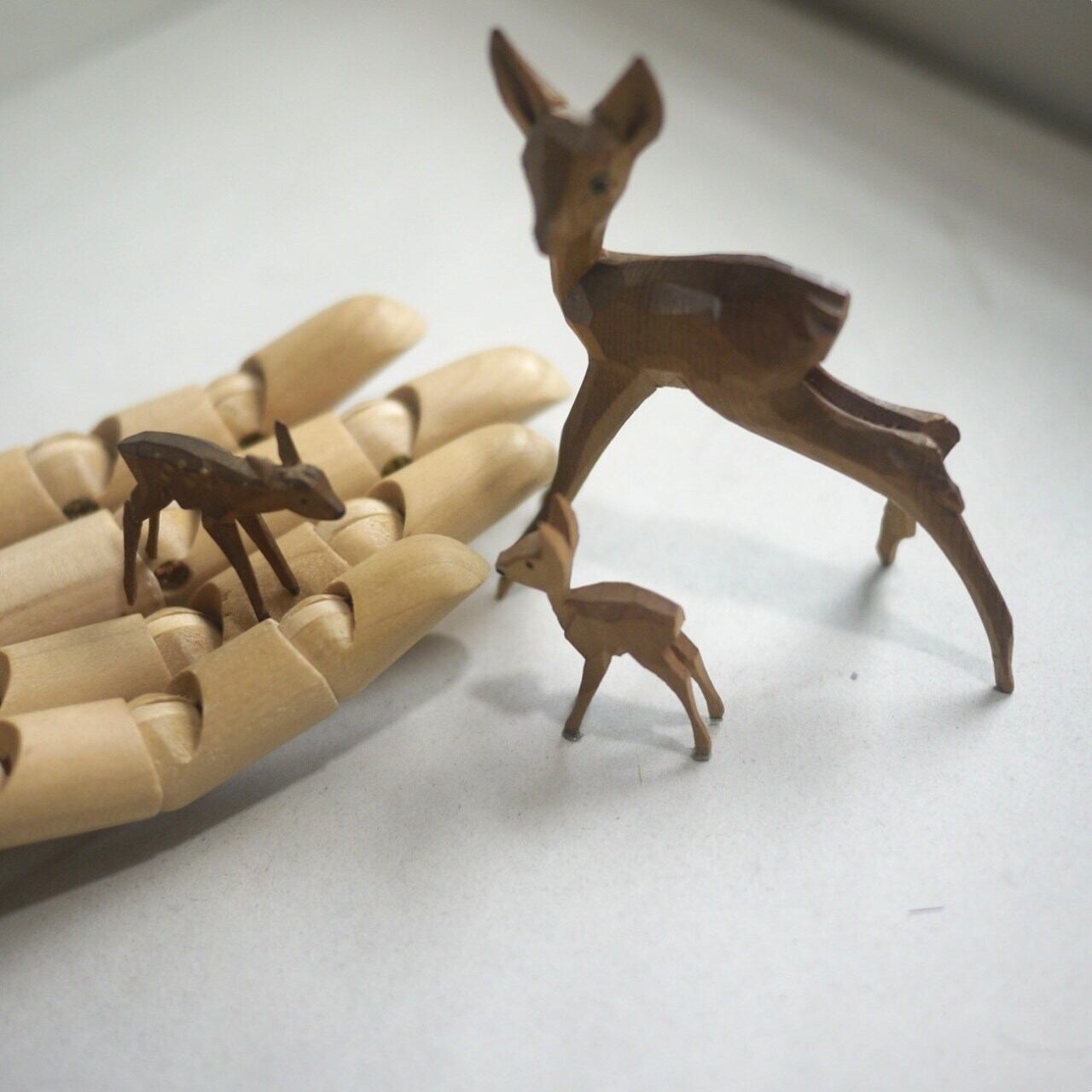 木彫り 鹿の親子 ウッドカービング 一刀彫