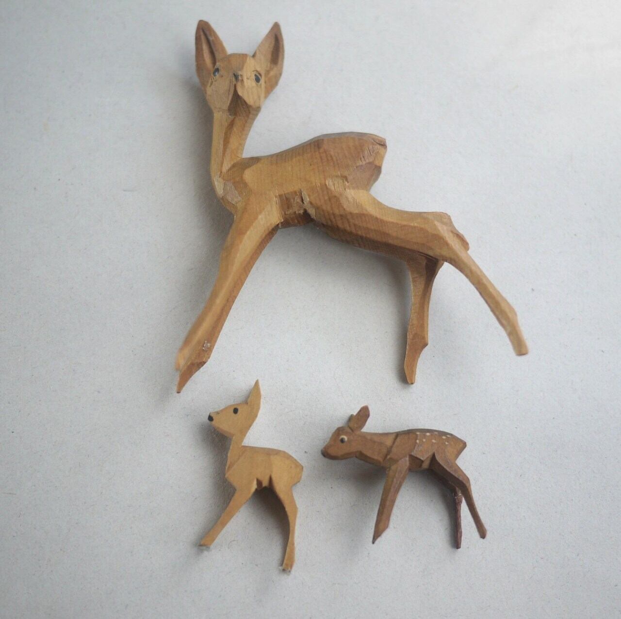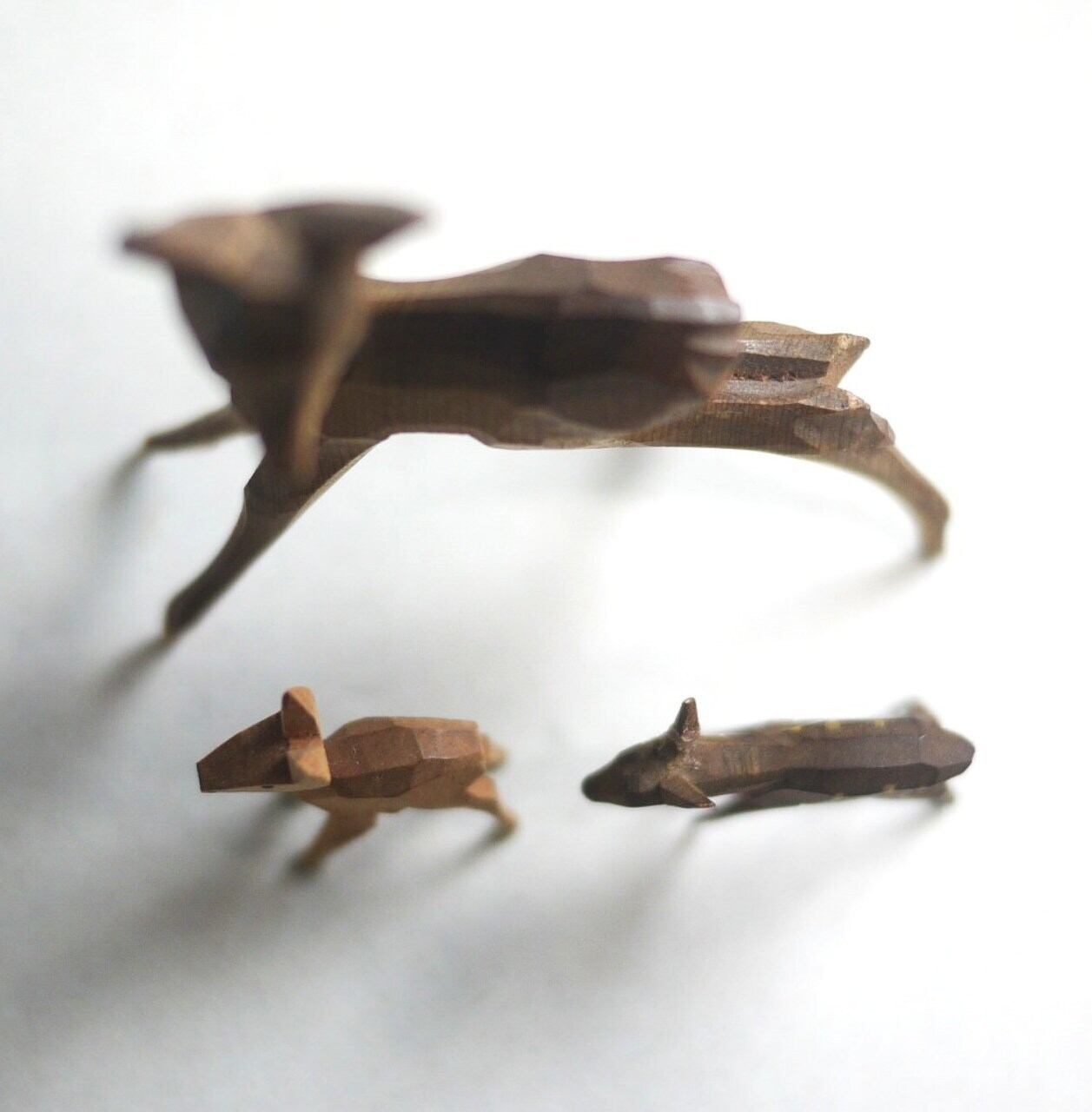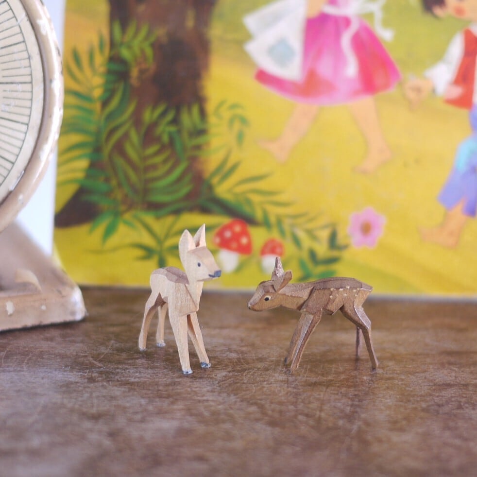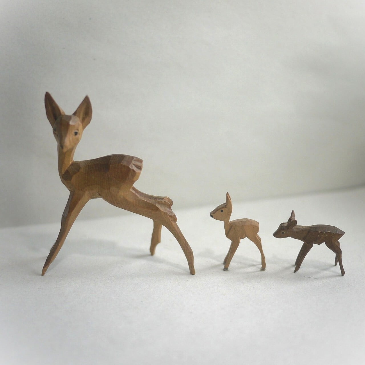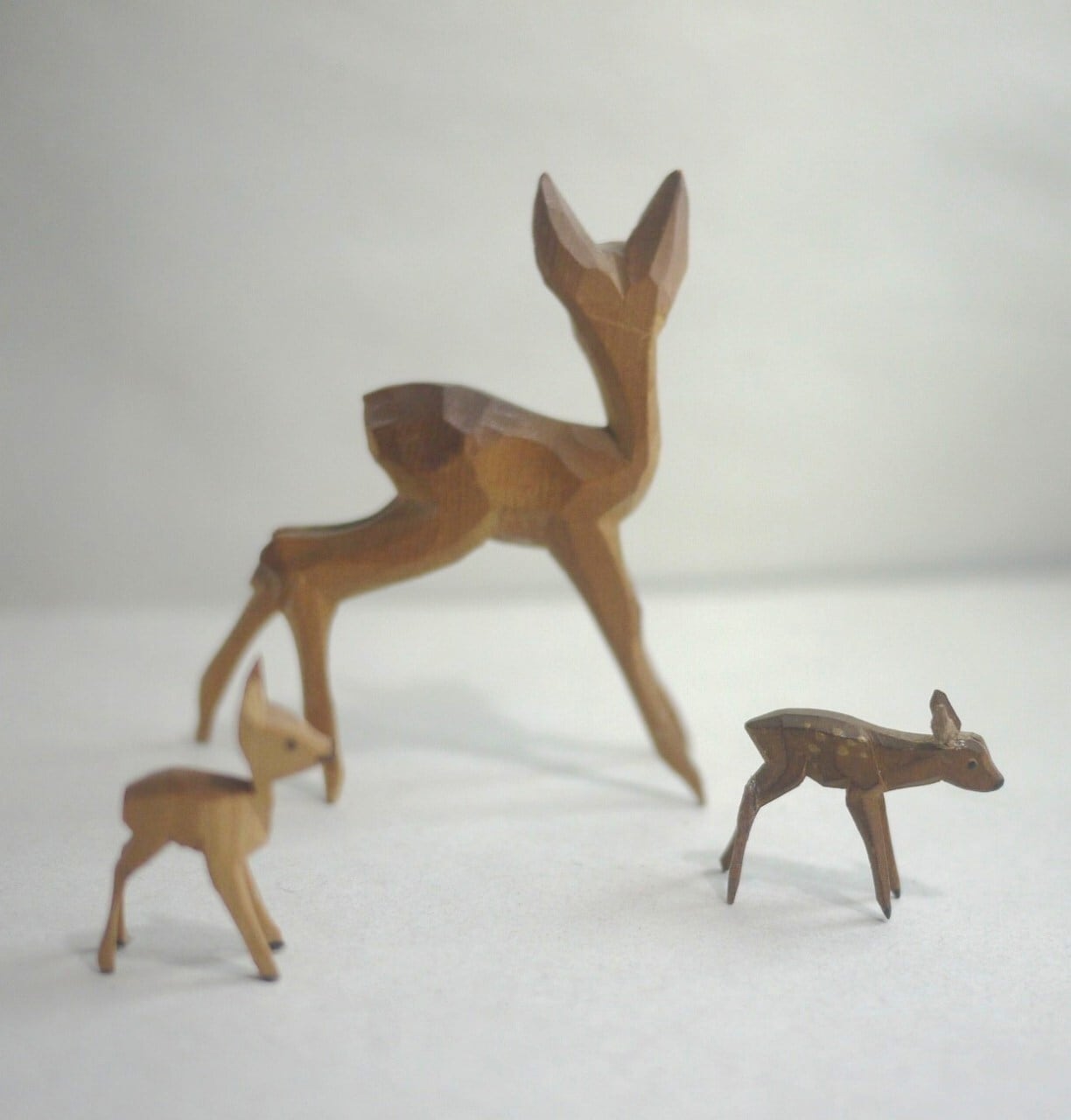 木彫り 鹿の親子 ウッドカービング 一刀彫