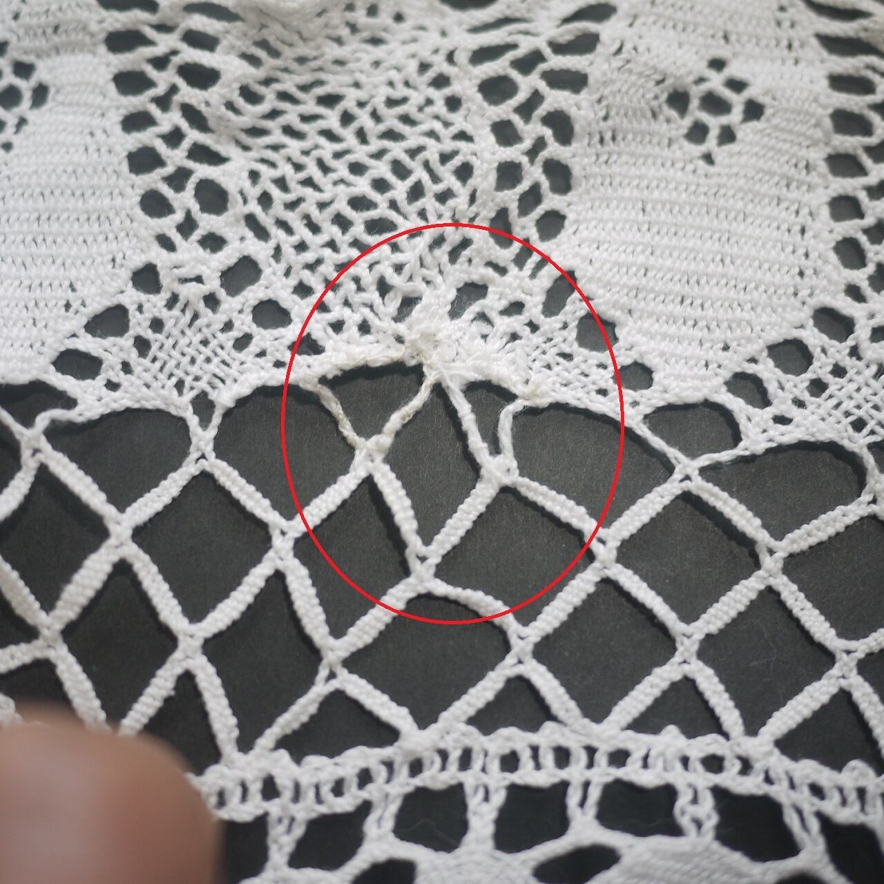 糸の始末の外れ、補修跡などが数か所あります。
