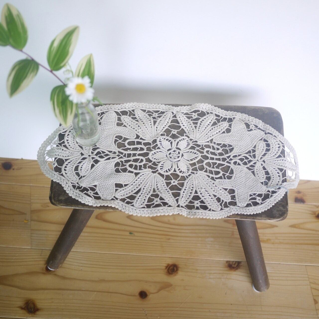 ルーマニアン・マクラメ ルーマニアレース ドイリーb 楕円