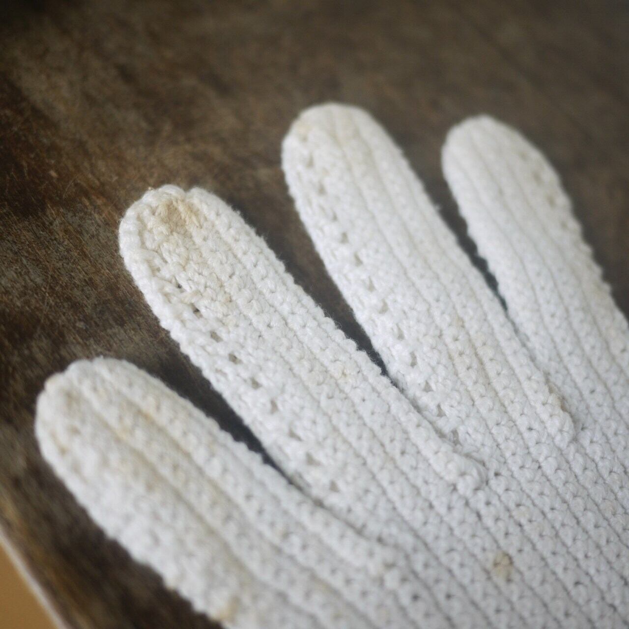 しっかりした編み地の手袋。