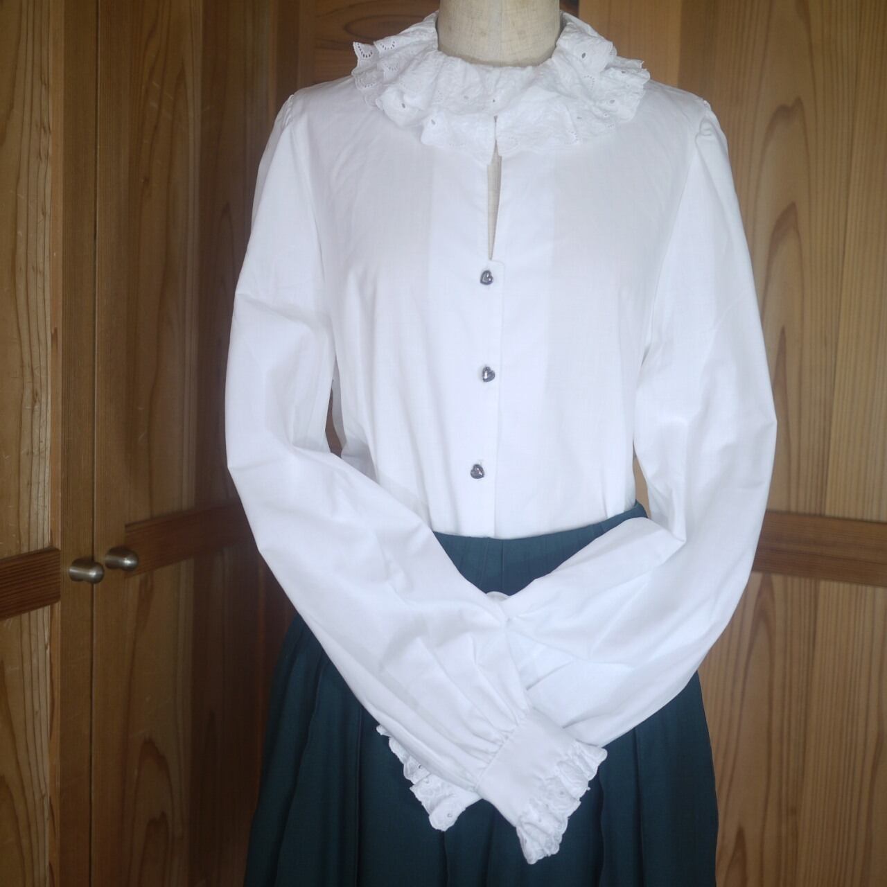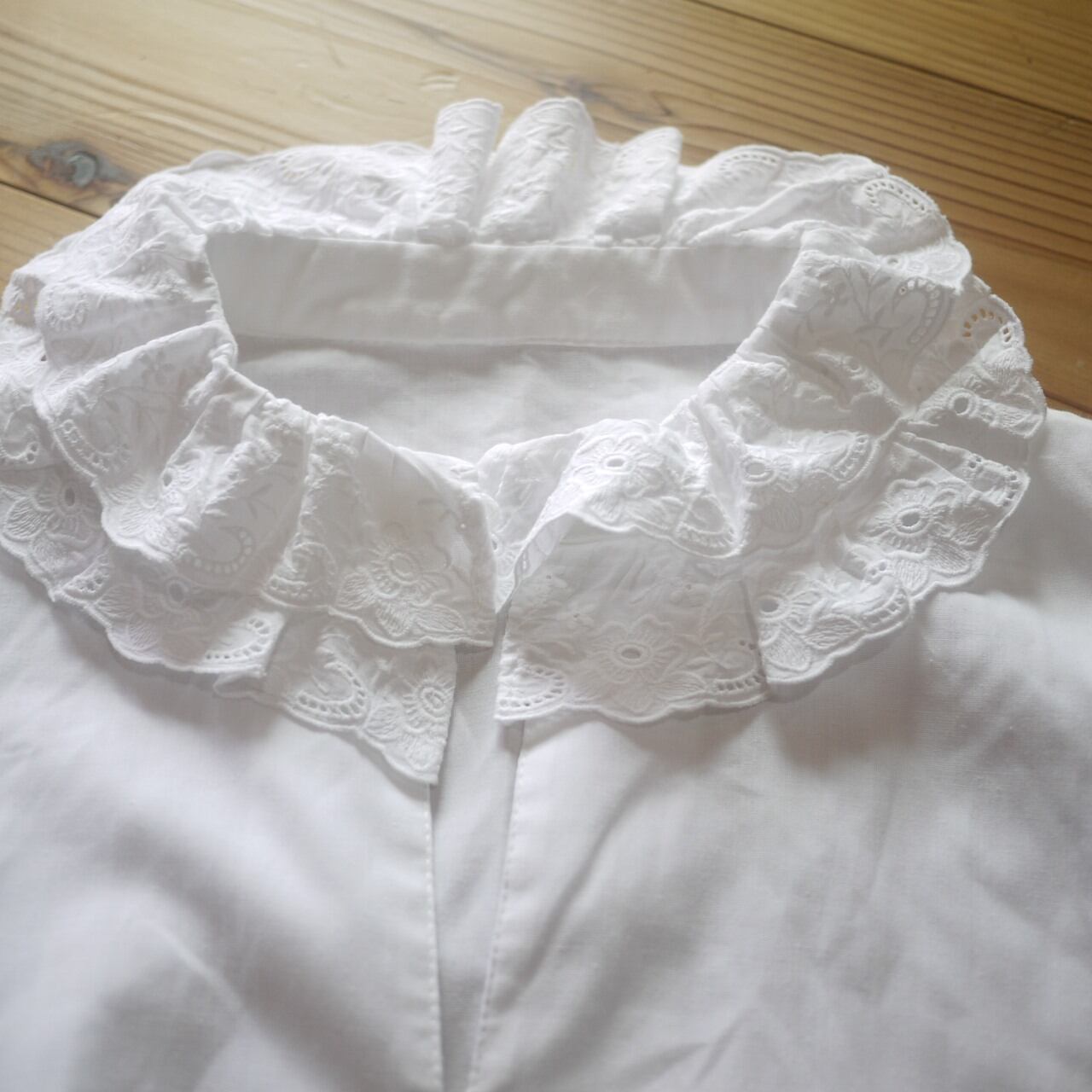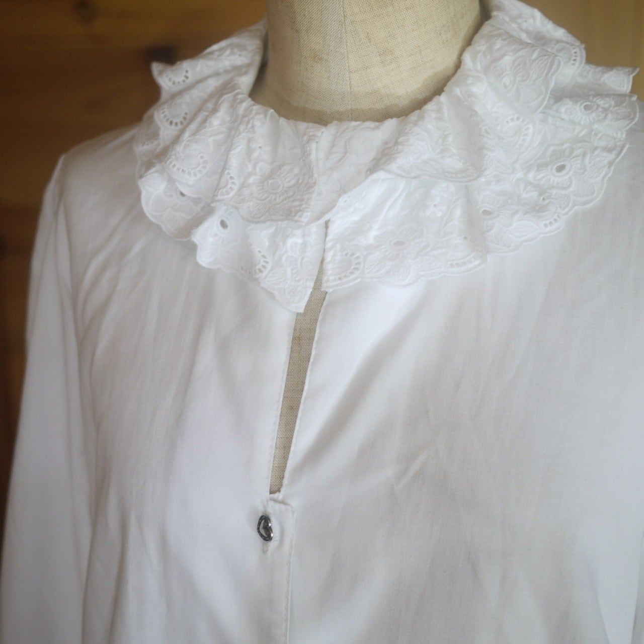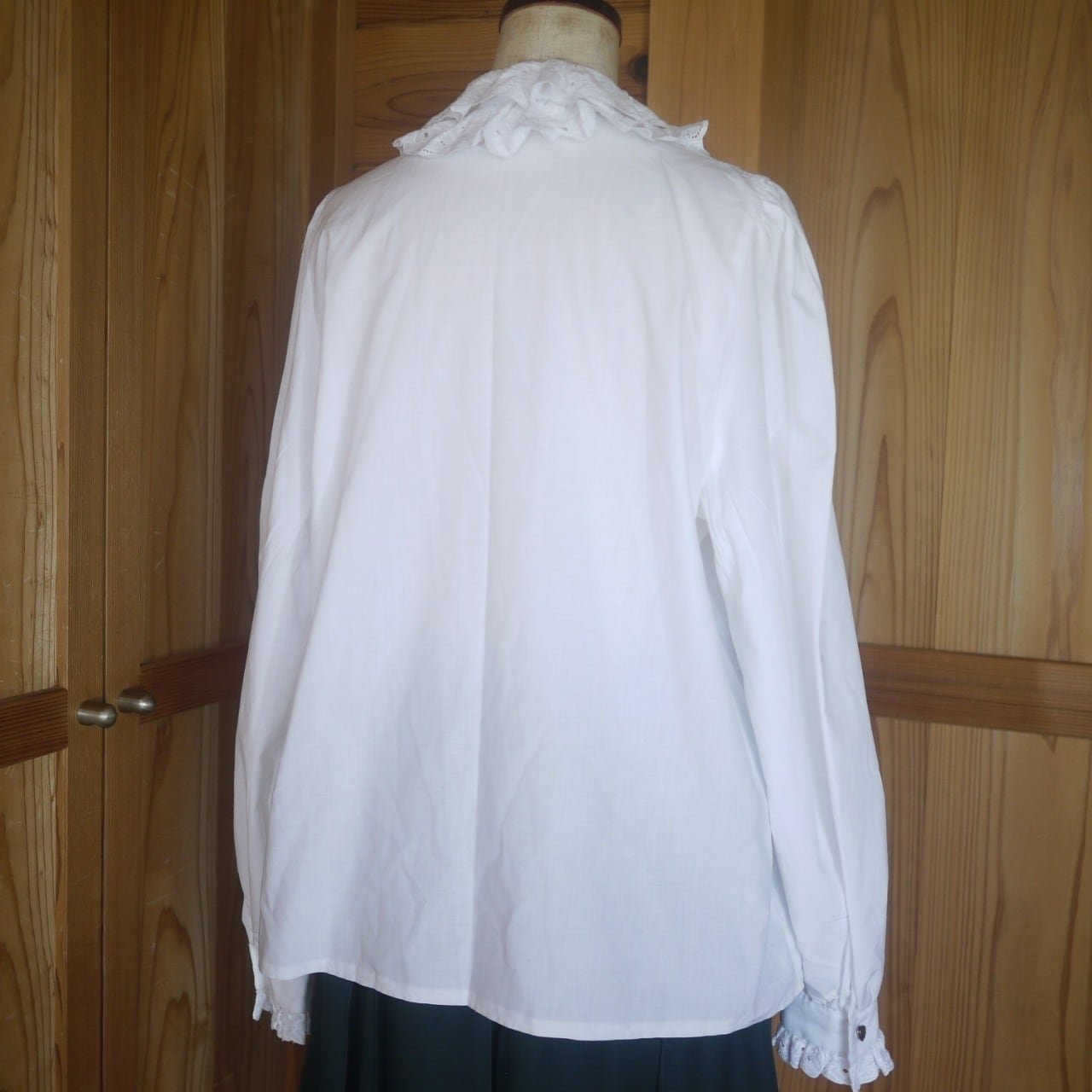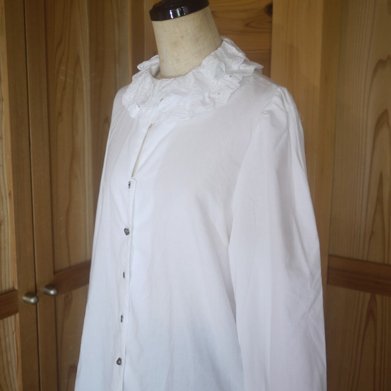 [レースのダブル襟 白のブラウス 長袖 ドイツ ]