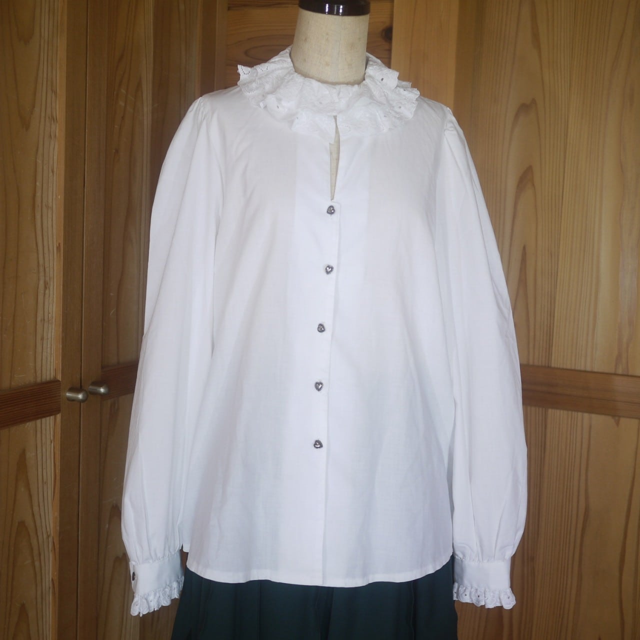 レースのダブル襟 白のブラウス 長袖 ドイツ