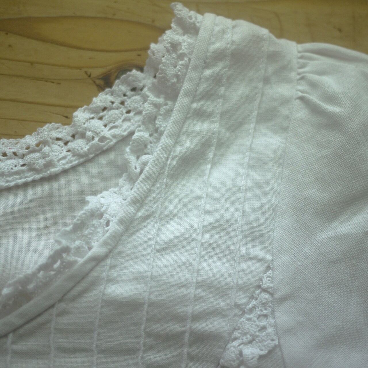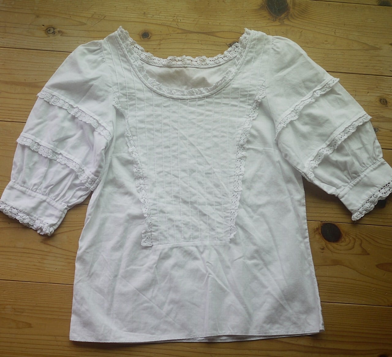 ピンタックとレース 白のブラウス 5分長袖 ドイツ