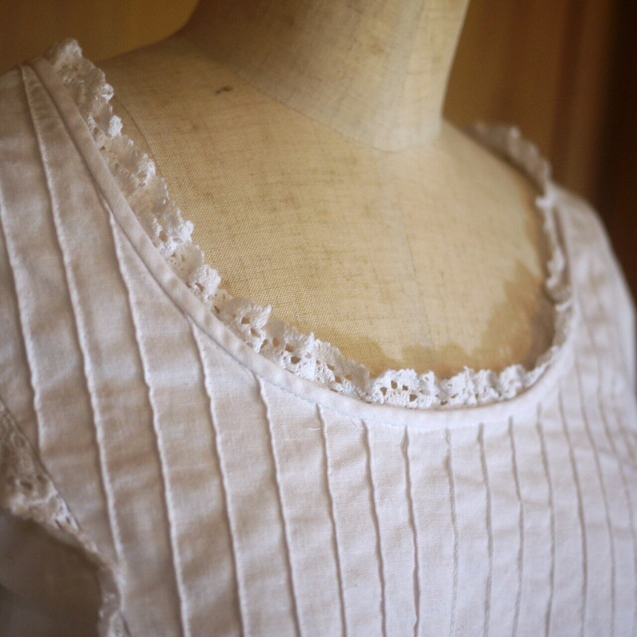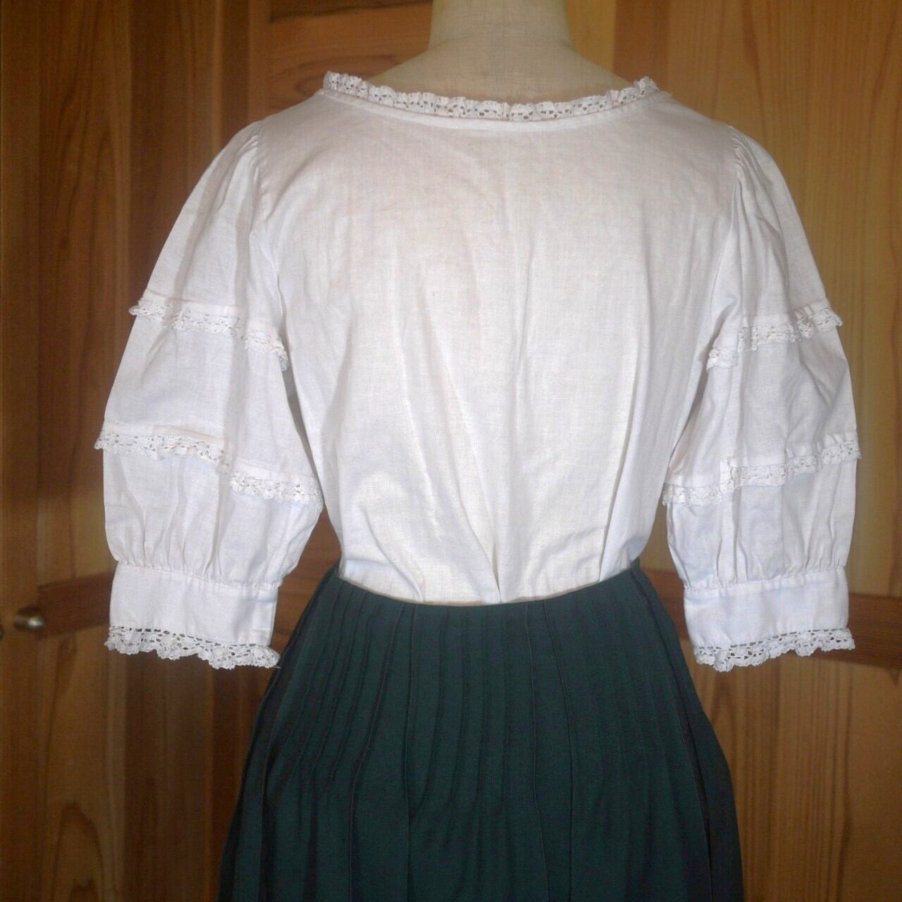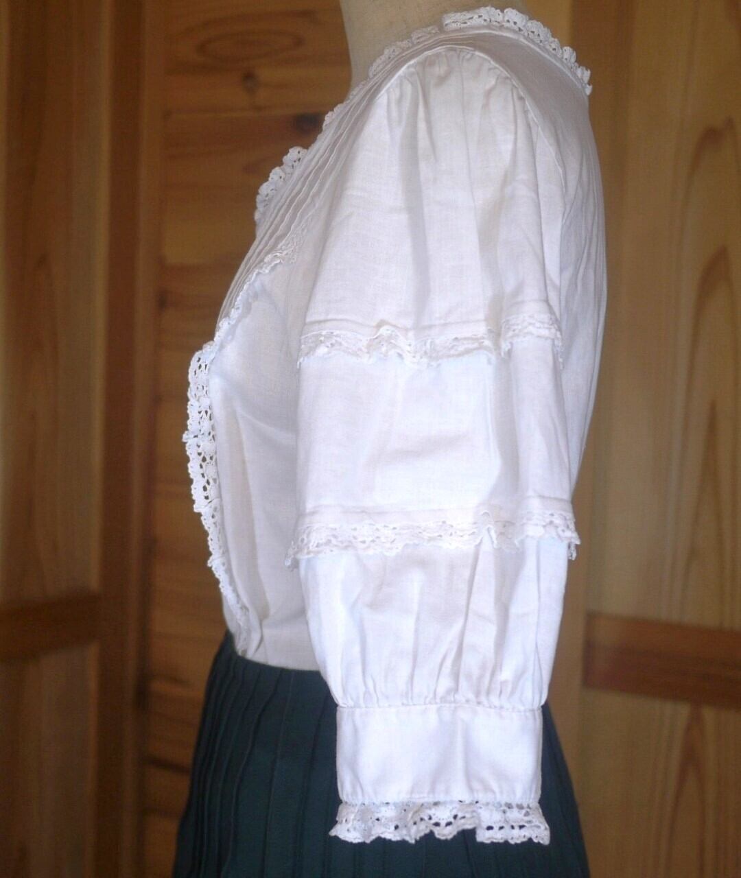 [ピンタックとレース 白のブラウス 5分長袖 ドイツ ]