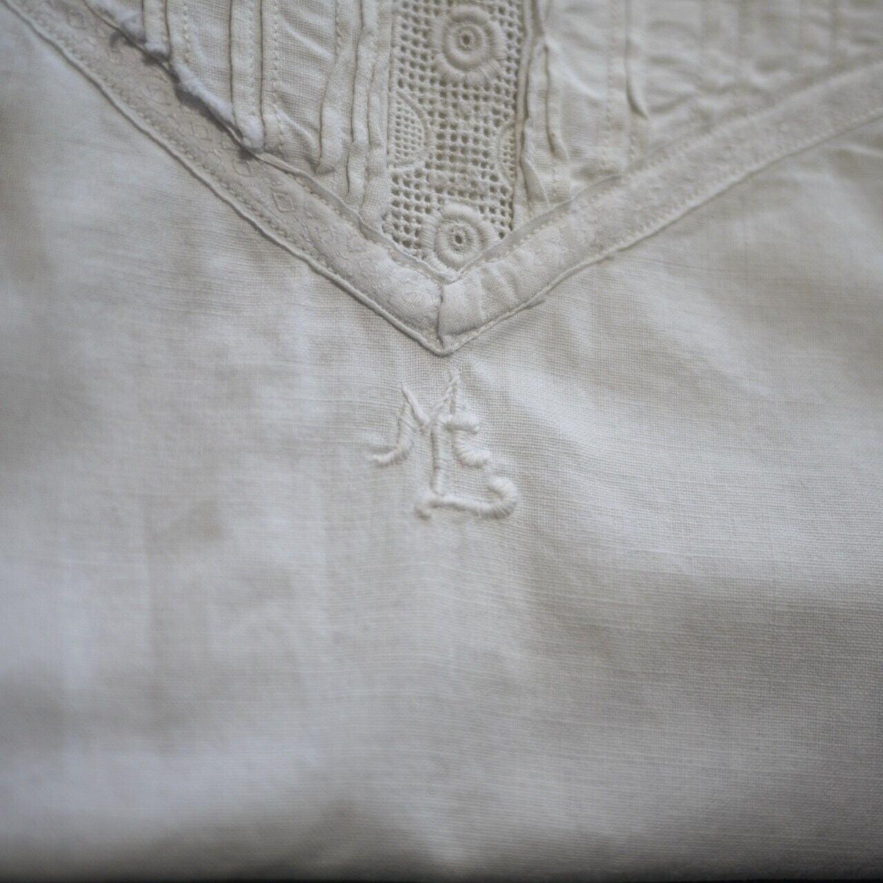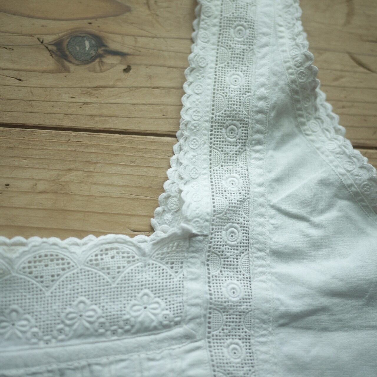ヴィンテージならではの細かい装飾の白いブラウス。
