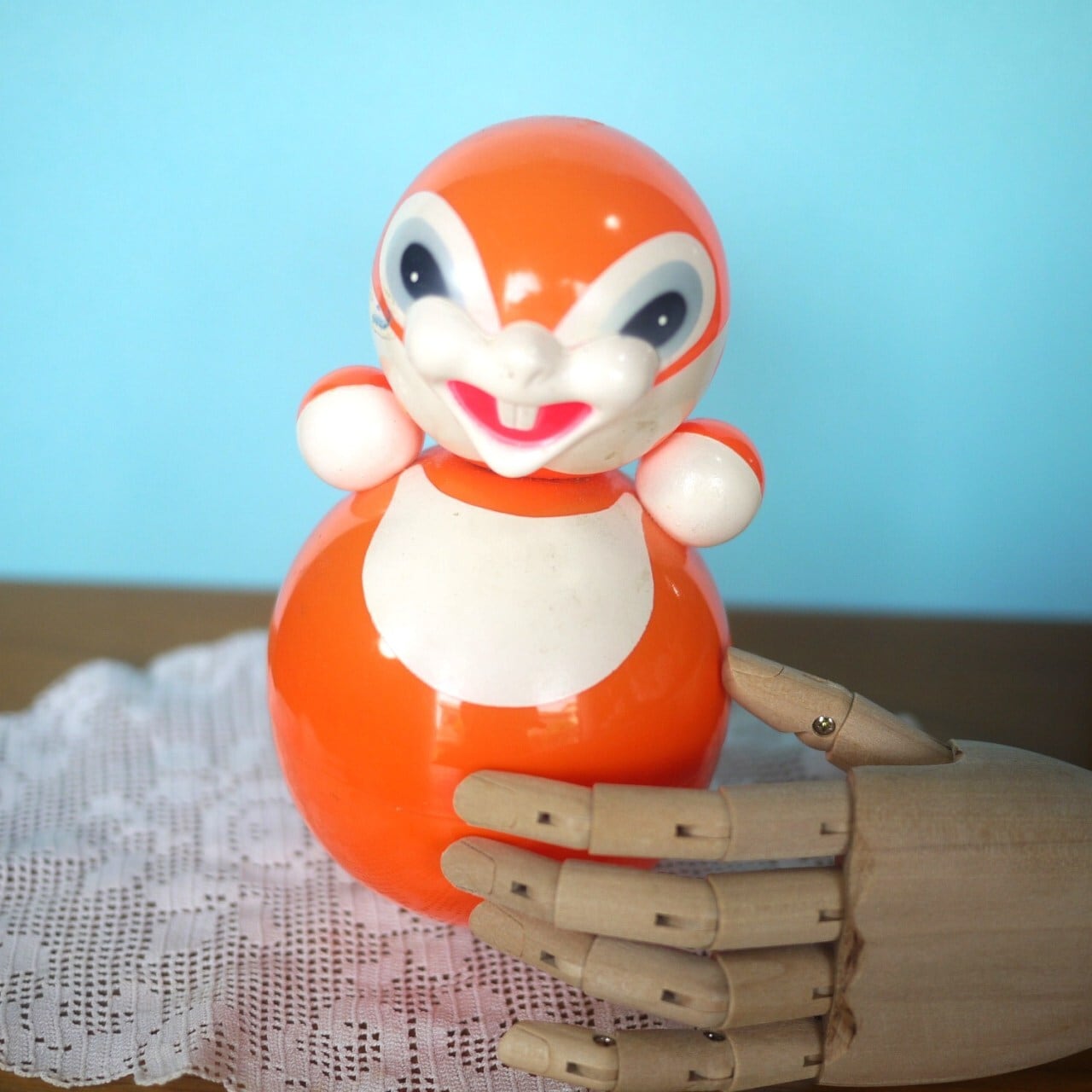 ゆっくり揺れながら元の直立の状態にもどるレトロな玩具です。