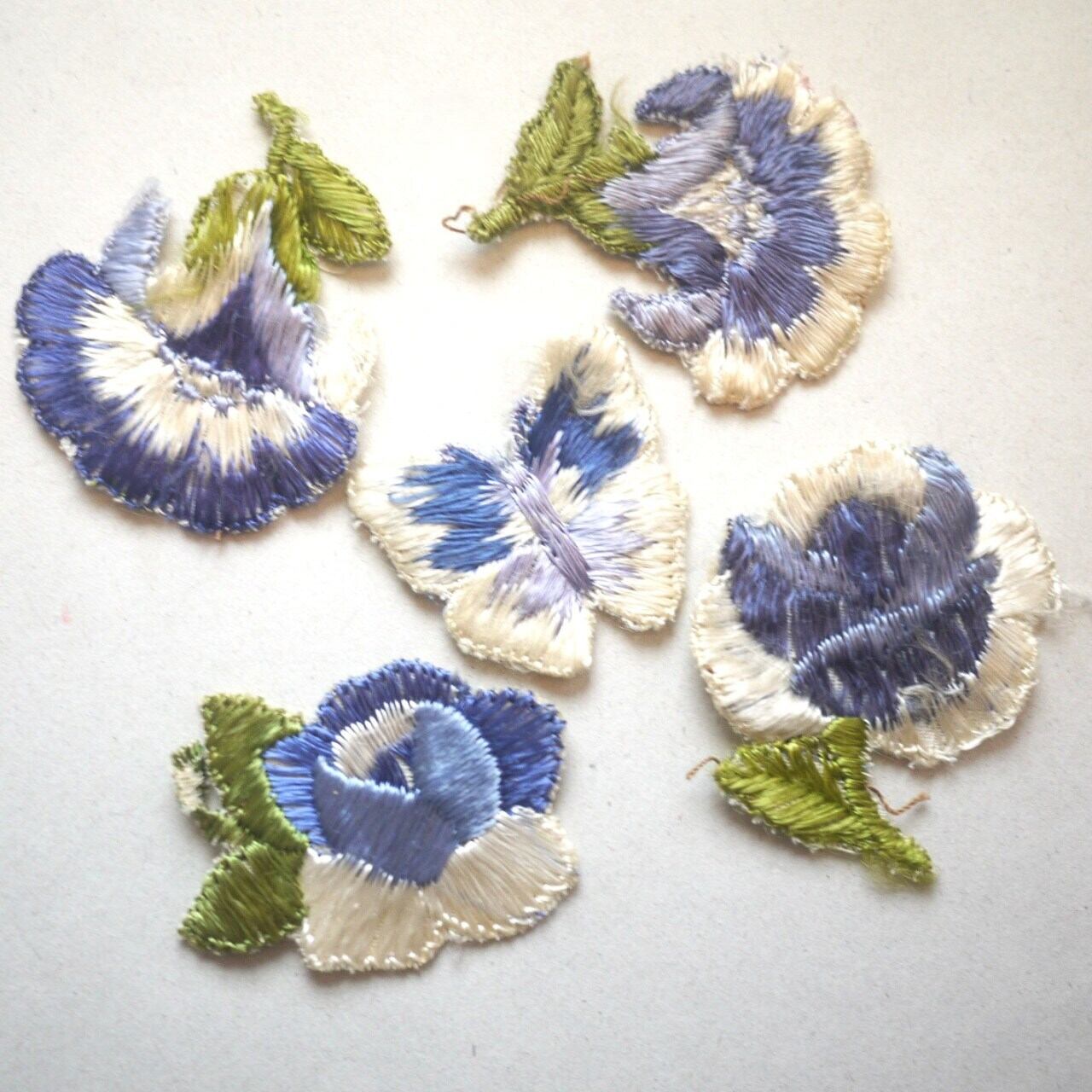[刺繍のモチーフ 5P ブルー アップリケ PATCH ドイツ]