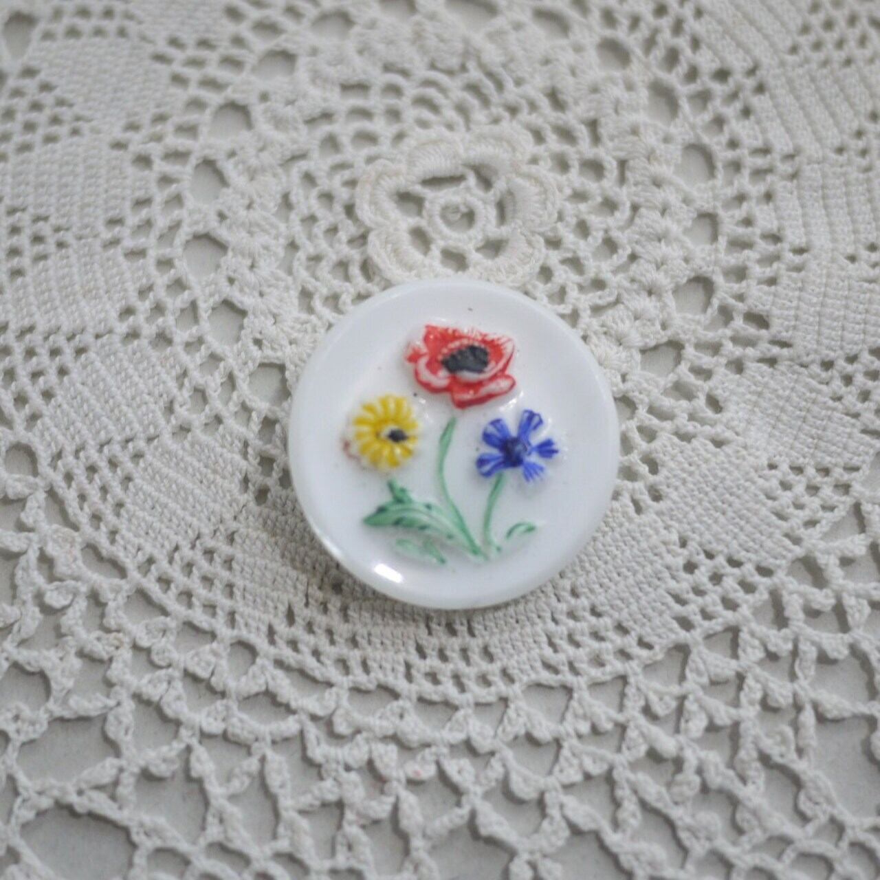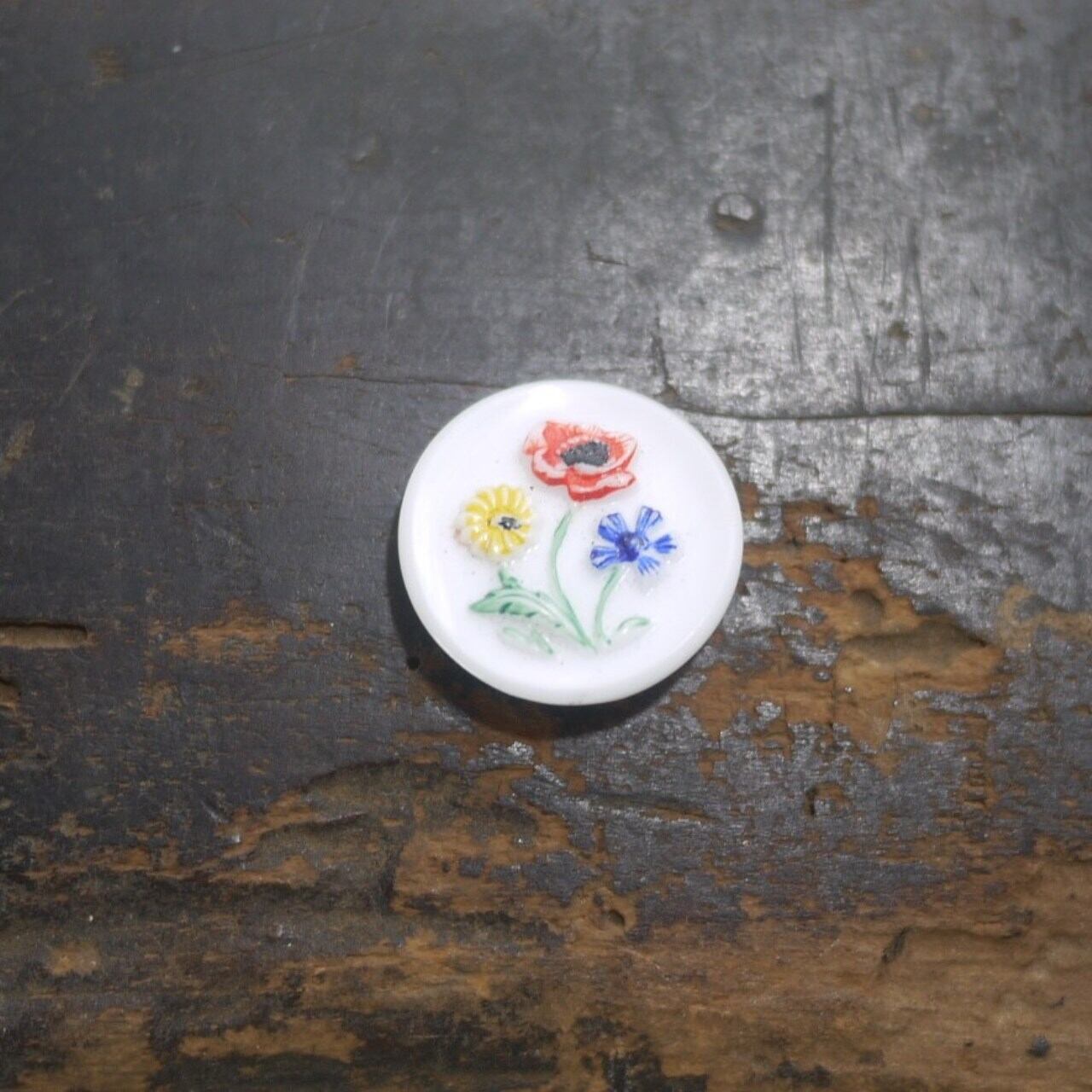 ヴィンテージガラスボタン 野花白ボタン Φ2.2 チェコ
