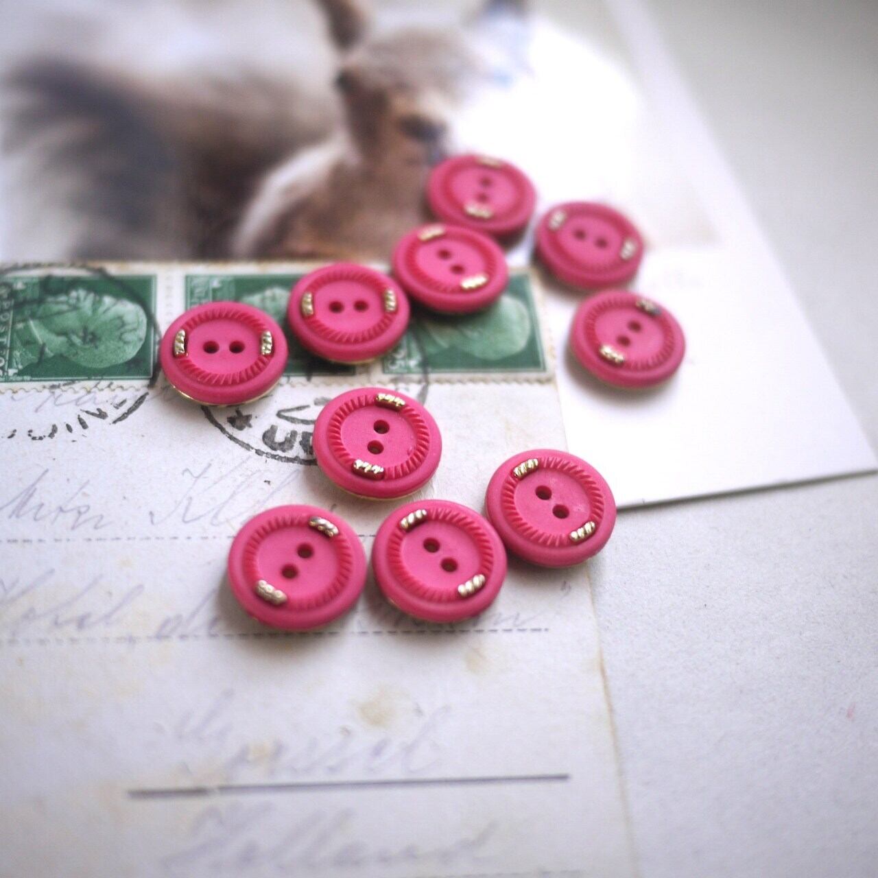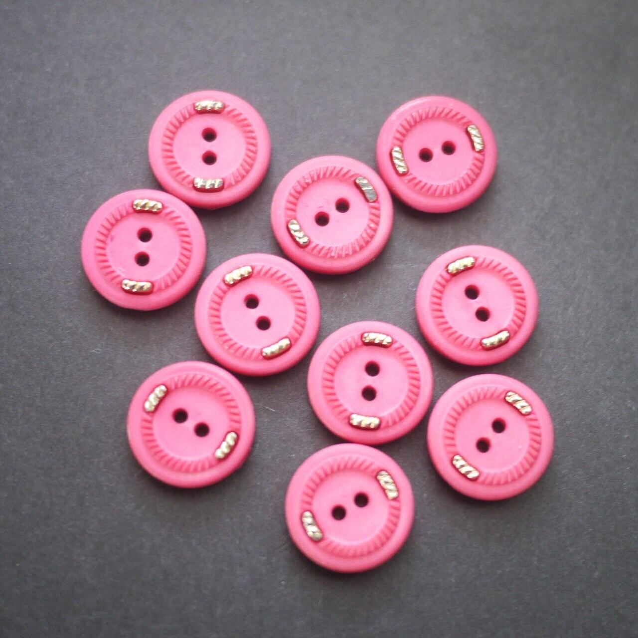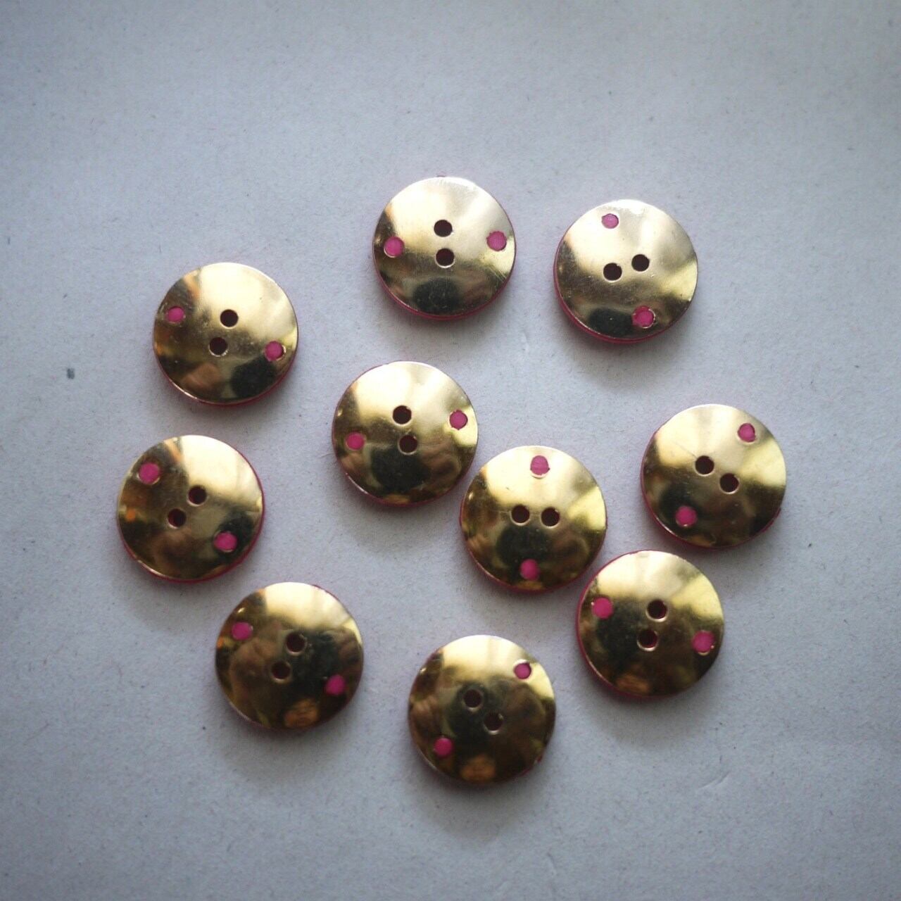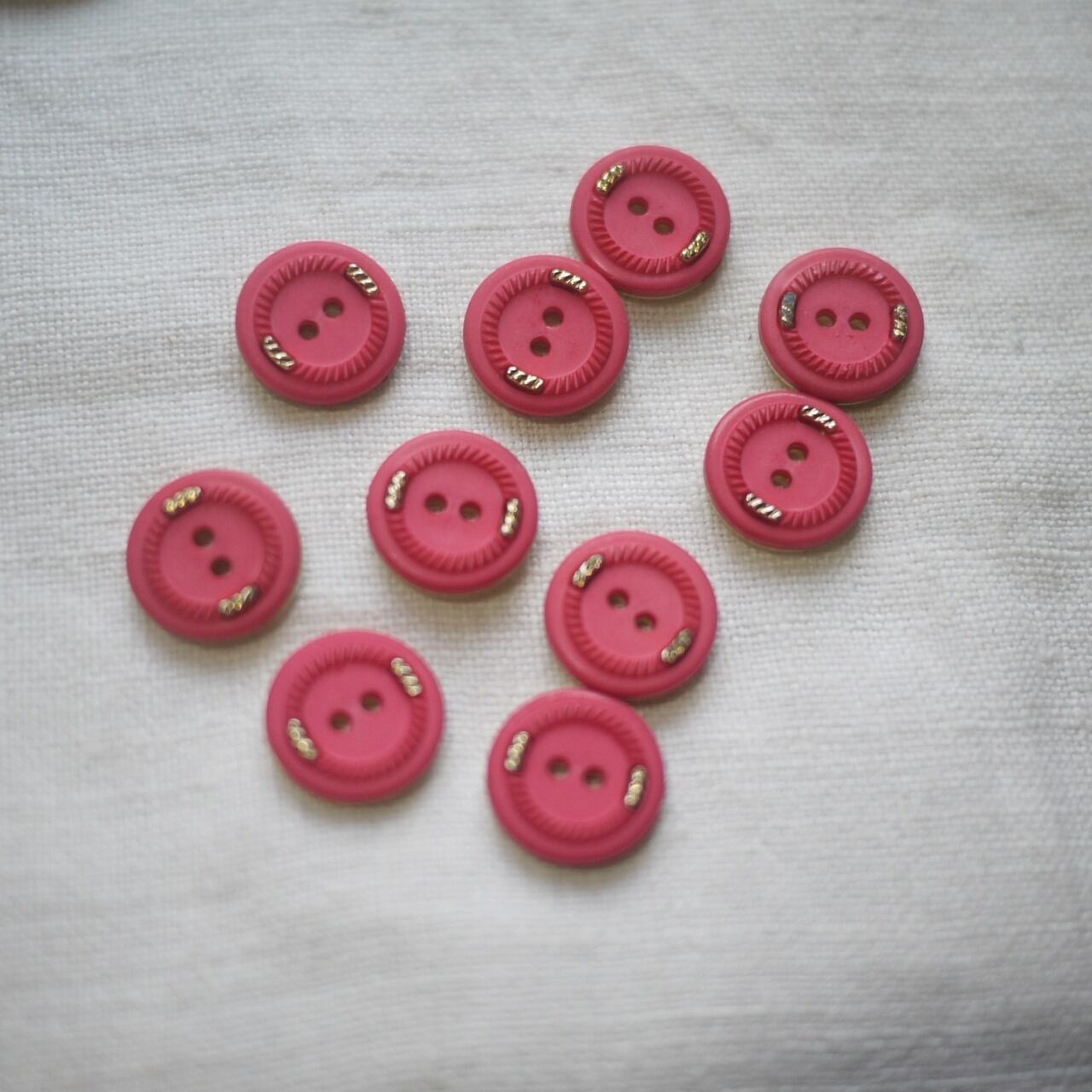 レトロ プラスチックボタン10p ピンク×ゴールド Φ1.5 ドイツ