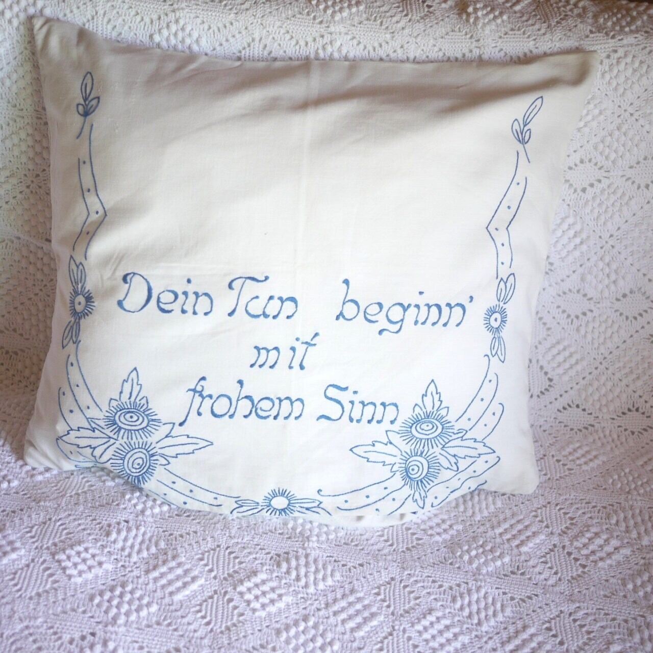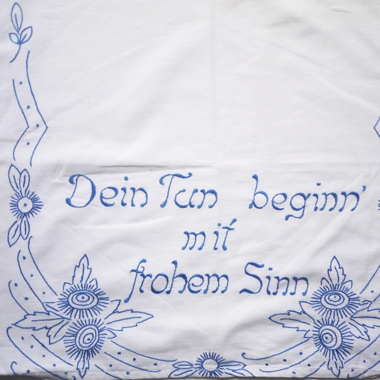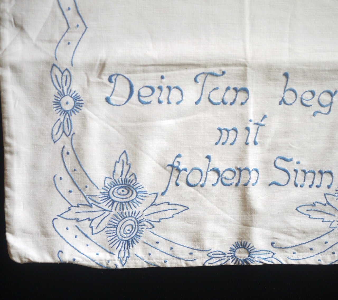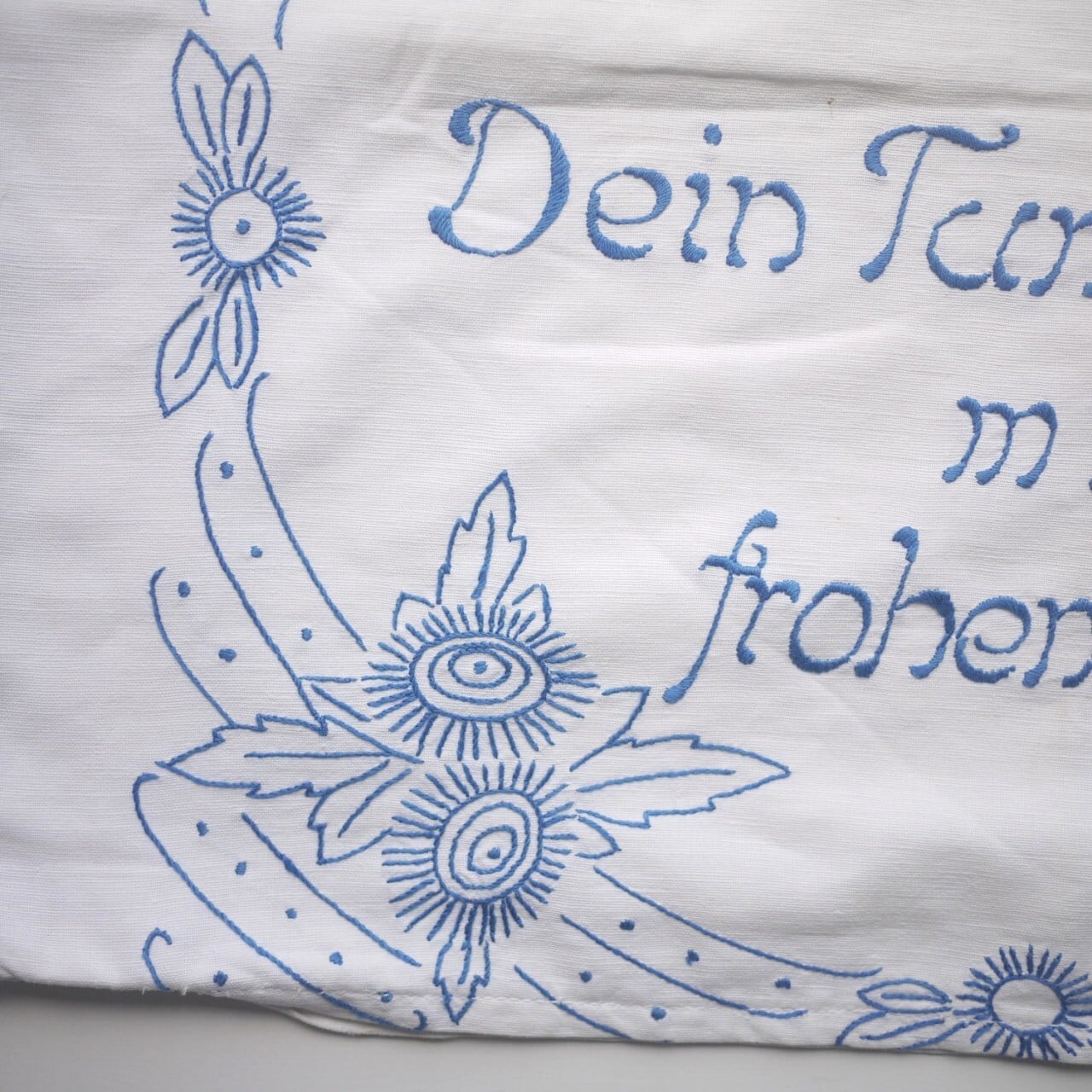 ノスタルジック刺繍 ピローケース ブルーワーク ドイツヴィンテージ