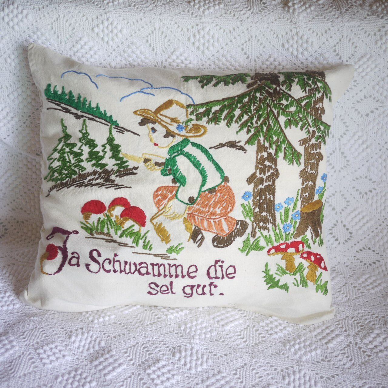 ノスタルジック刺繍 ピローケース きのこがり ドイツヴィンテージ