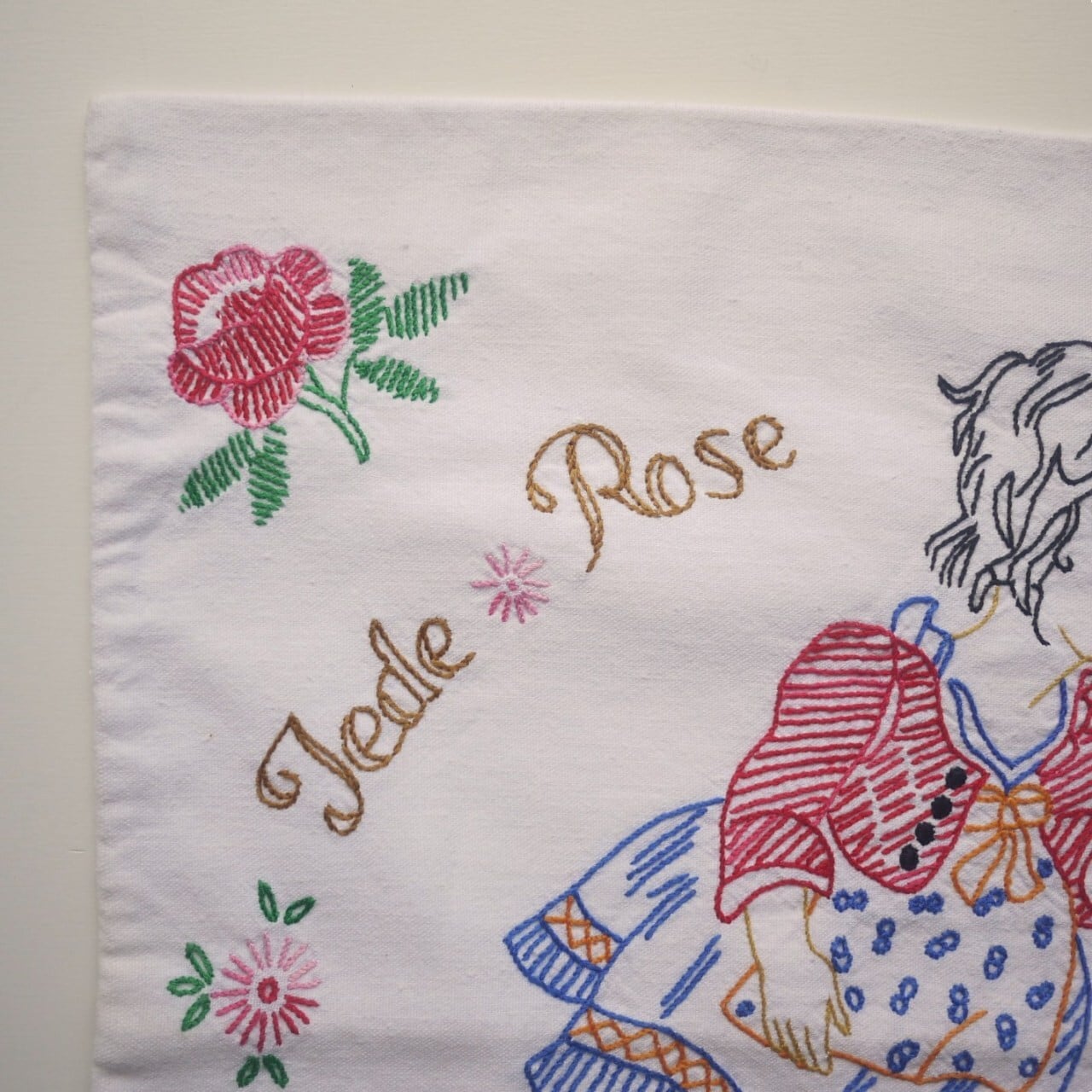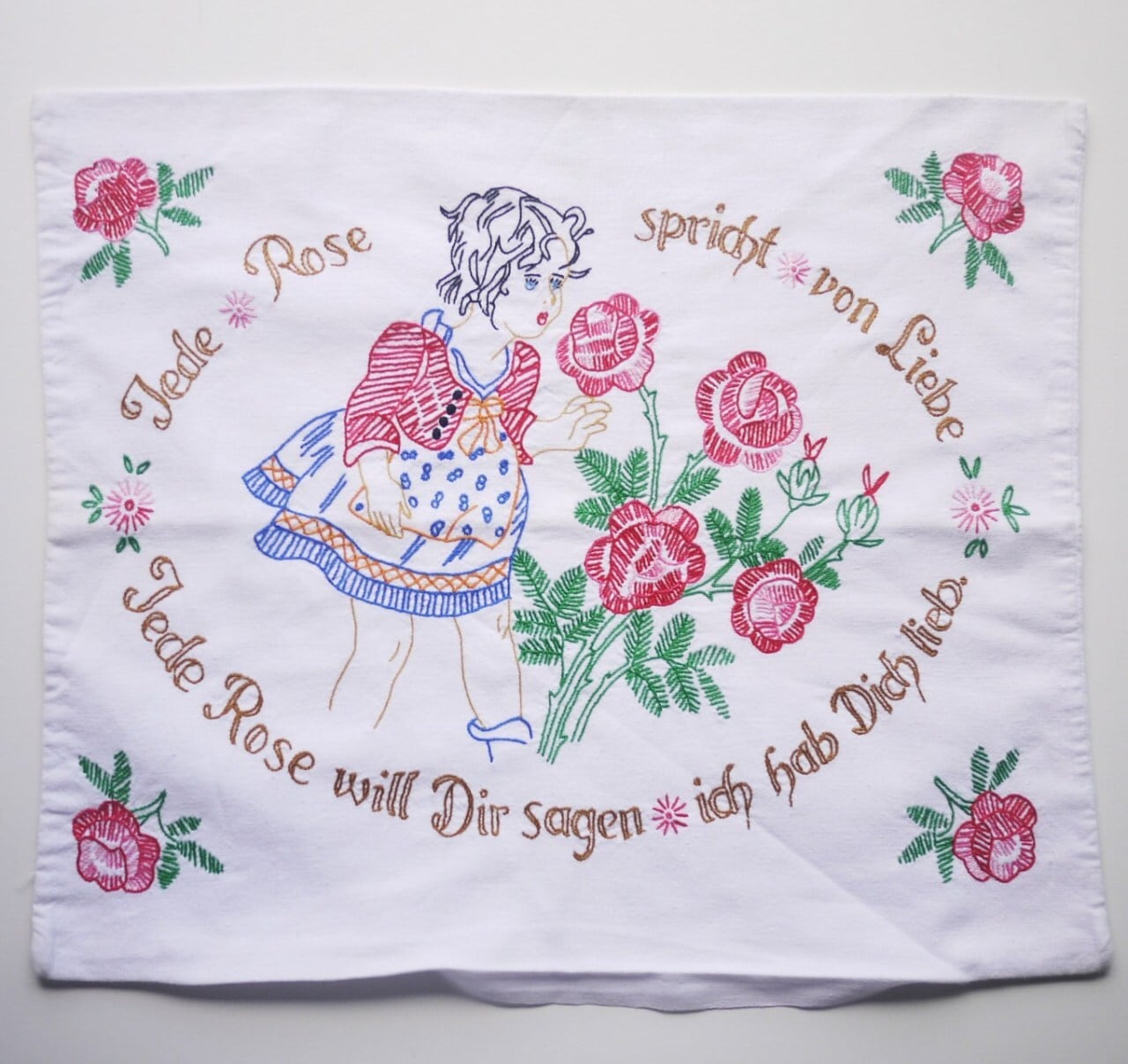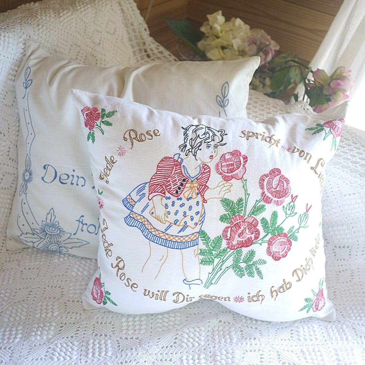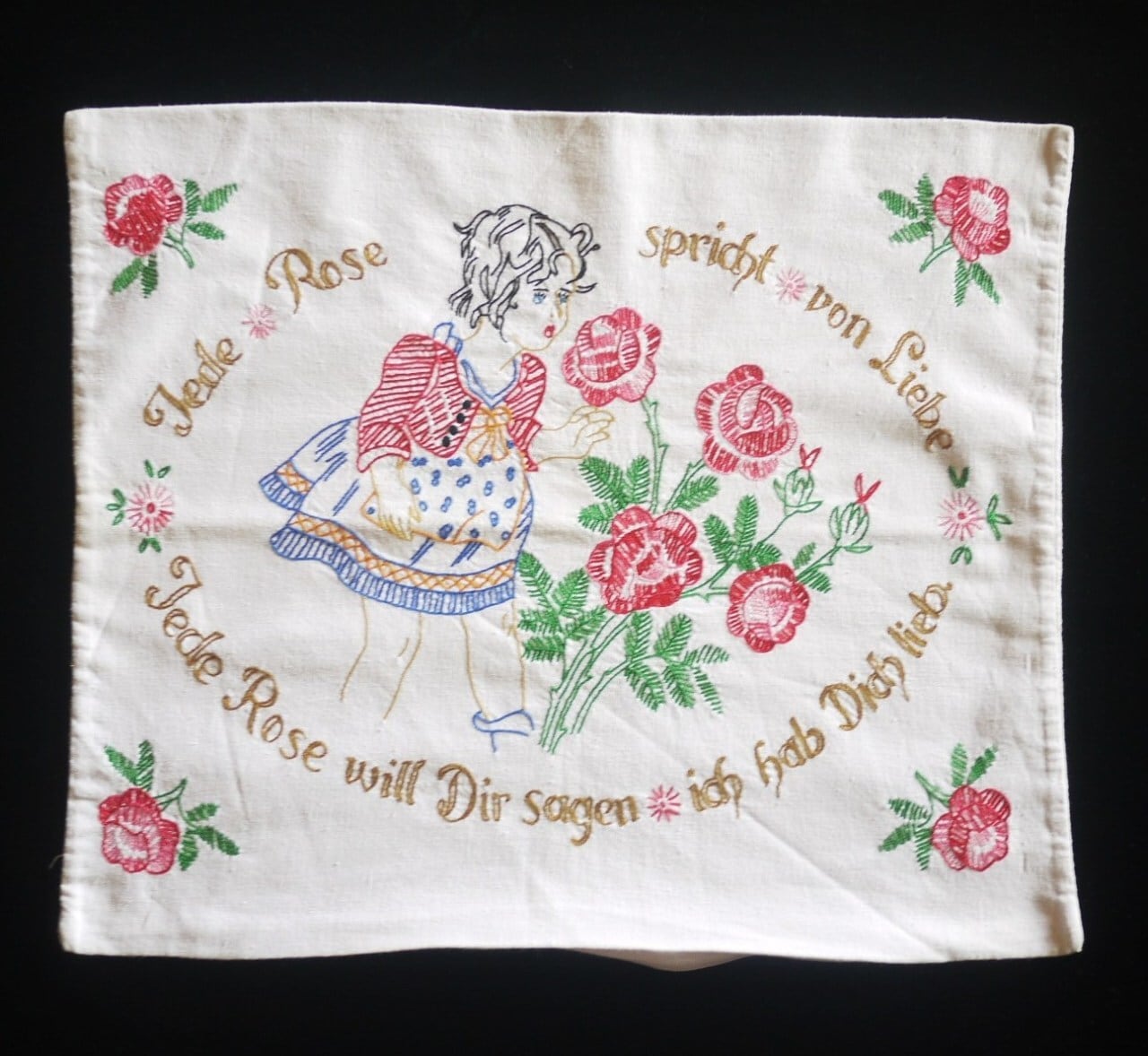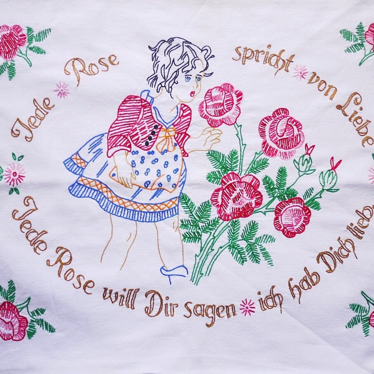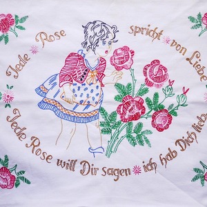 ノスタルジック刺繍 ピローケース 薔薇と少女 ドイツヴィンテージ