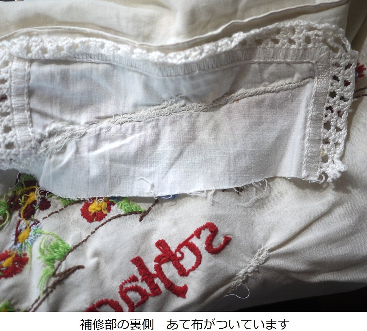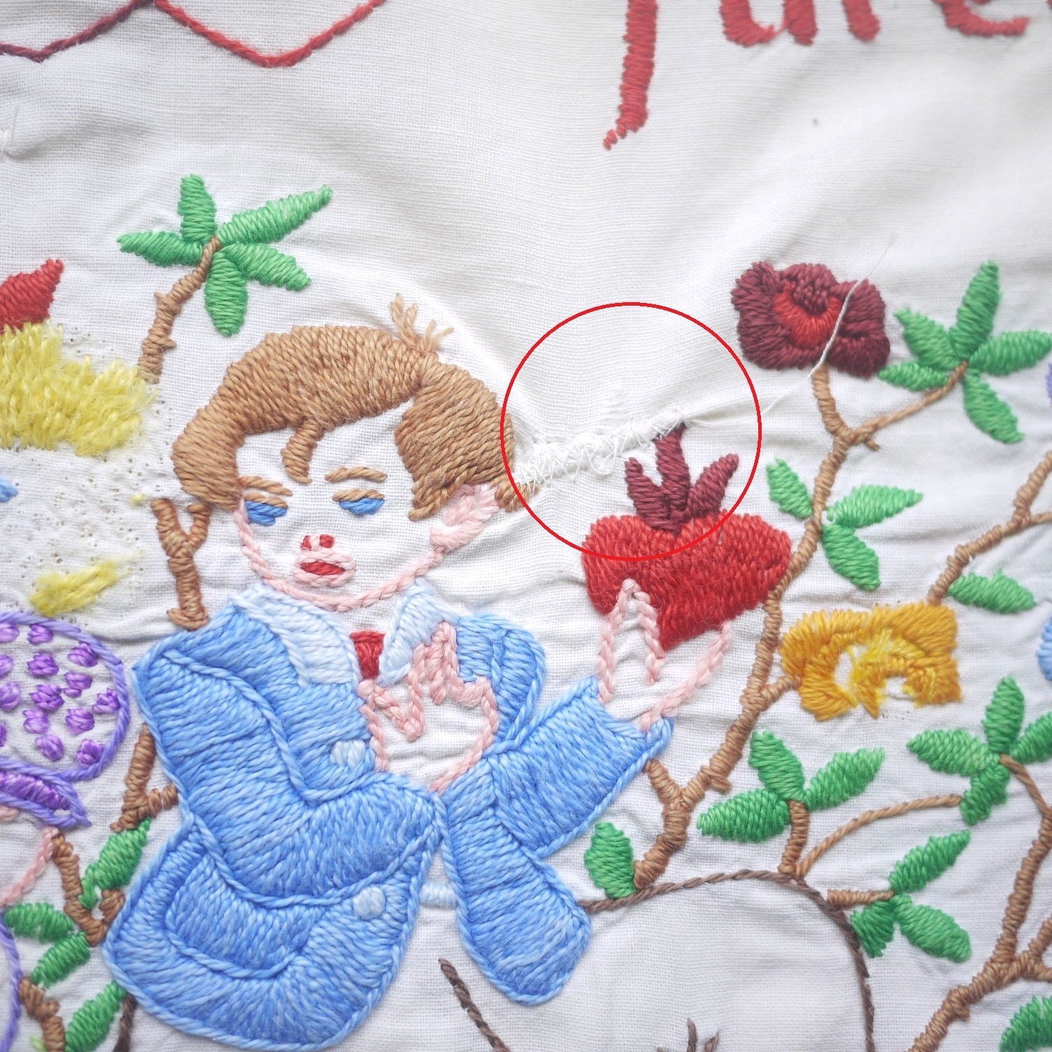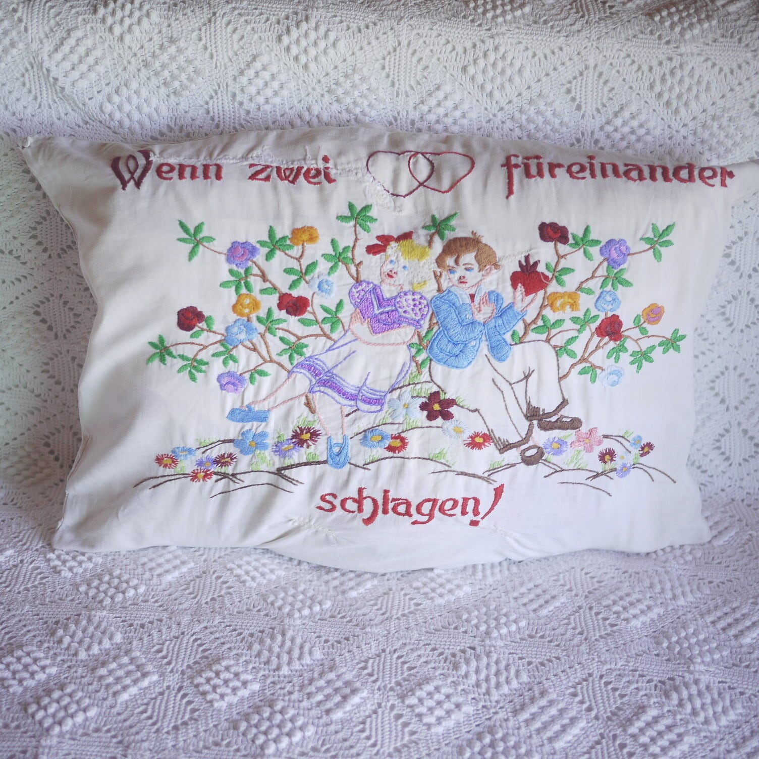ノスタルジック刺繍 ピローケース 花と二人 ドイツヴィンテージ 難あり